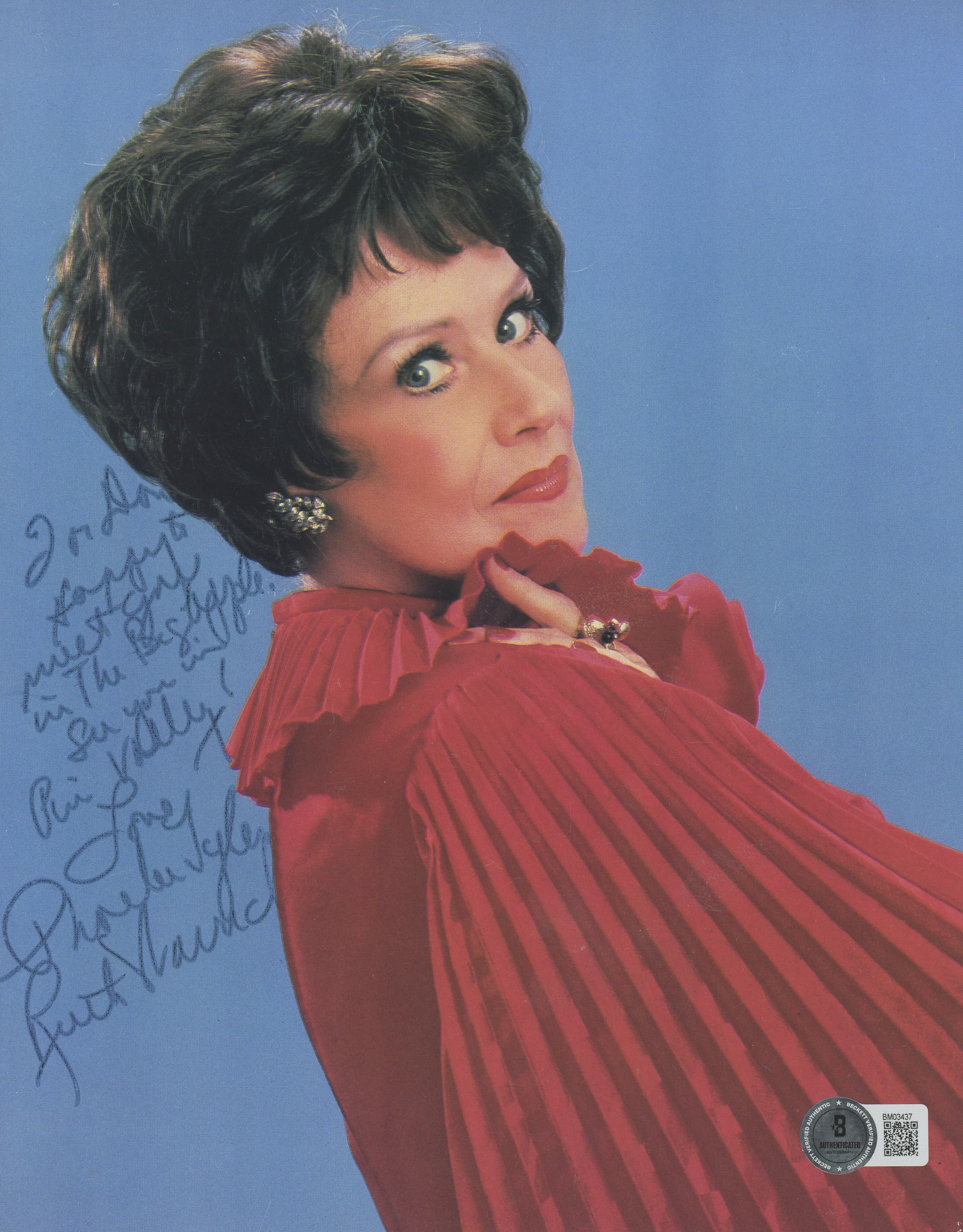 This Autographed 8x10 Photo with the inscription of "Happy To Meet" has been Personally Signed by Ruth Warrick of Citizen Kane. This item is 100% Authentic to include a hologram by Beckett Authentication Services. This item will come with an affixed Beckett Authentication Services (BAS) authentication sticker, which includes a scannable QR code to verify authenticity. Please note that Beckett no longer provides serial-numbered COA cards, and the attached BAS sticker will serve as the complete authentication for this item. The authenticity can be verified on Beckett Authentication Services website.
