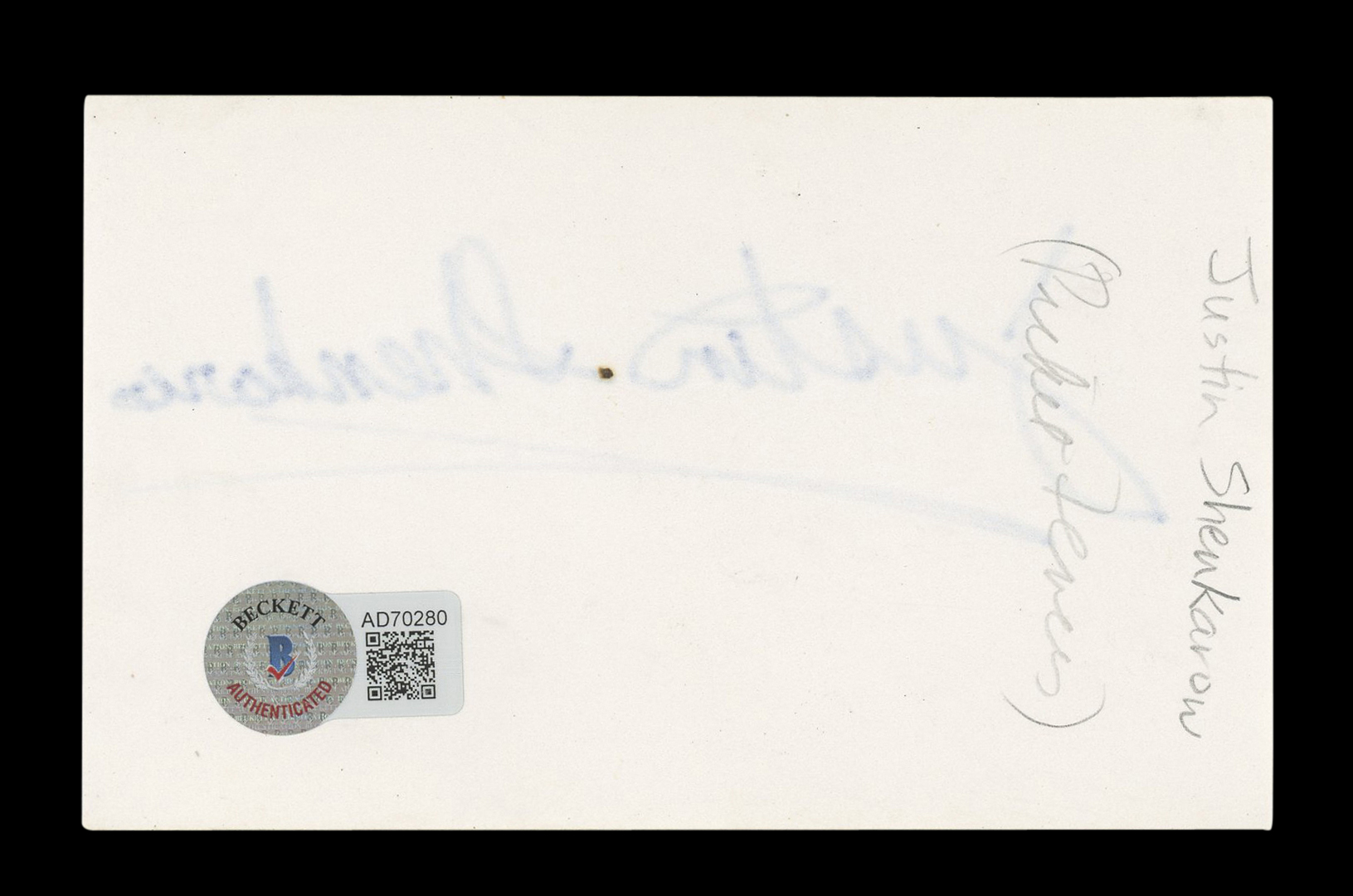 This Autographed 3x5 Index Card has been Personally Signed by Justin Shenkarow of Spider-Man: Into The Spider-Verse. This item is 100% Authentic to include a hologram by Beckett Authentication Services. This item will come with an affixed Beckett Authentication Services (BAS) authentication sticker, which includes a scannable QR code to verify authenticity. Please note that Beckett no longer provides serial-numbered COA cards, and the attached BAS sticker will serve as the complete authentication for this item. The authenticity can be verified on Beckett Authentication Services website.