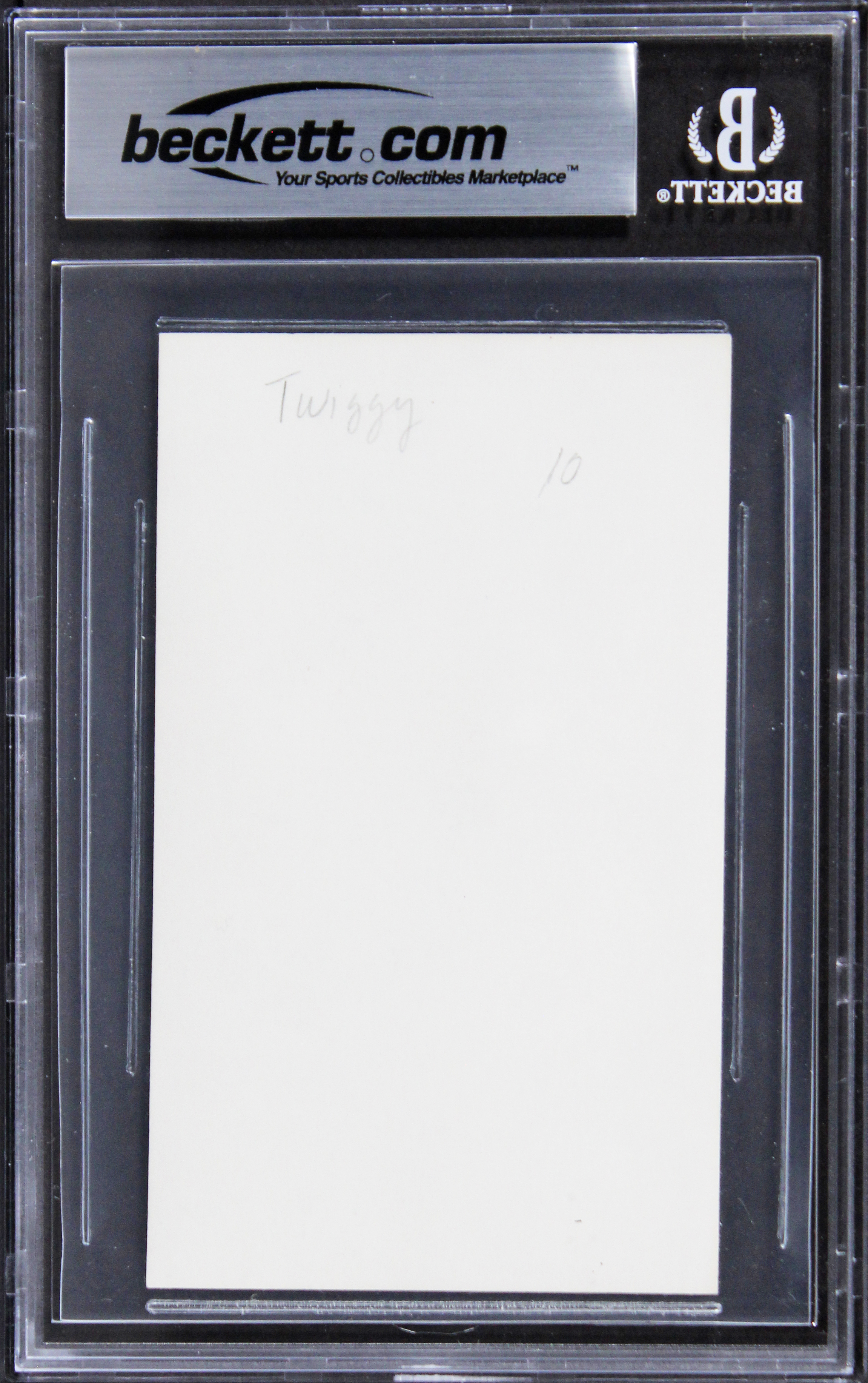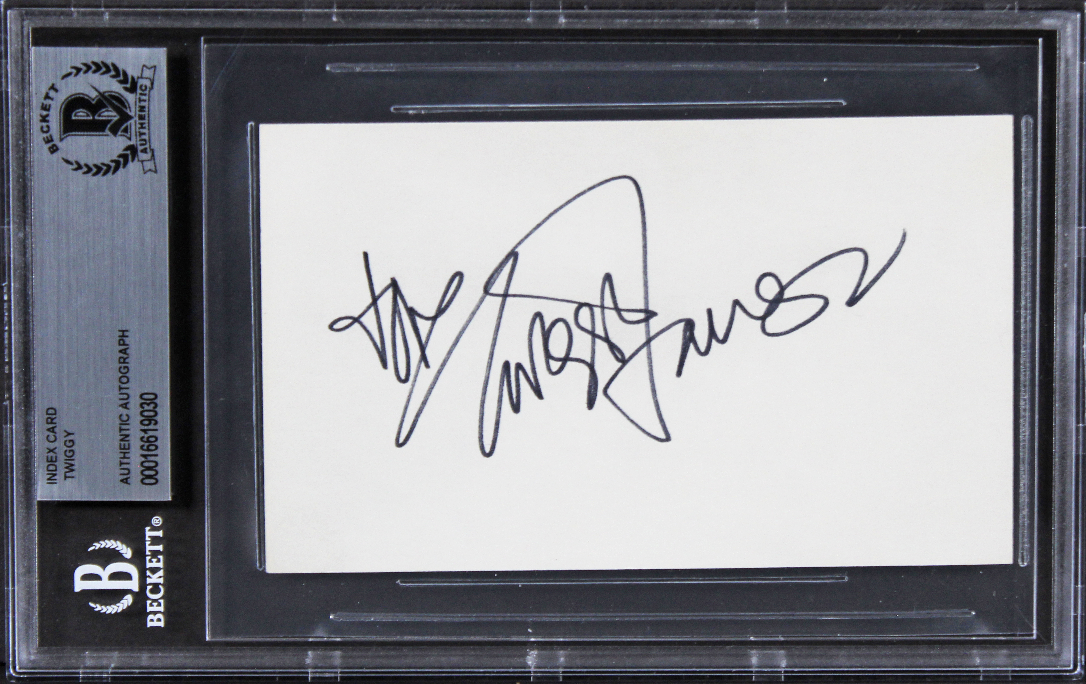 This Autographed 3x5 Index Card has been Personally Signed by Twiggy of The Blues Brothers. This item is 100% Authentic, it comes slabbed and authenticated by Beckett Authentication Services. The authenticity can be verified on Beckett Authentication Services website.