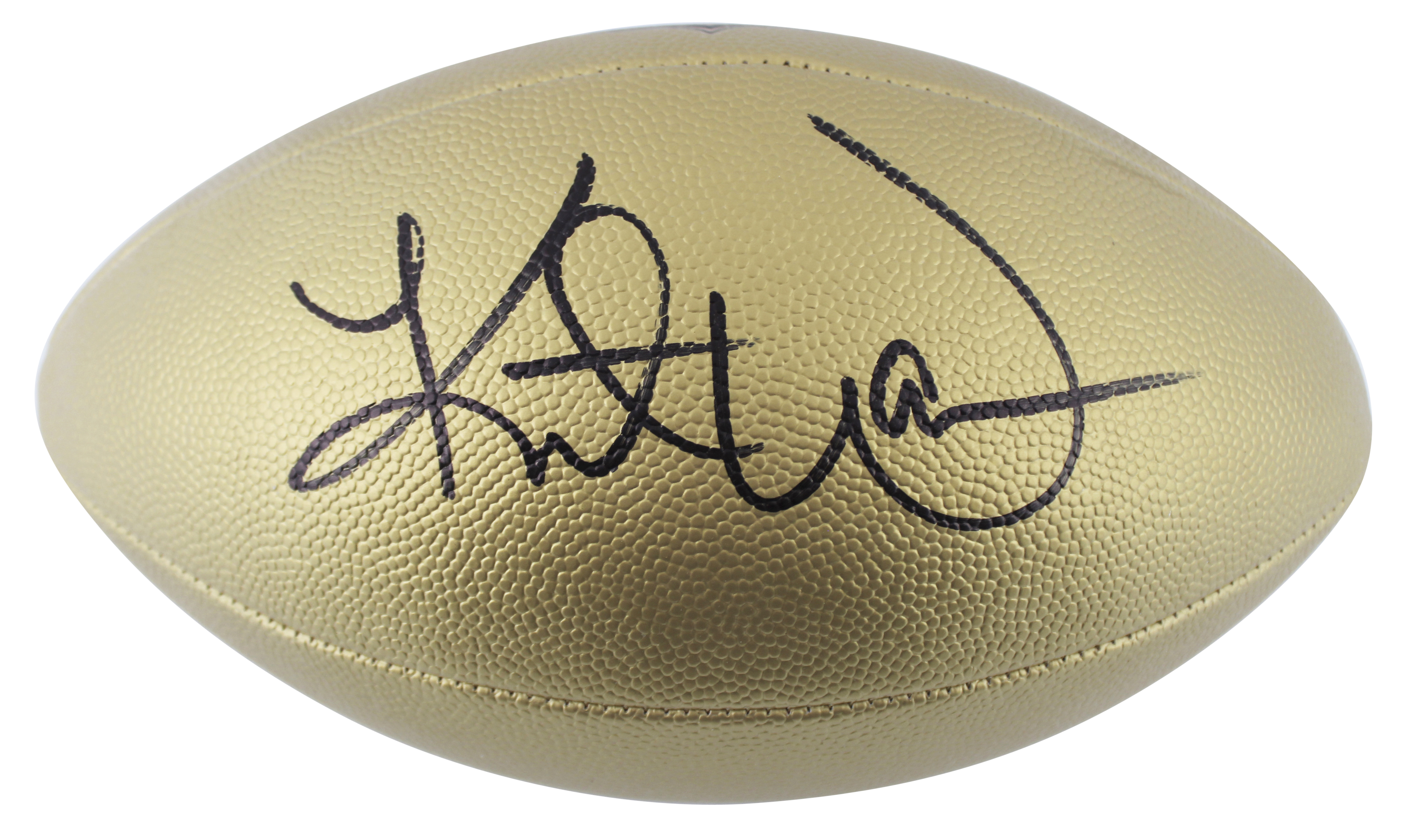 This Autographed Official Wilson Replica Duke Metallic Gold Football W/ Uv Mirrored Back Acrylic Display Case has been Personally Signed by Kurt Warner. This item is 100% Authentic to include a hologram by Beckett Authentication Services. This item will come with an affixed Beckett Authentication Services (BAS) authentication sticker, which includes a scannable QR code to verify authenticity. Please note that Beckett no longer provides serial-numbered COA cards, and the attached BAS sticker will serve as the complete authentication for this item. This is a BAS Witnessed Protection Program item which means a Beckett Authentication Service representative was present when this item was being signed. We conducted an autograph signing with Kurt Warner where multiples of the same item were signed. While the photographs are representative of this item, the size, placement and strength of the signature may vary. Each item is hand signed, therefore, each autograph is unique. This item can be verified through BAS Witnessed.