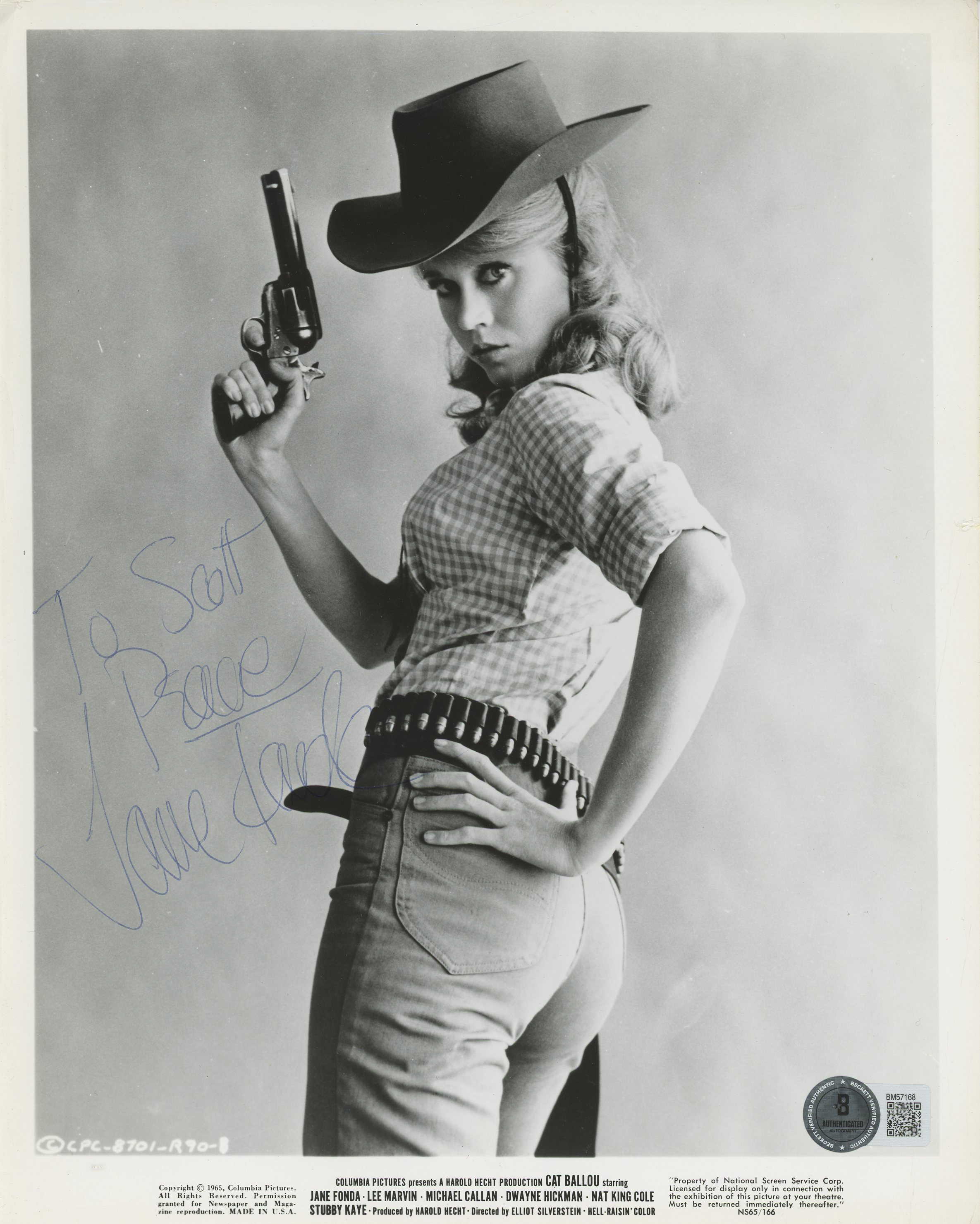 This Autographed 8x10 Photo has been Personally Signed by Jane Fonda of Cat Ballou. This item is 100% Authentic to include a hologram by Beckett Authentication Services. This item will come with an affixed Beckett Authentication Services (BAS) authentication sticker, which includes a scannable QR code to verify authenticity. Please note that Beckett no longer provides serial-numbered COA cards, and the attached BAS sticker will serve as the complete authentication for this item. The authenticity can be verified on Beckett Authentication Services website.
