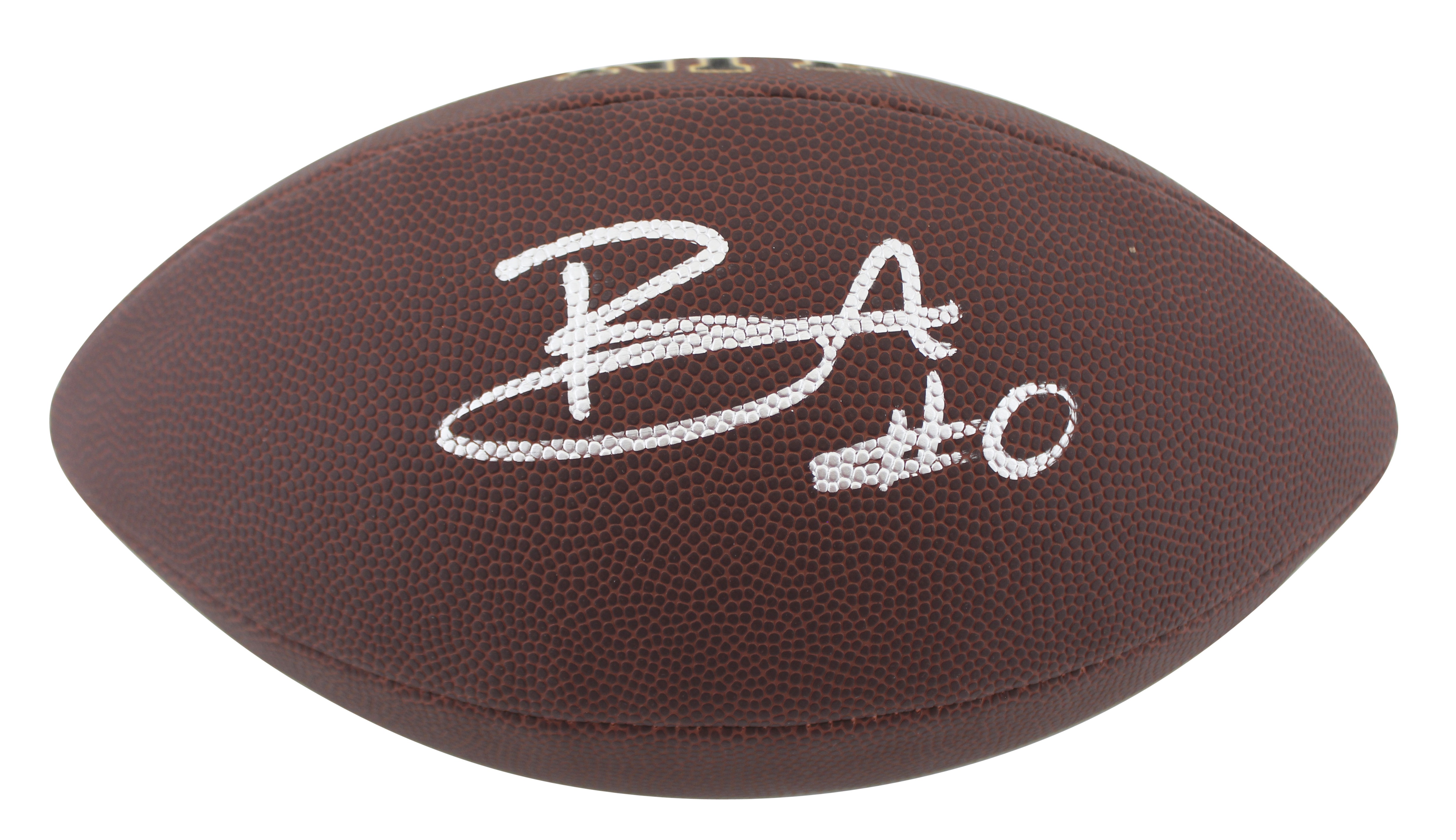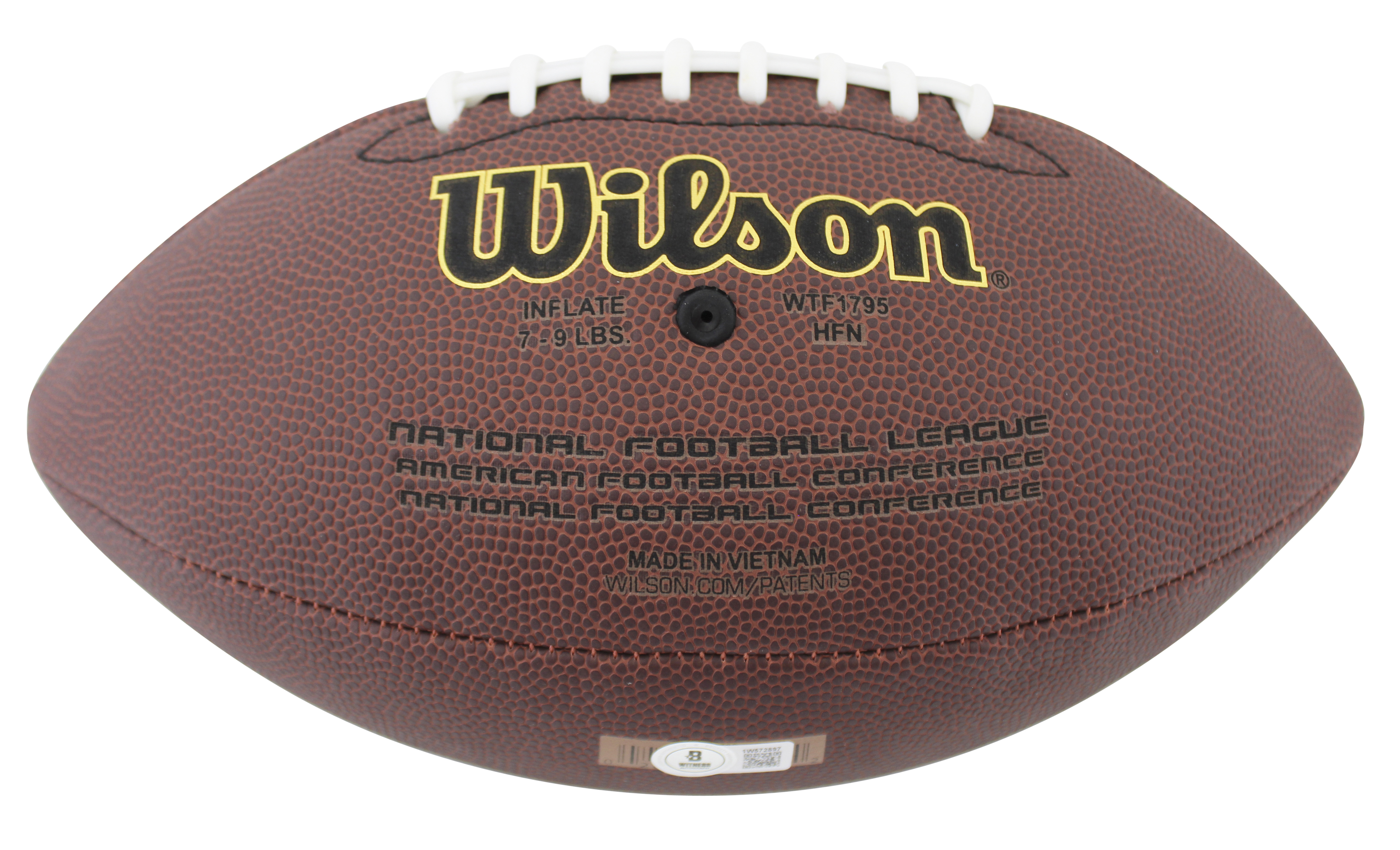 This Autographed Wilson Super Grip Nfl Football has been Personally Signed by Braelon Allen of the New York Jets. This item is 100% Authentic to include a hologram by Beckett Authentication Services. This item will come with an affixed Beckett Authentication Services (BAS) authentication sticker, which includes a scannable QR code to verify authenticity. Please note that Beckett no longer provides serial-numbered COA cards, and the attached BAS sticker will serve as the complete authentication for this item. This is a BAS Witnessed Protection Program item which means a Beckett Authentication Service representative was present when this item was being signed. We have multiples of this same item. While the photographs are representative of this item, the size, placement and strength of the signature may vary. Each item is hand signed, therefore, each autograph is unique.