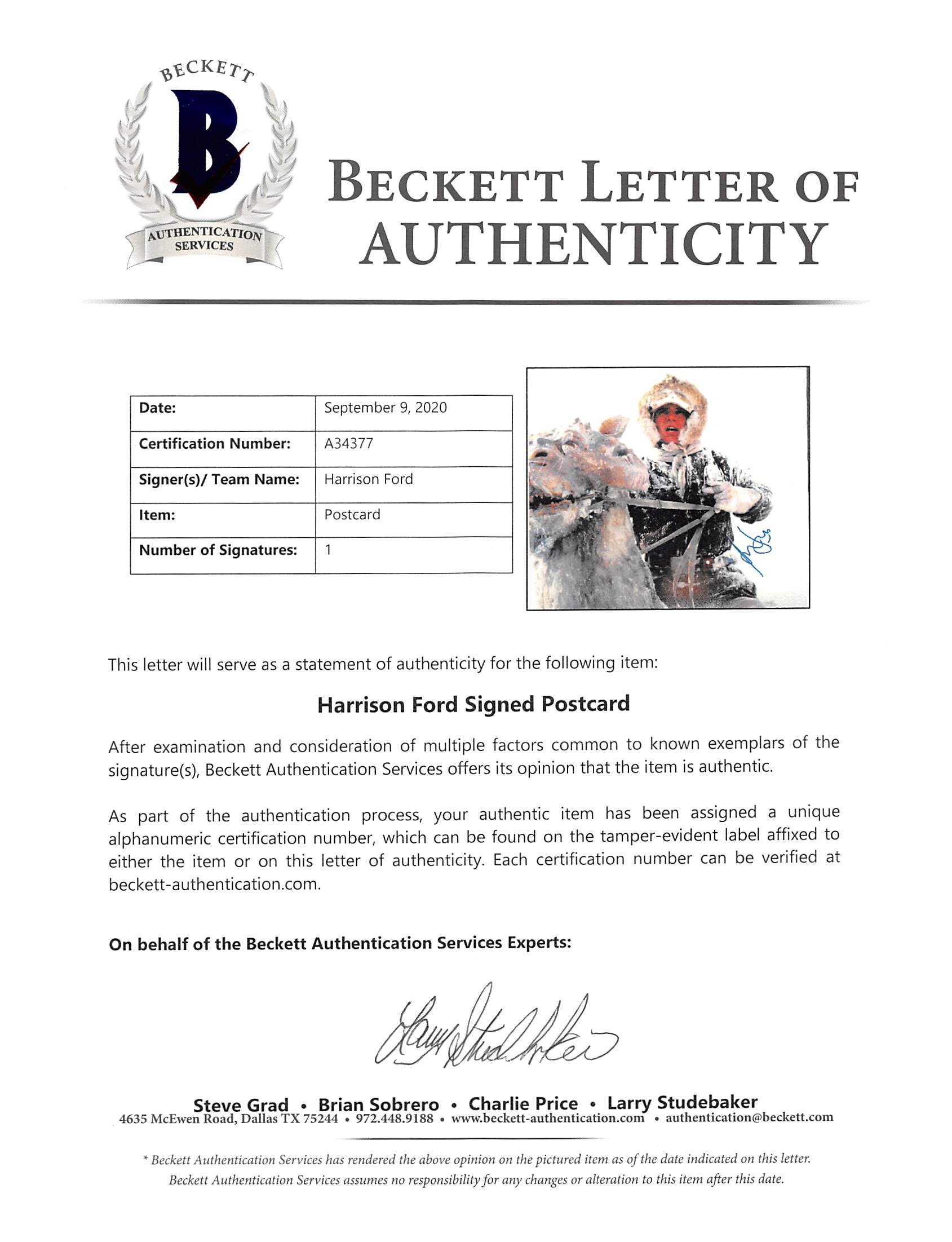 This Autographed Officially Licensed OfficialPix 16x20 Photo has been Personally Signed by Harrison Ford of Star Wars The Empire Strikes Back. This item is 100% Authentic to include a Certificate of Authenticity (COA) / hologram by Beckett Authentication Services. The authenticity can be verified on Beckett Authentication Services website.