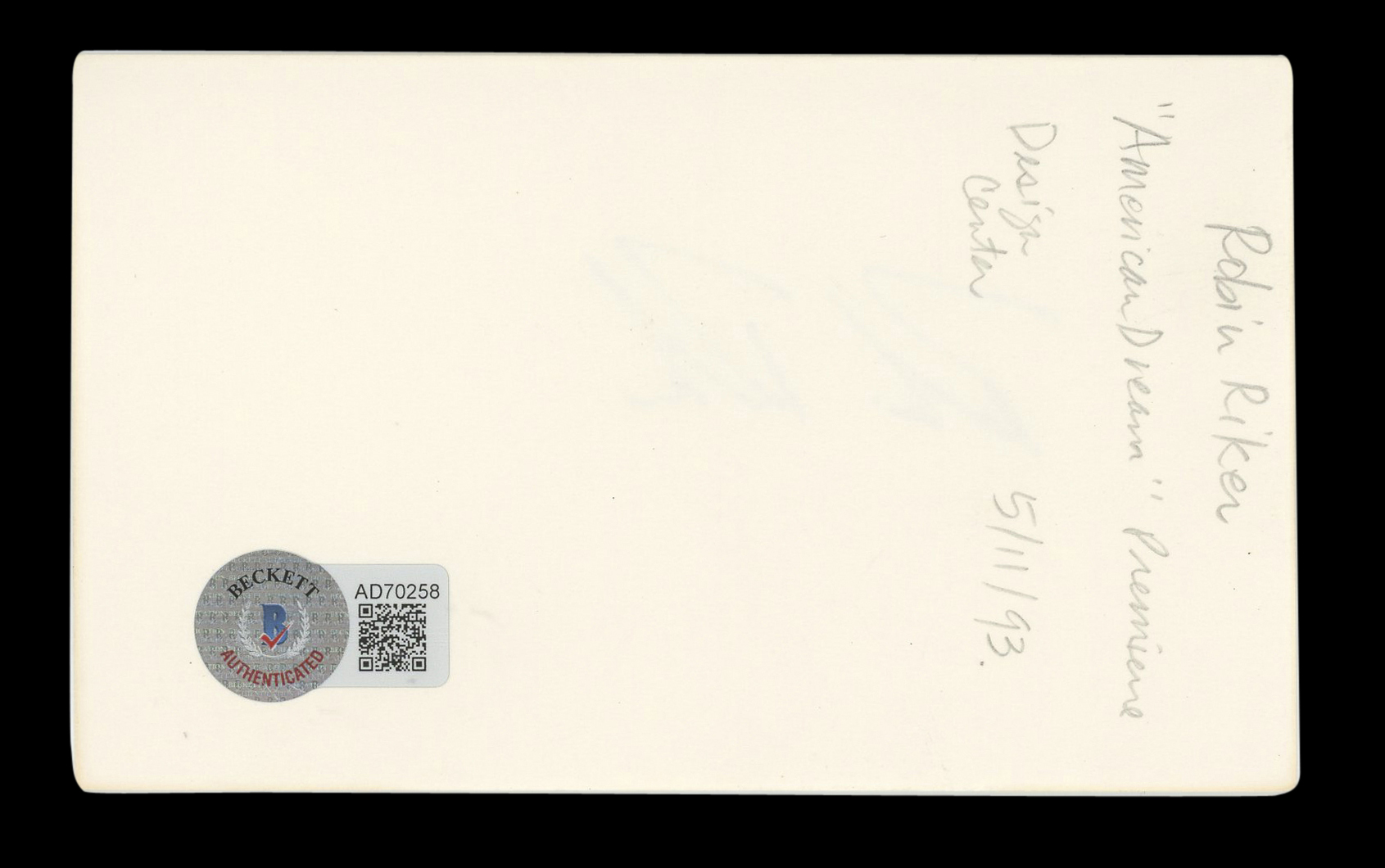 This Autographed 3x5 Index Card has been Personally Signed by Robin Riker of General Hospital. This item is 100% Authentic to include a hologram by Beckett Authentication Services. This item will come with an affixed Beckett Authentication Services (BAS) authentication sticker, which includes a scannable QR code to verify authenticity. Please note that Beckett no longer provides serial-numbered COA cards, and the attached BAS sticker will serve as the complete authentication for this item. The authenticity can be verified on Beckett Authentication Services website.