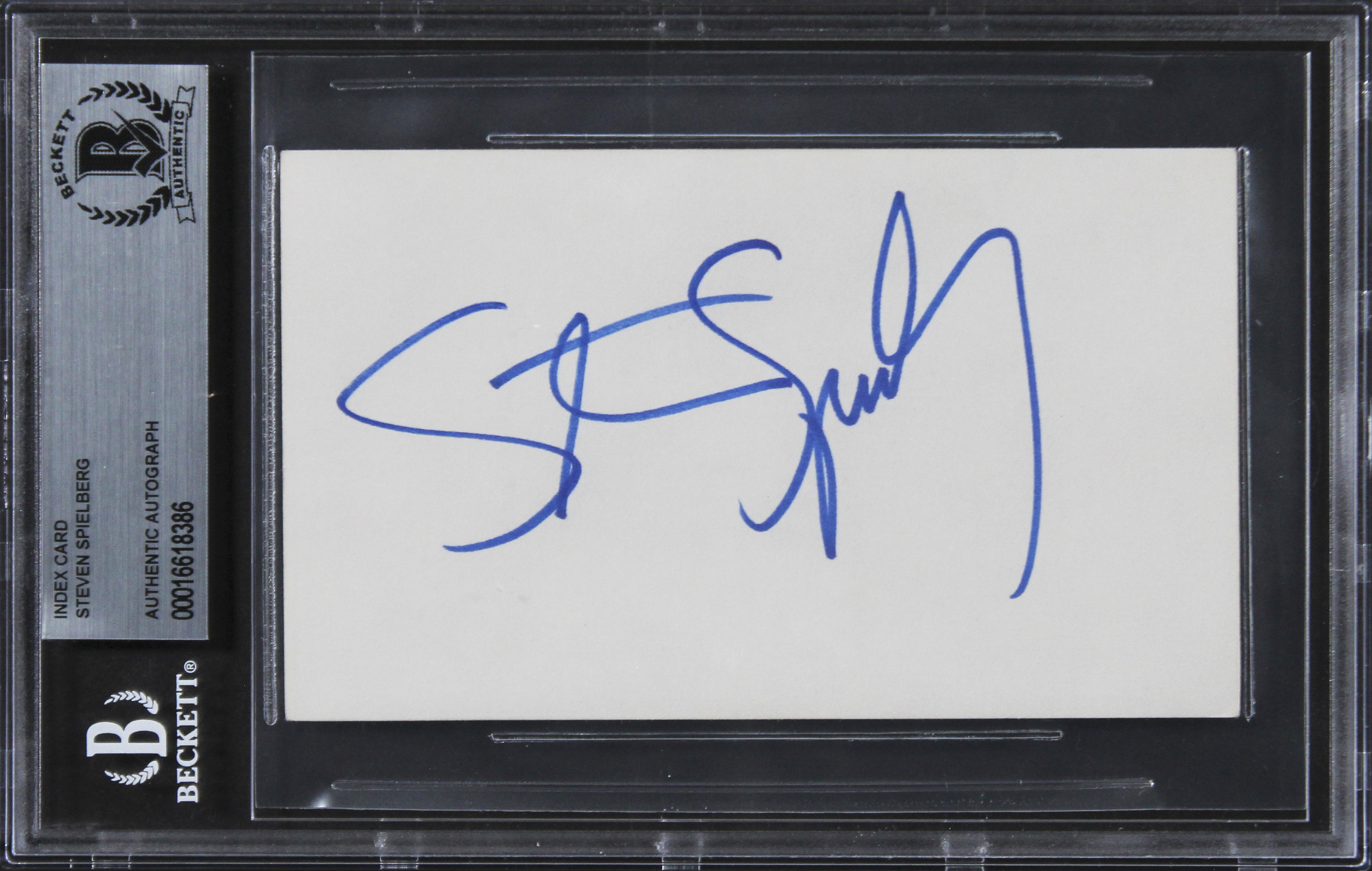 This Autographed 3x5 Index Card has been Personally Signed by Steven Spielberg of Schindler's List. This item is 100% Authentic, it comes slabbed and authenticated by Beckett Authentication Services. The authenticity can be verified on Beckett Authentication Services website.