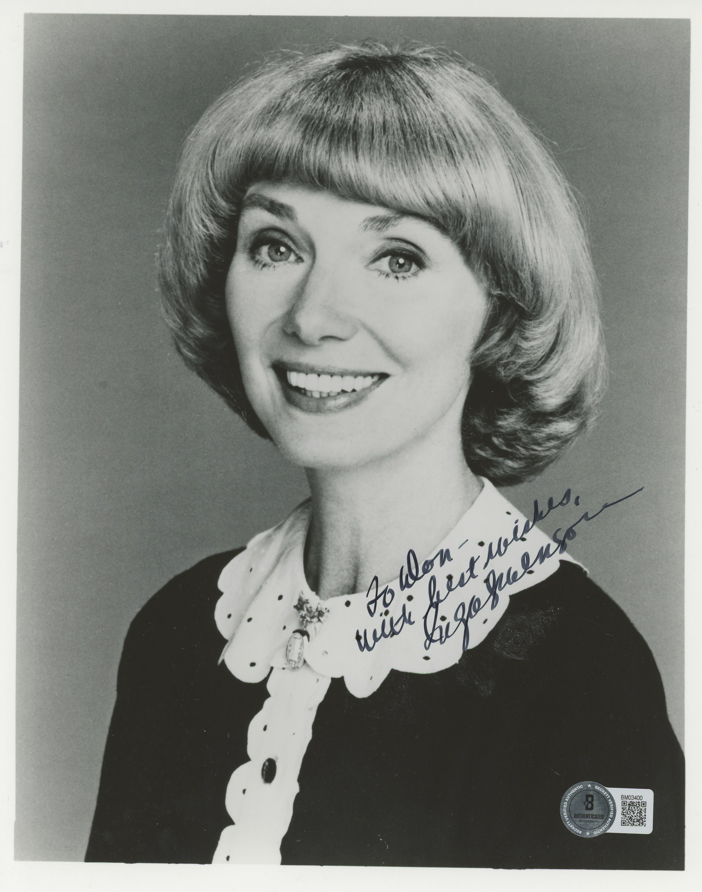 This Autographed 8x10 Photo with the inscription of "With Best Wishes" has been Personally Signed by Inga Swenson of Benson. This item is 100% Authentic to include a hologram by Beckett Authentication Services. This item will come with an affixed Beckett Authentication Services (BAS) authentication sticker, which includes a scannable QR code to verify authenticity. Please note that Beckett no longer provides serial-numbered COA cards, and the attached BAS sticker will serve as the complete authentication for this item. The authenticity can be verified on Beckett Authentication Services website.