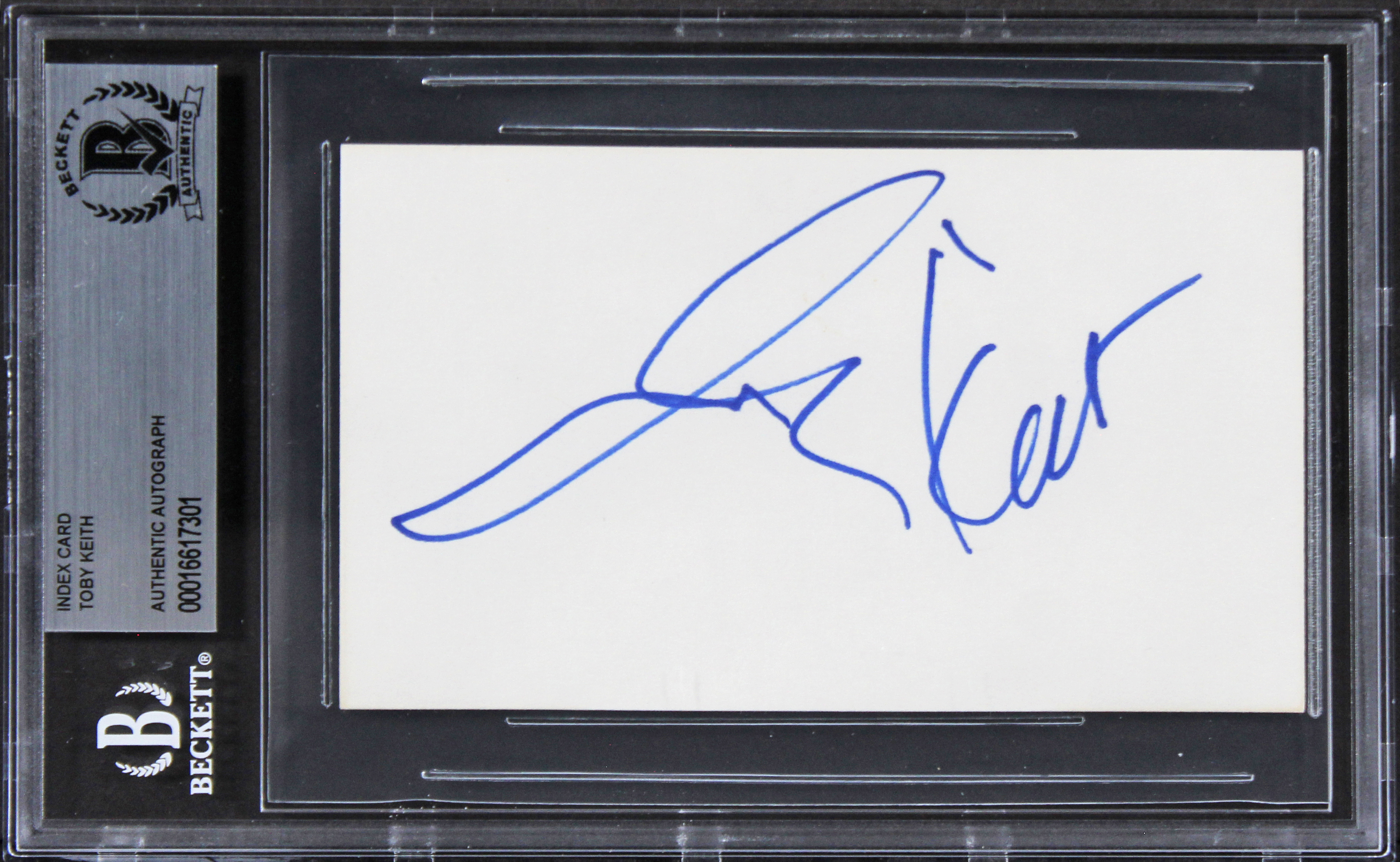 This Autographed 3x5 Index Card has been Personally Signed by Toby Keith of Singer. This item is 100% Authentic, it comes slabbed and authenticated by Beckett Authentication Services. The authenticity can be verified on Beckett Authentication Services website.