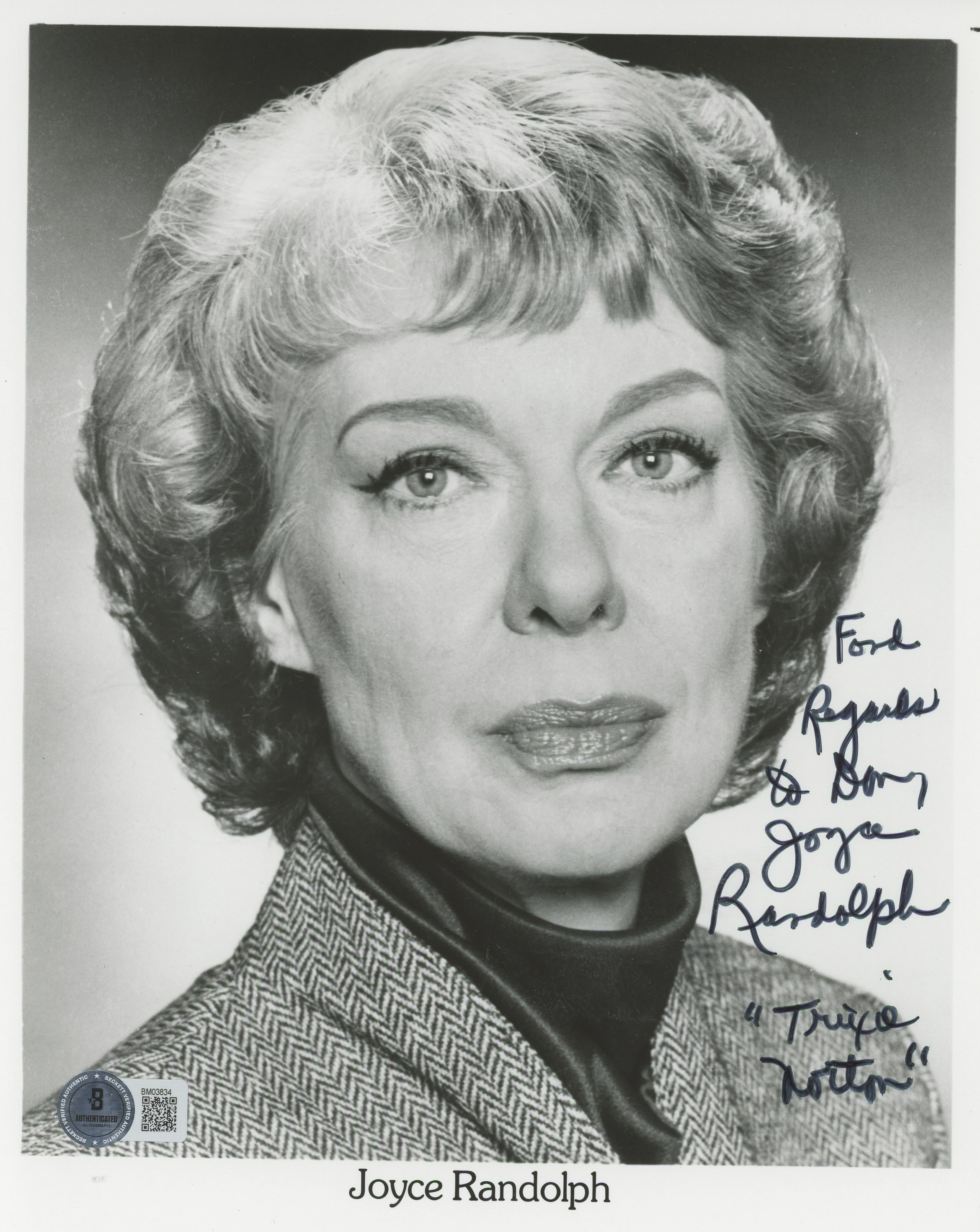 This Autographed 8x10 Photo with the inscription of "Trixie Norton" has been Personally Signed by Joyce Randolph of The Honeymooners. This item is 100% Authentic to include a hologram by Beckett Authentication Services. This item will come with an affixed Beckett Authentication Services (BAS) authentication sticker, which includes a scannable QR code to verify authenticity. Please note that Beckett no longer provides serial-numbered COA cards, and the attached BAS sticker will serve as the complete authentication for this item. The authenticity can be verified on Beckett Authentication Services website.