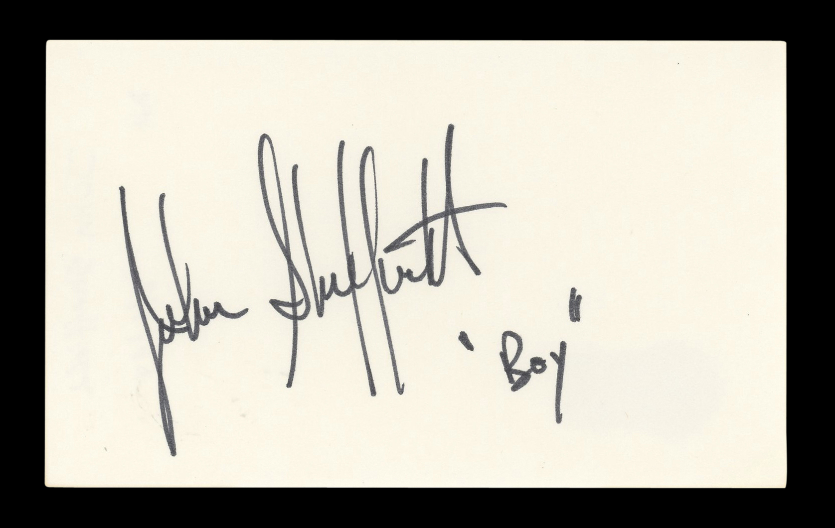 This Autographed 3x5 Index Card with the inscription of "Boy" has been Personally Signed by Johnny Sheffield of Lord of the Jungle. This item is 100% Authentic to include a hologram by Beckett Authentication Services. This item will come with an affixed Beckett Authentication Services (BAS) authentication sticker, which includes a scannable QR code to verify authenticity. Please note that Beckett no longer provides serial-numbered COA cards, and the attached BAS sticker will serve as the complete authentication for this item. The authenticity can be verified on Beckett Authentication Services website.