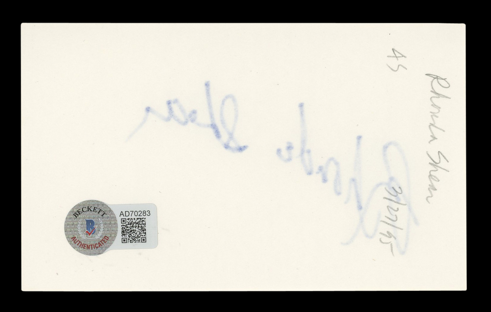 This Autographed 3x5 Index Card has been Personally Signed by Rhonda Shear of Spaceballs. This item is 100% Authentic to include a hologram by Beckett Authentication Services. This item will come with an affixed Beckett Authentication Services (BAS) authentication sticker, which includes a scannable QR code to verify authenticity. Please note that Beckett no longer provides serial-numbered COA cards, and the attached BAS sticker will serve as the complete authentication for this item. The authenticity can be verified on Beckett Authentication Services website.