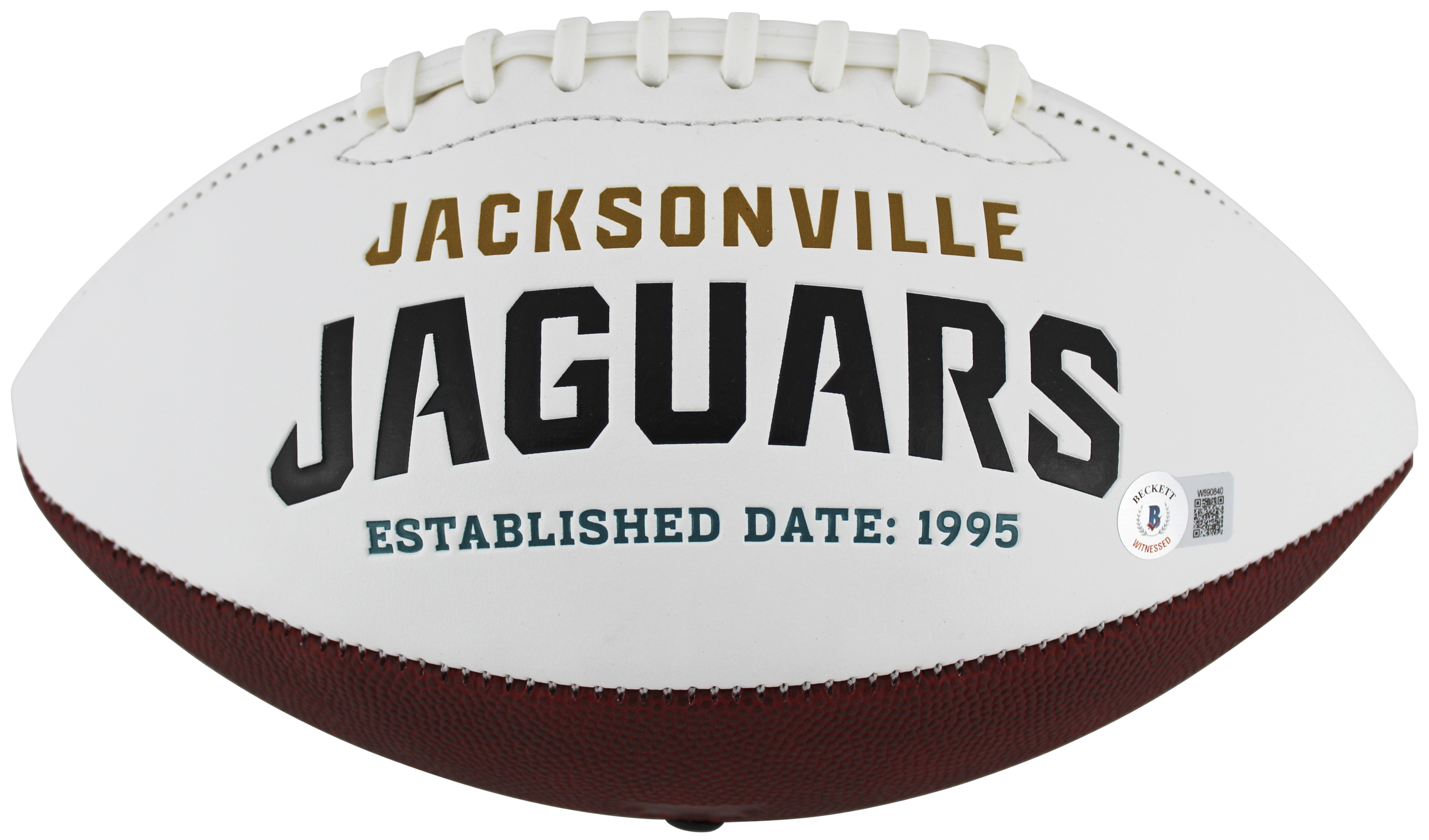 This Autographed Rawlings White Panel Logo Football W/ Uv Mirrored Back Acrylic Display Case with the inscription of "Pride Of The Jaguars" has been Personally Signed by Fred Taylor of the Jacksonville Jaguars. This item is 100% Authentic to include a hologram by Beckett Authentication Services. This item will come with an affixed Beckett Authentication Services (BAS) authentication sticker, which includes a scannable QR code to verify authenticity. Please note that Beckett no longer provides serial-numbered COA cards, and the attached BAS sticker will serve as the complete authentication for this item. This is a BAS Witnessed Protection Program item which means a Beckett Authentication Service representative was present when this item was being signed. We conducted an autograph signing with Fred Taylor where multiples of the same item were signed. While the photographs are representative of this item, the size, placement and strength of the signature may vary. Each item is hand signed, therefore, each autograph is unique. This item can be verified through BAS Witnessed.