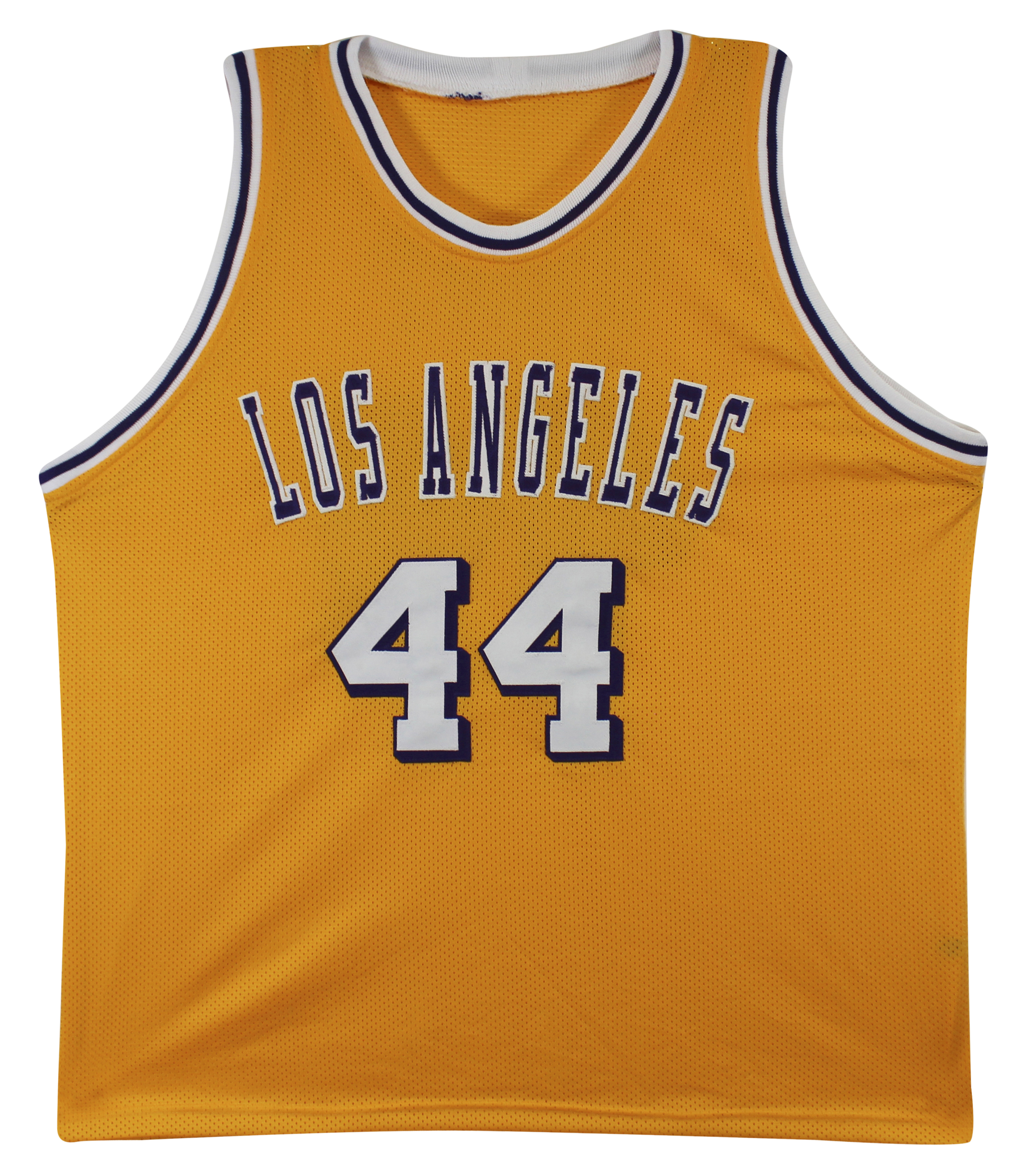 This Autographed Yellow Pro Jersey has been Personally Signed by Jerry West of the Los Angeles Lakers. This item is 100% Authentic to include a Certificate of Authenticity (COA) / hologram by JSA Witness. This is a JSA Witnessed Protection Program item which means a JSA representative was present when this item was being signed. The authenticity can be verified on JSA website. This is a X-Large sized, non-branded, custom-stitched Jersey.