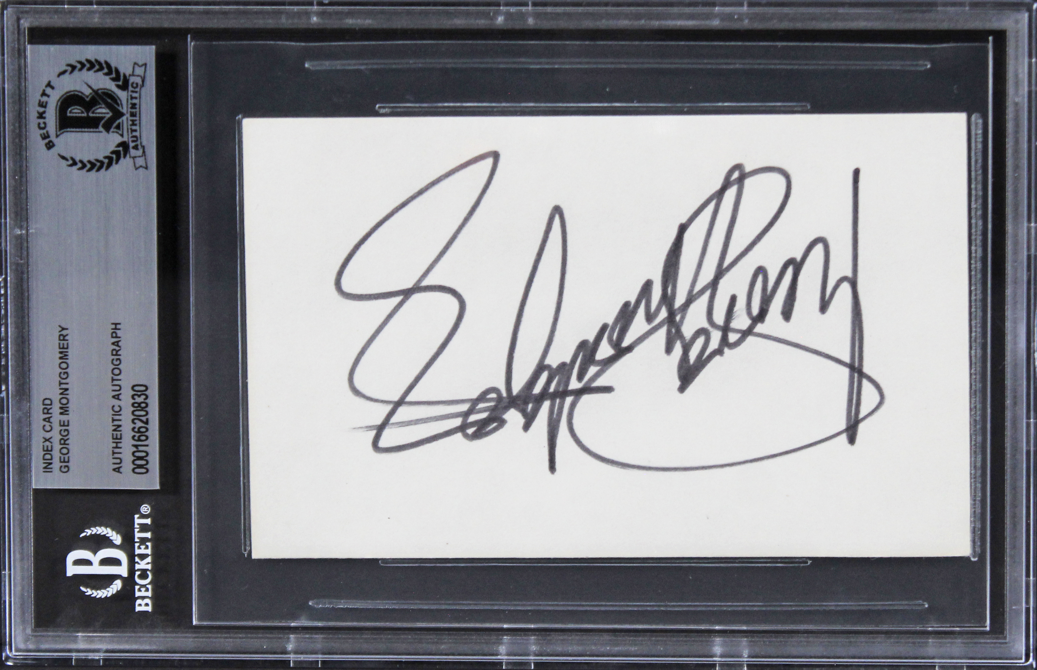 This Autographed 3x5 Index Card has been Personally Signed by George Montgomery of Samar. This item is 100% Authentic, it comes slabbed and authenticated by Beckett Authentication Services. The authenticity can be verified on Beckett Authentication Services website.