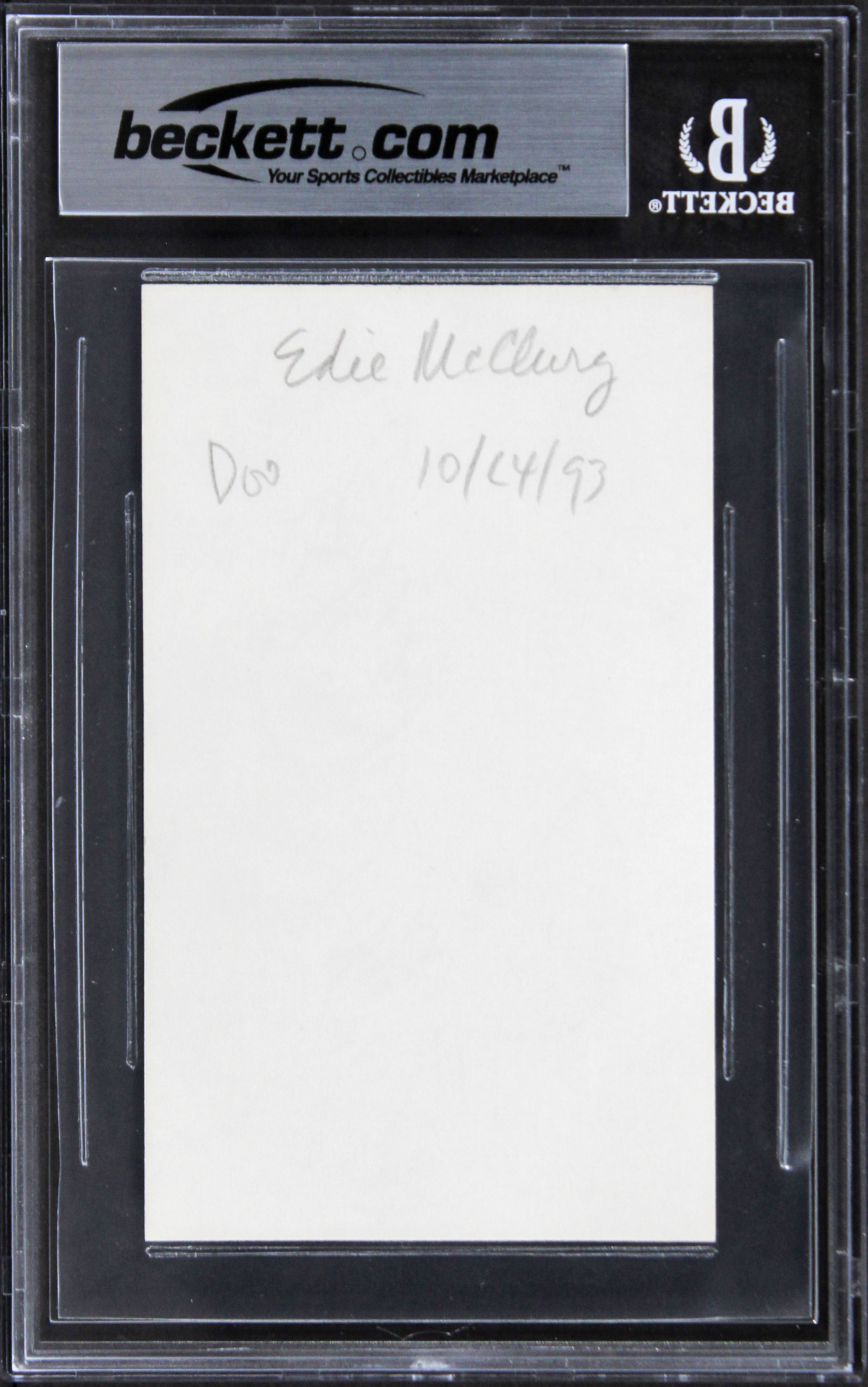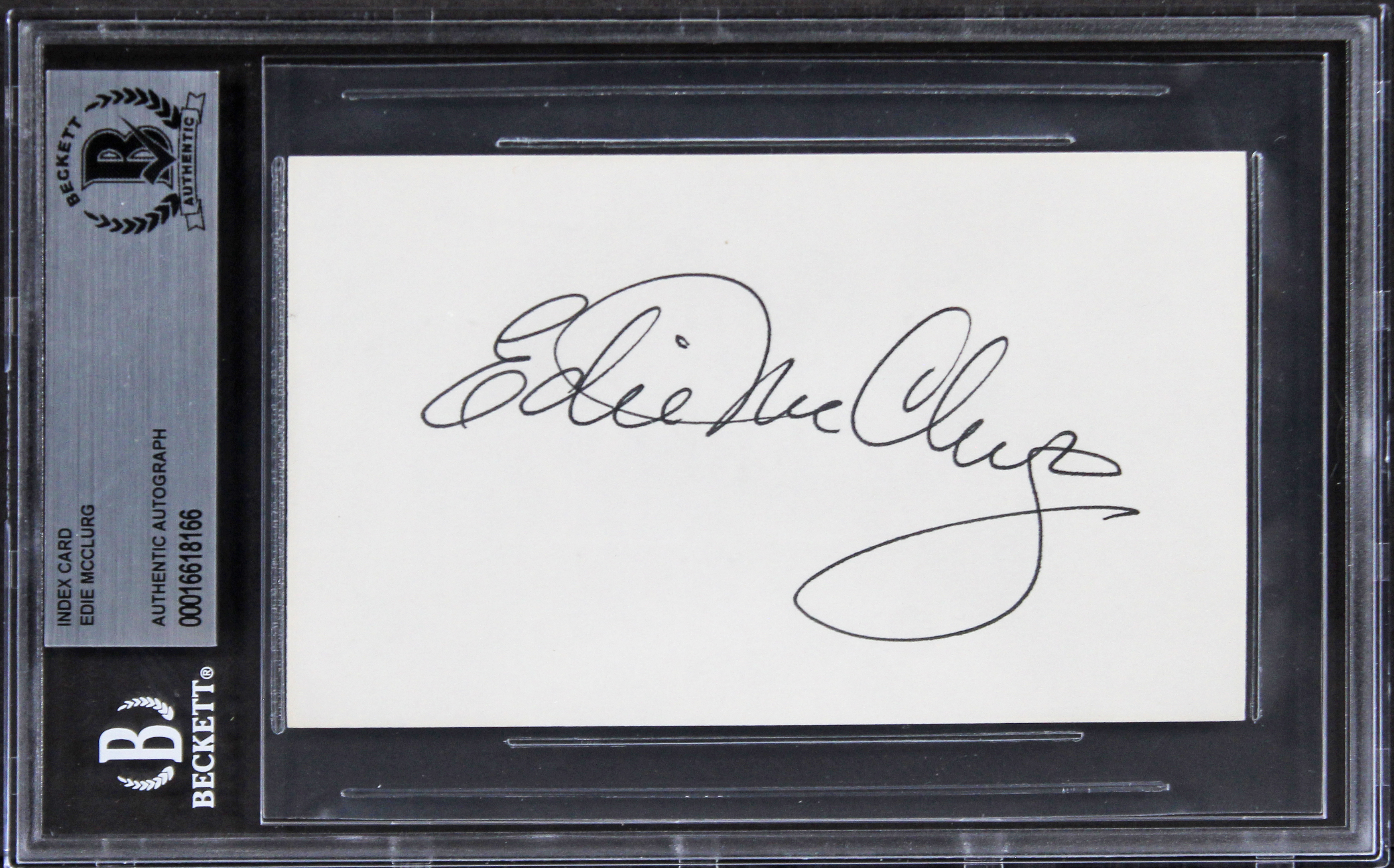 This Autographed 3x5 Index Card has been Personally Signed by Edie McClurg of Ferris Bueller's Day Off. This item is 100% Authentic, it comes slabbed and authenticated by Beckett Authentication Services. The authenticity can be verified on Beckett Authentication Services website.