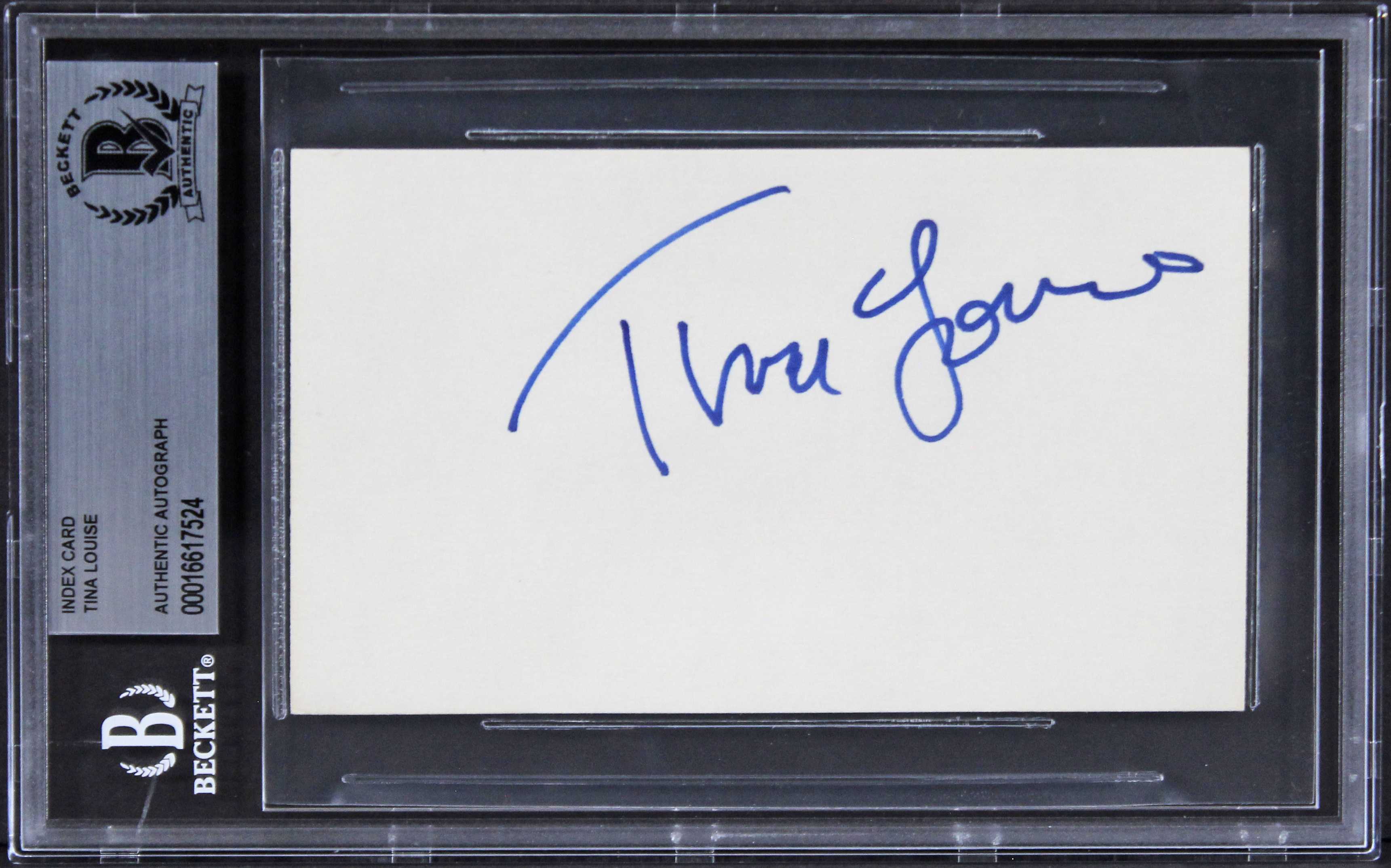 This Autographed 3x5 Index Card has been Personally Signed by Tina Louise of Gilligan's Island. This item is 100% Authentic, it comes slabbed and authenticated by Beckett Authentication Services. The authenticity can be verified on Beckett Authentication Services website.