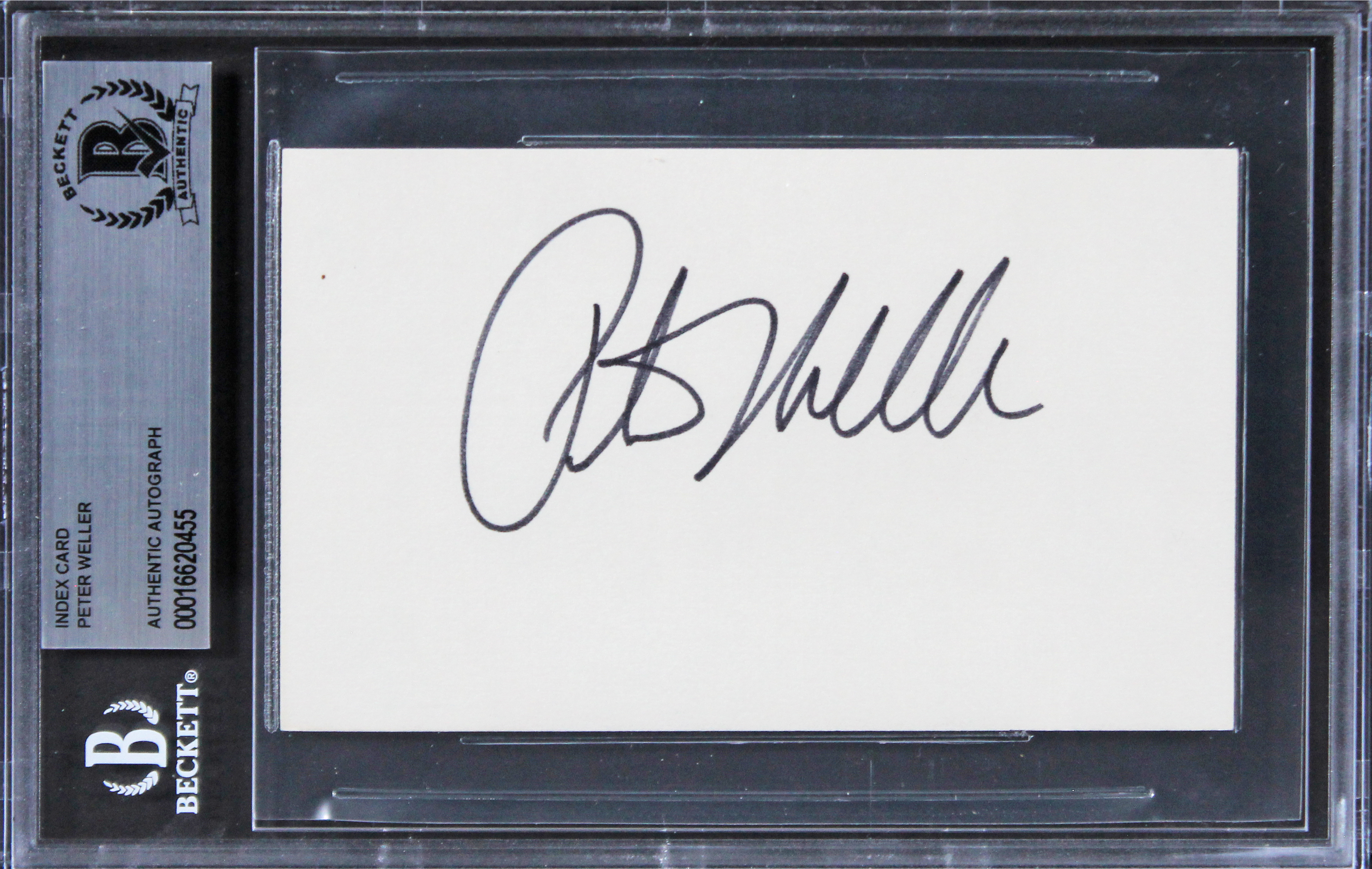 This Autographed 3x5 Index Card has been Personally Signed by Peter Weller of RoboCop. This item is 100% Authentic, it comes slabbed and authenticated by Beckett Authentication Services. The authenticity can be verified on Beckett Authentication Services website.