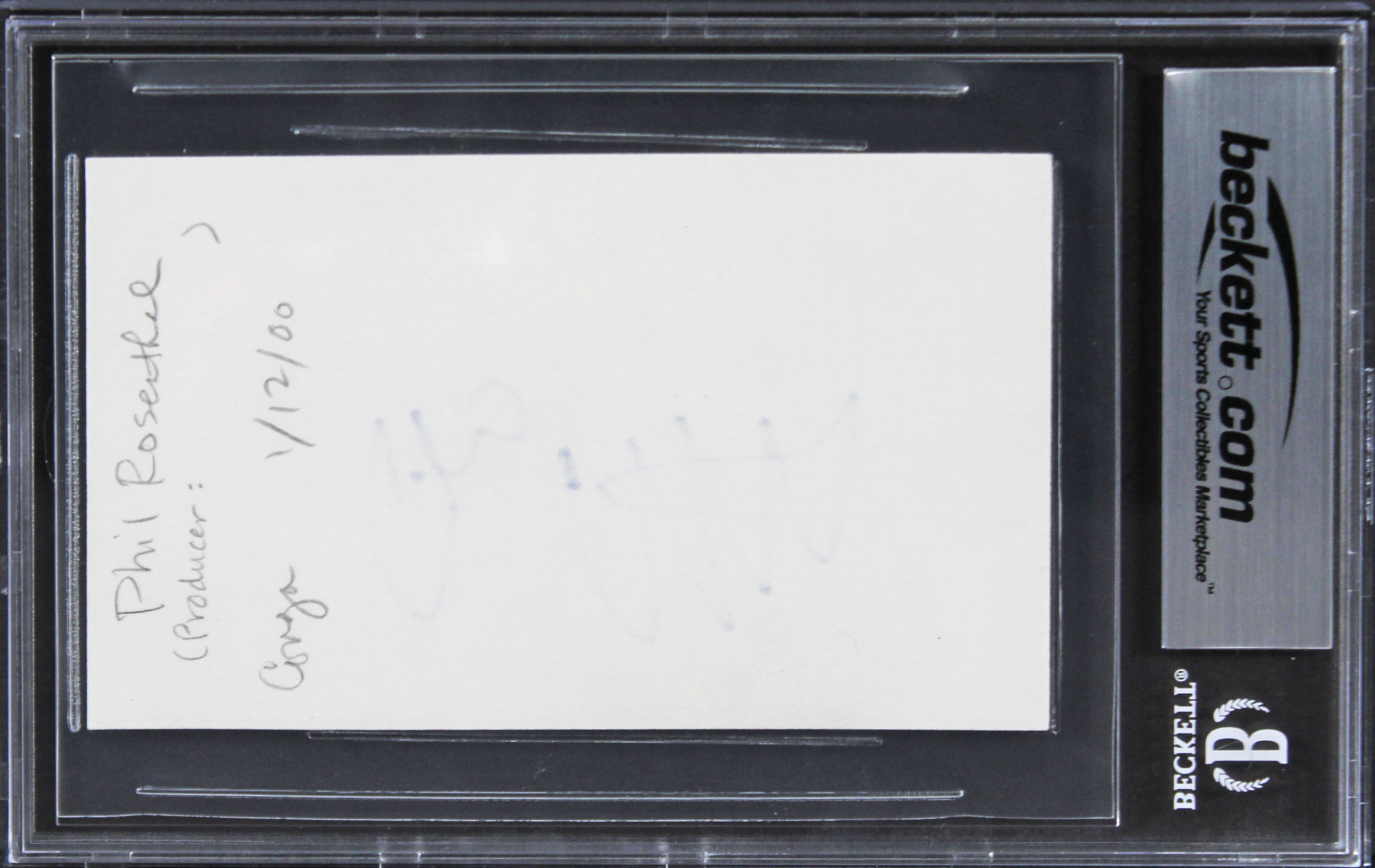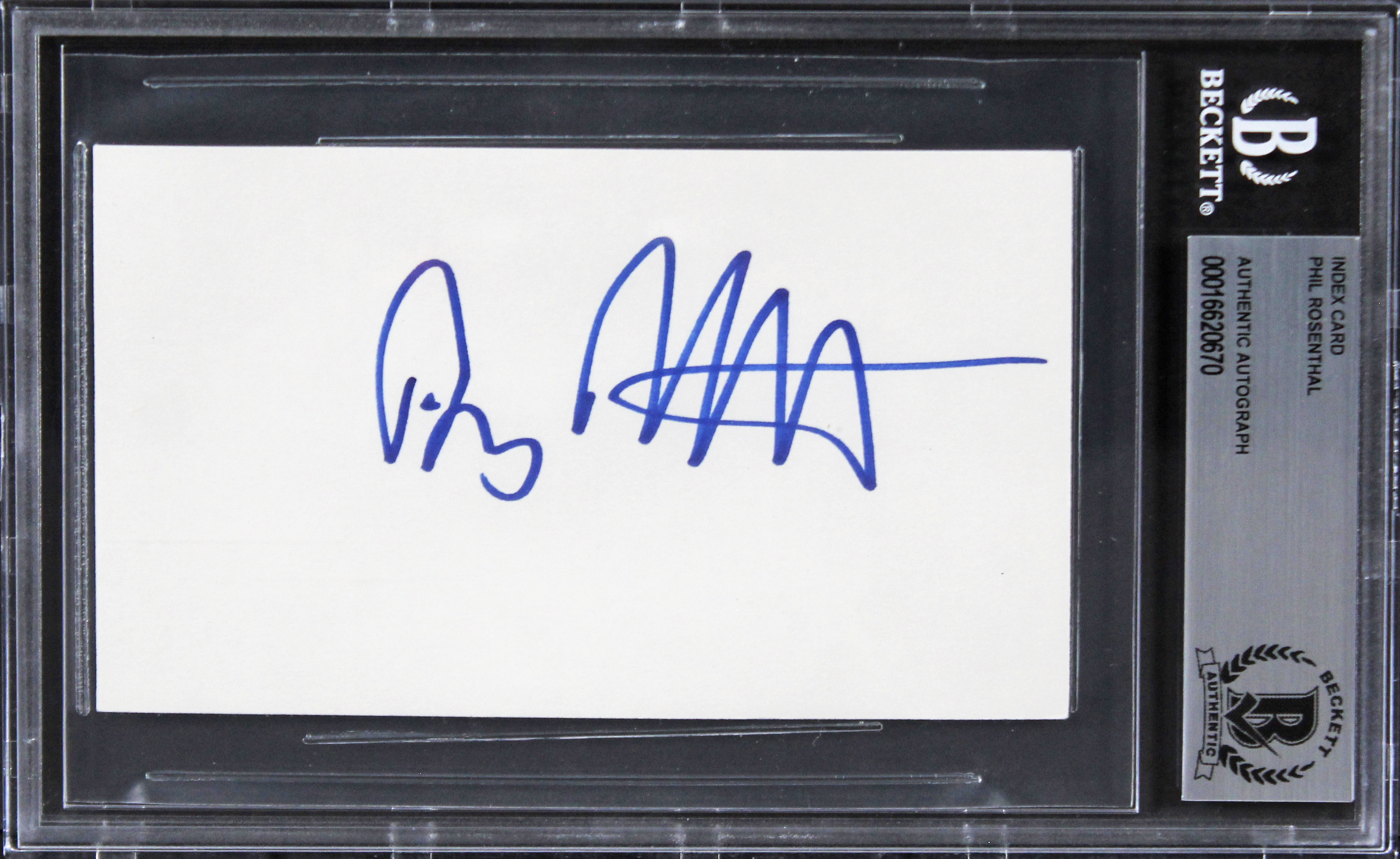 This Autographed 3x5 Index Card has been Personally Signed by Phil Rosenthal of Everyone Loves Raymond. This item is 100% Authentic, it comes slabbed and authenticated by Beckett Authentication Services. The authenticity can be verified on Beckett Authentication Services website.