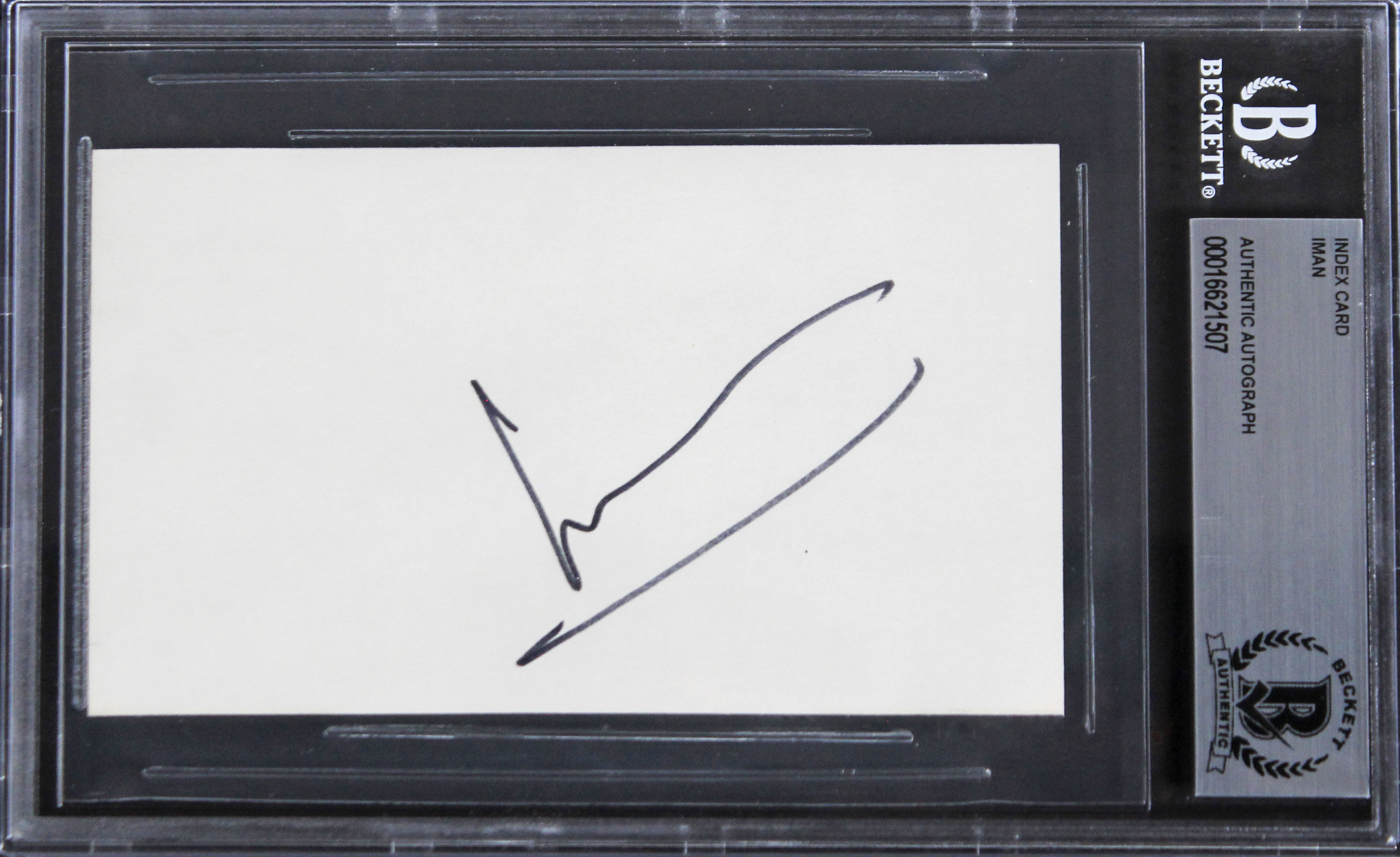 This Autographed 3x5 Index Card has been Personally Signed by Iman of Star Trek VI: The Undiscovered Country. This item is 100% Authentic, it comes slabbed and authenticated by Beckett Authentication Services. The authenticity can be verified on Beckett Authentication Services website.