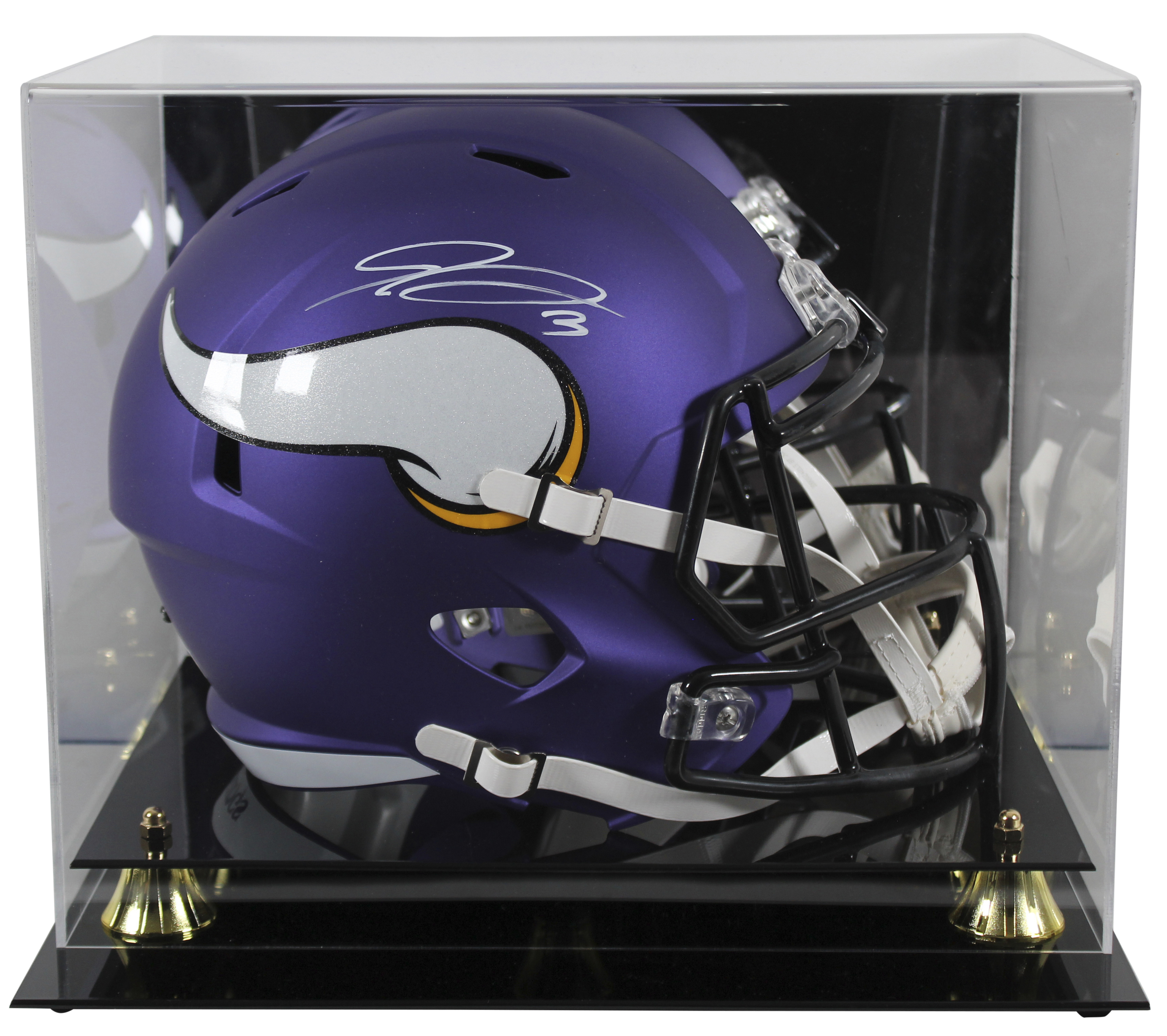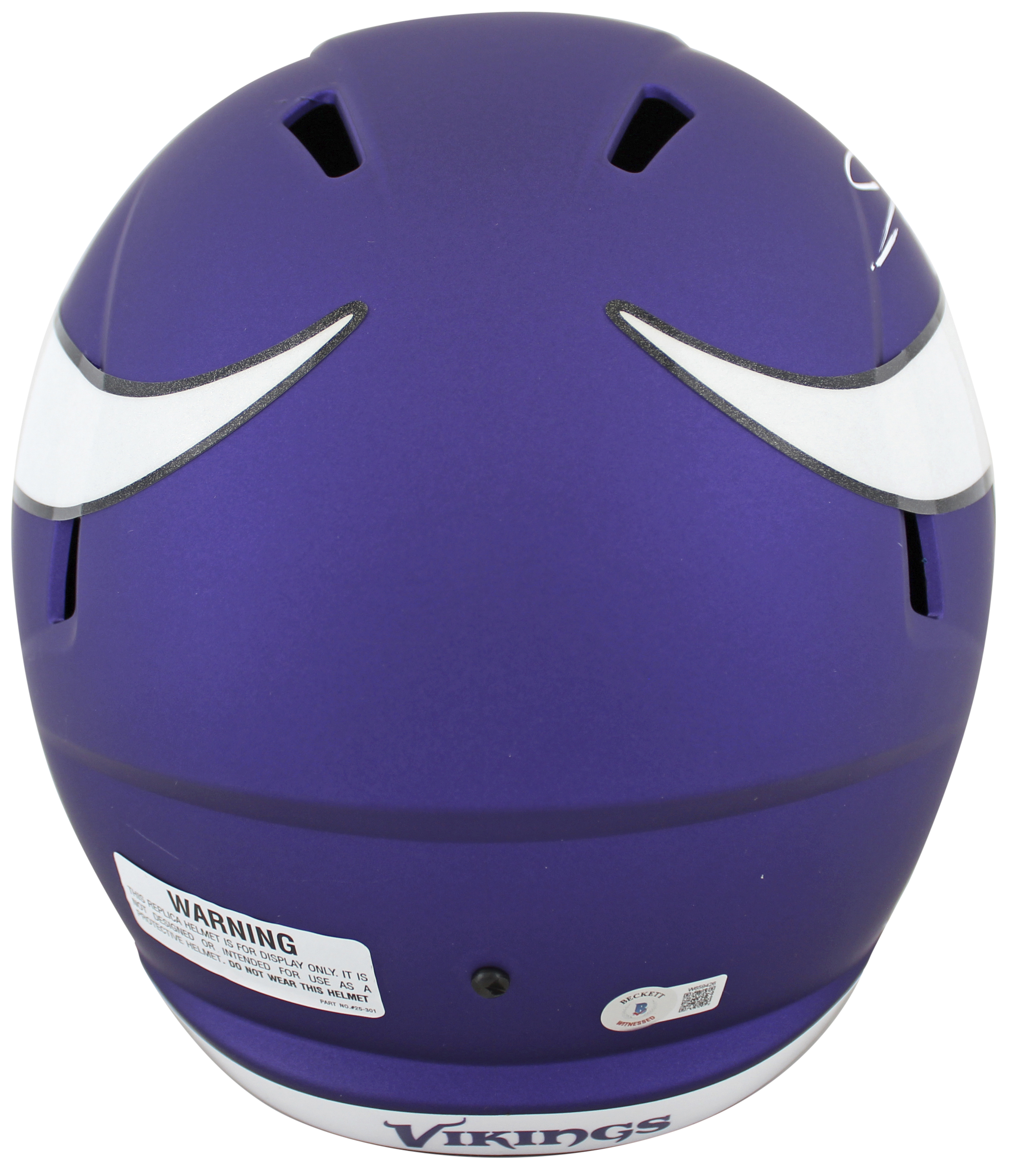 This Autographed Purple Full Size Speed Rep Helmet W/ Uv Mirrored Back Acrylic Display Case has been Personally Signed by Jordan Addison of the Minnesota Vikings. This item is 100% Authentic to include a hologram by Beckett Authentication Services. This item will come with an affixed Beckett Authentication Services (BAS) authentication sticker, which includes a scannable QR code to verify authenticity. Please note that Beckett no longer provides serial-numbered COA cards, and the attached BAS sticker will serve as the complete authentication for this item. This is a BAS Witnessed Protection Program item which means a Beckett Authentication Service representative was present when this item was being signed. We conducted an autograph signing with Jordan Addison where multiples of the same item were signed. While the photographs are representative of this item, the size, placement and strength of the signature may vary. Each item is hand signed, therefore, each autograph is unique. This item can be verified through BAS Witnessed.