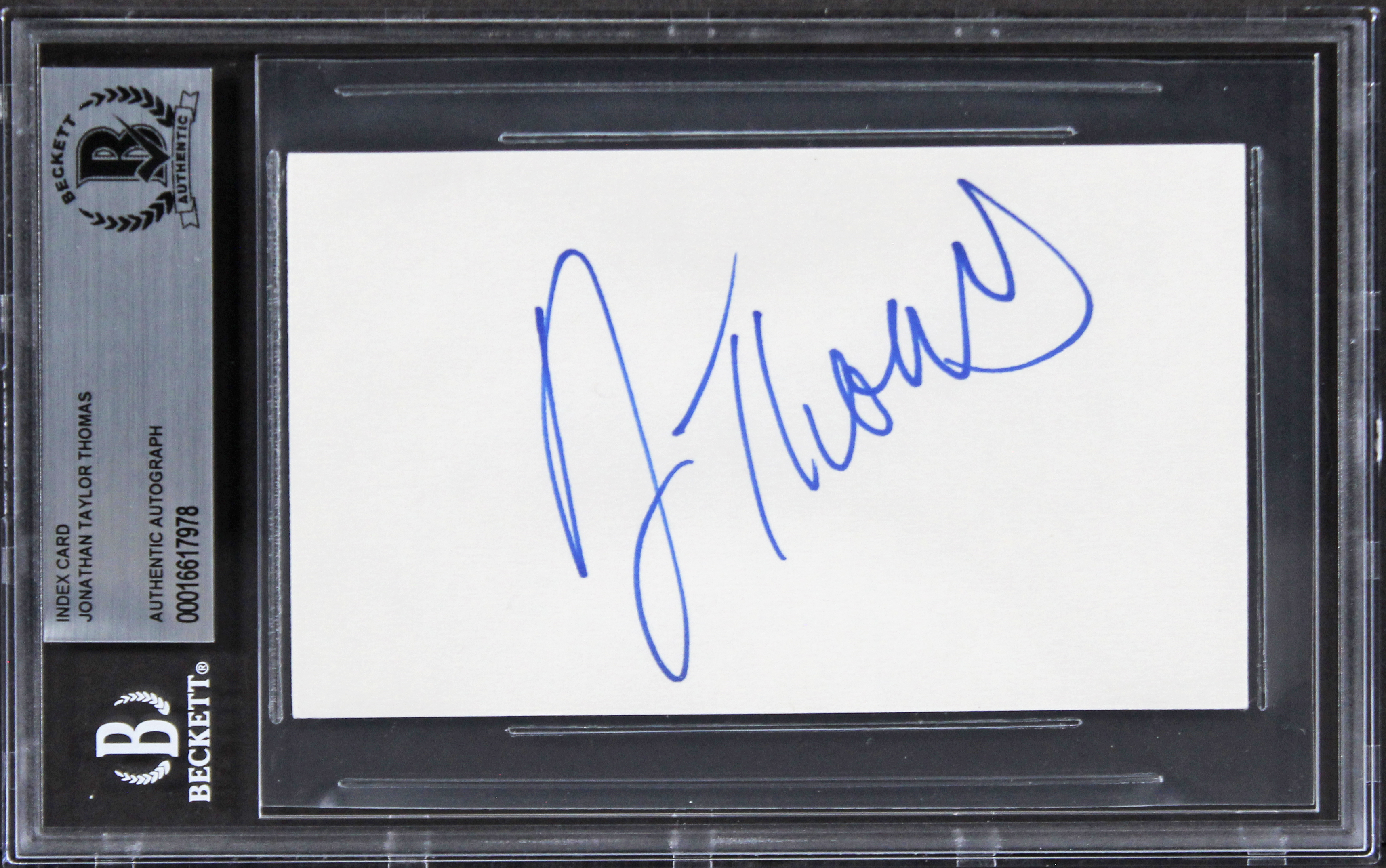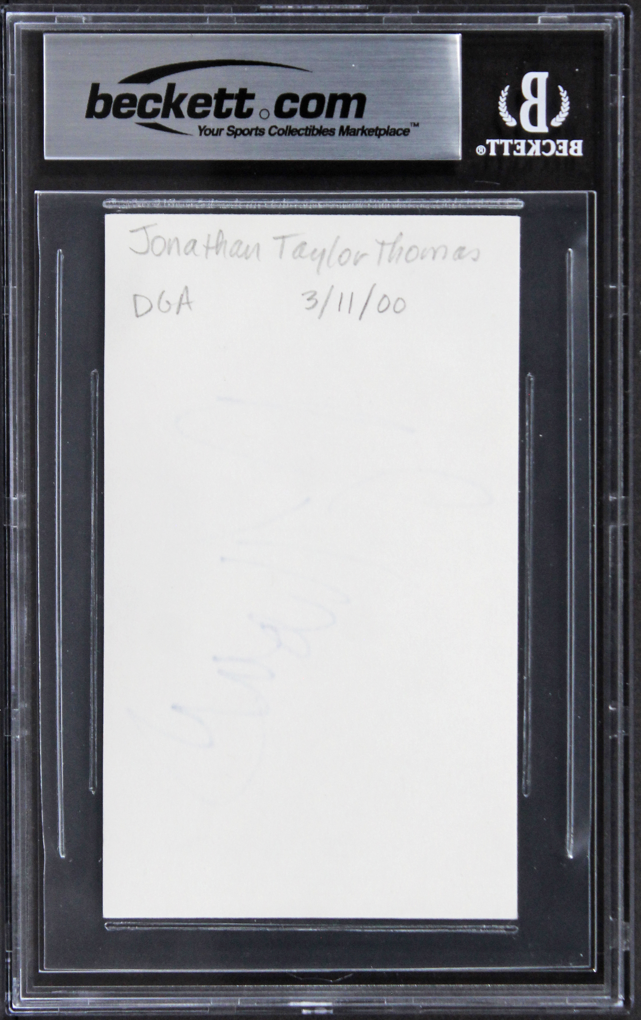 This Autographed 3x5 Index Card has been Personally Signed by Jonathan Taylor Thomas of The Lion King. This item is 100% Authentic, it comes slabbed and authenticated by Beckett Authentication Services. The authenticity can be verified on Beckett Authentication Services website.