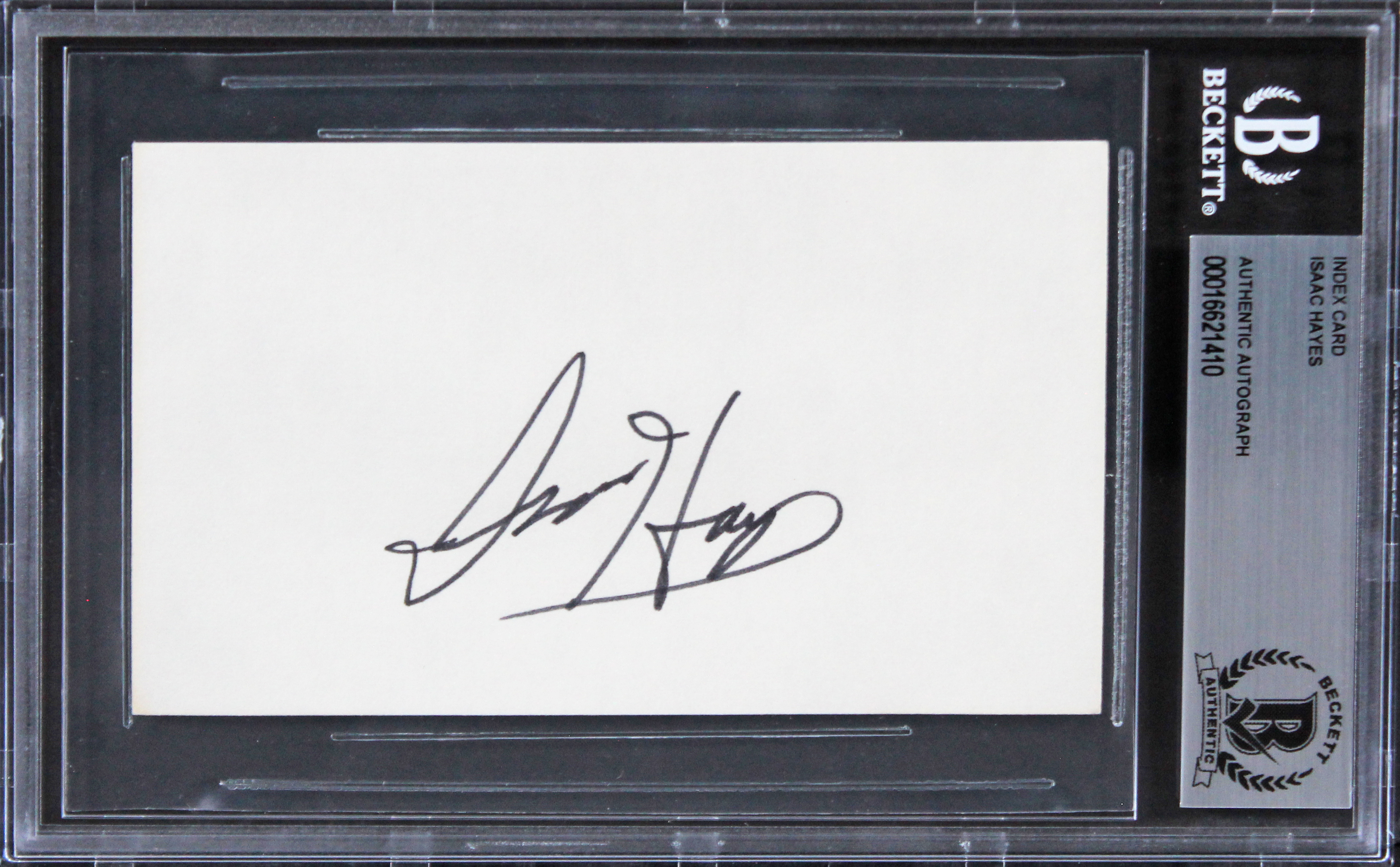 This Autographed 3x5 Index Card has been Personally Signed by Isaac Hayes of South Park. This item is 100% Authentic, it comes slabbed and authenticated by Beckett Authentication Services. The authenticity can be verified on Beckett Authentication Services website.