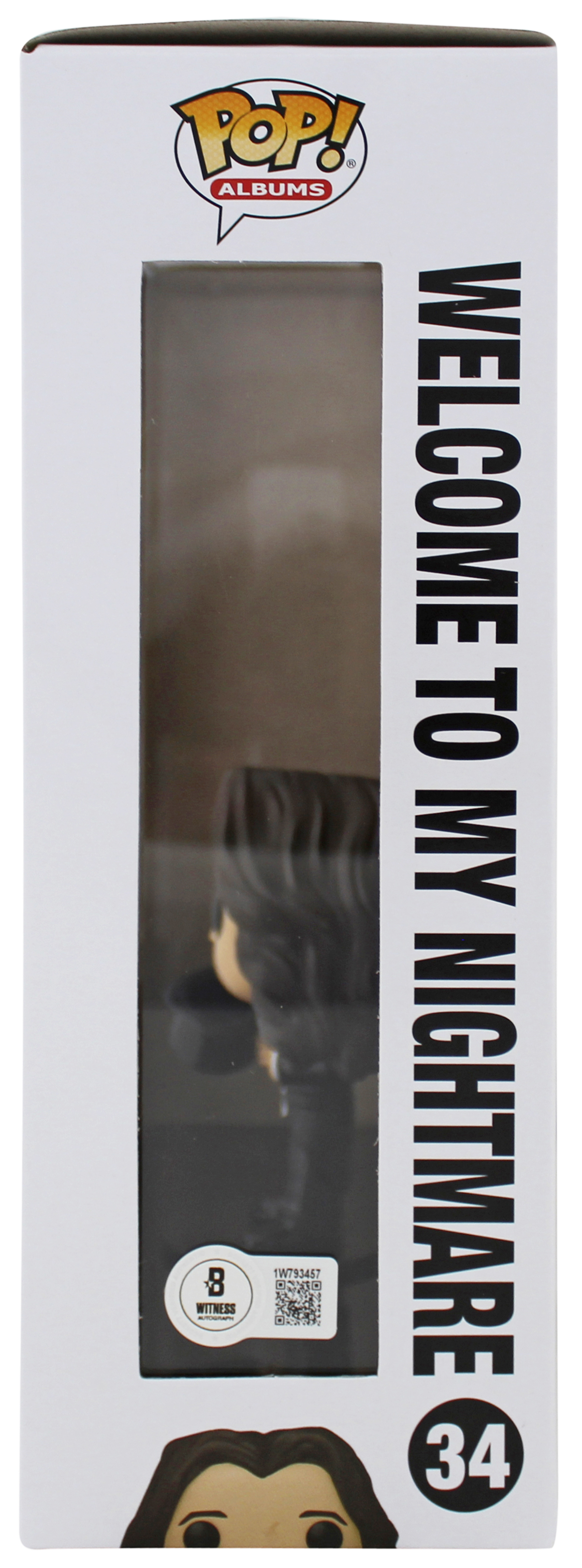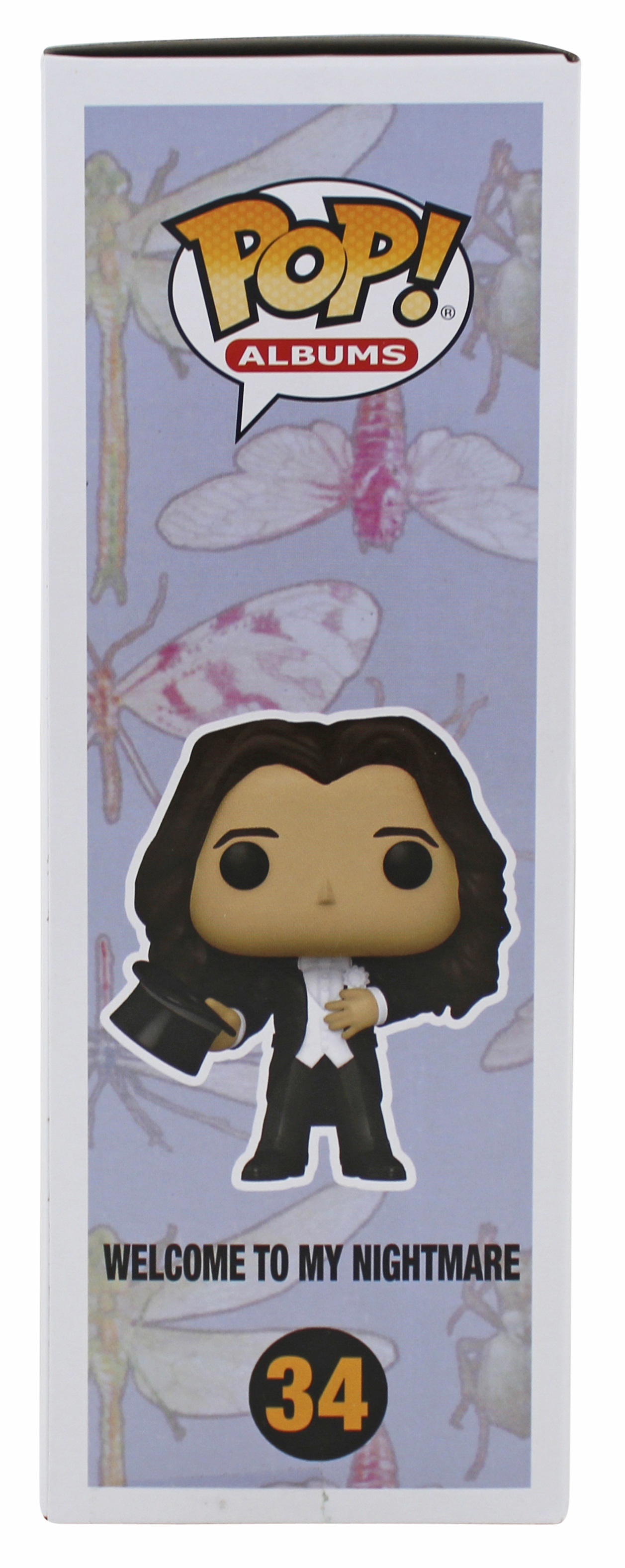 This Autographed #34 w/ Yellow Signature Funko Pop Vinyl Figure with the inscription of "Welcome To My Nightmare" has been Personally Signed by Alice Cooper. This item is 100% Authentic to include a hologram by Beckett Authentication Services. This item will come with an affixed Beckett Authentication Services (BAS) authentication sticker, which includes a scannable QR code to verify authenticity. Please note that Beckett no longer provides serial-numbered COA cards, and the attached BAS sticker will serve as the complete authentication for this item. This is a BAS Witnessed Protection Program item which means a Beckett Authentication Service representative was present when this item was being signed. We conducted an autograph signing with Alice Cooper where multiples of the same item were signed. While the photographs are representative of this item, the size, placement and strength of the signature may vary. Each item is hand signed, therefore, each autograph is unique. Please refer to the photos for condition of the item prior to purchase, these are in good condition but would not be considered mint.