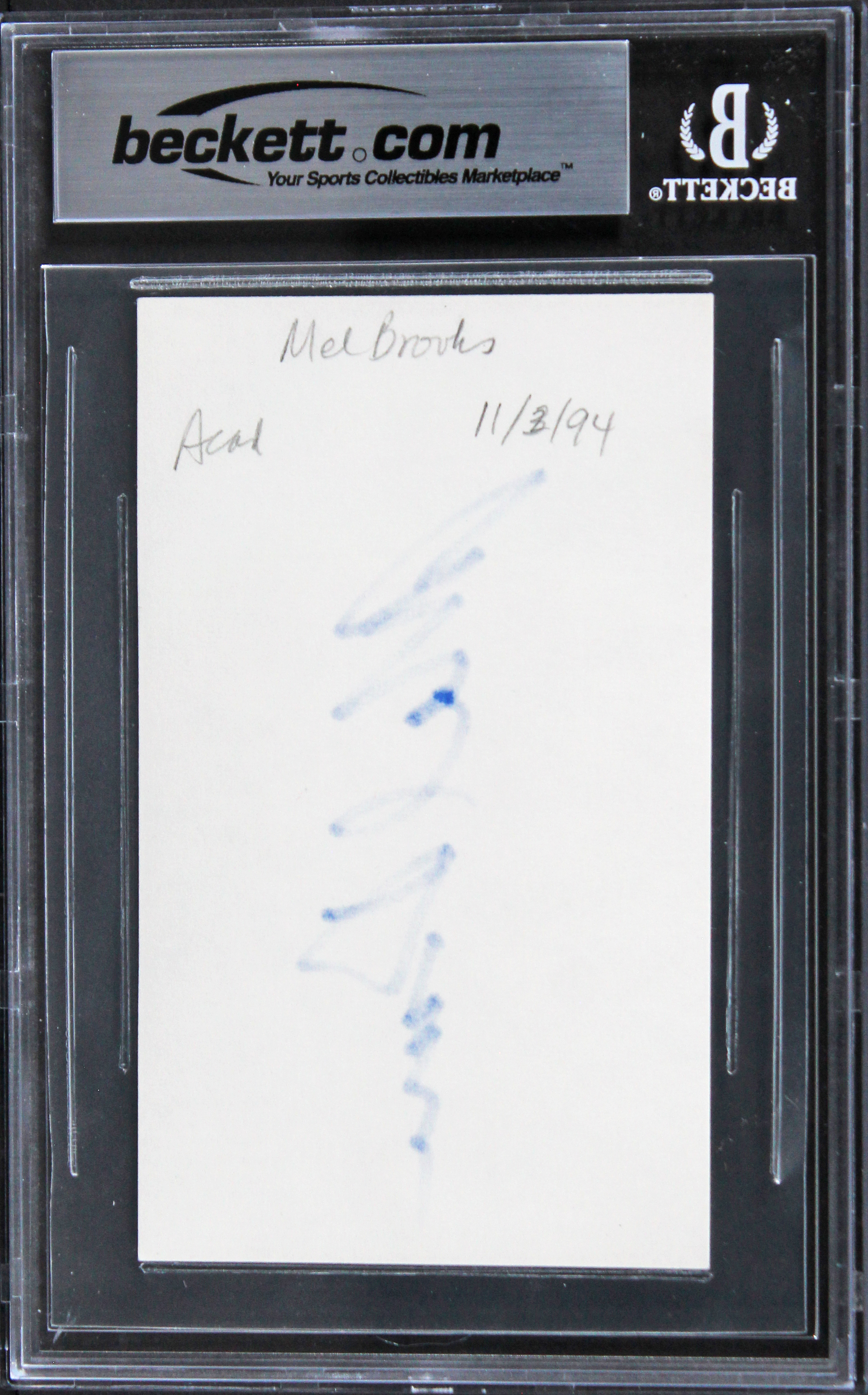 This Autographed 3x5 Index Card has been Personally Signed by Mel Brooks of Spaceballs. This item is 100% Authentic, it comes slabbed and authenticated by Beckett Authentication Services. The authenticity can be verified on Beckett Authentication Services website.
