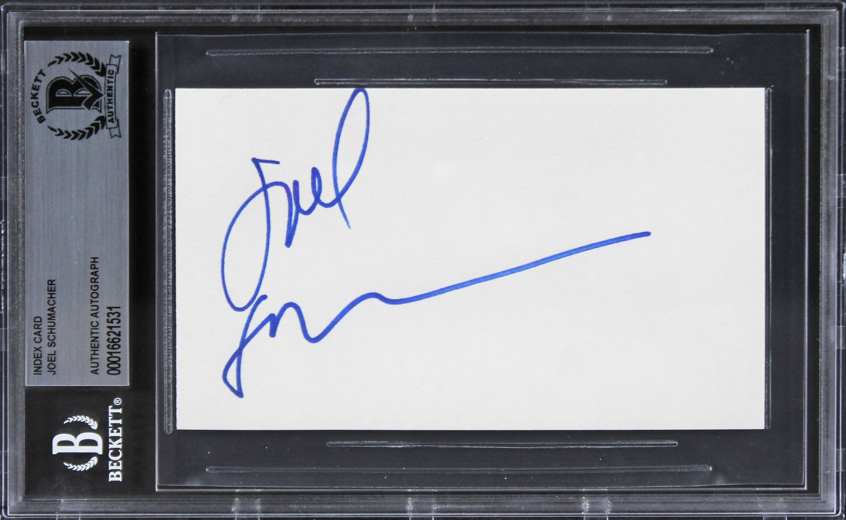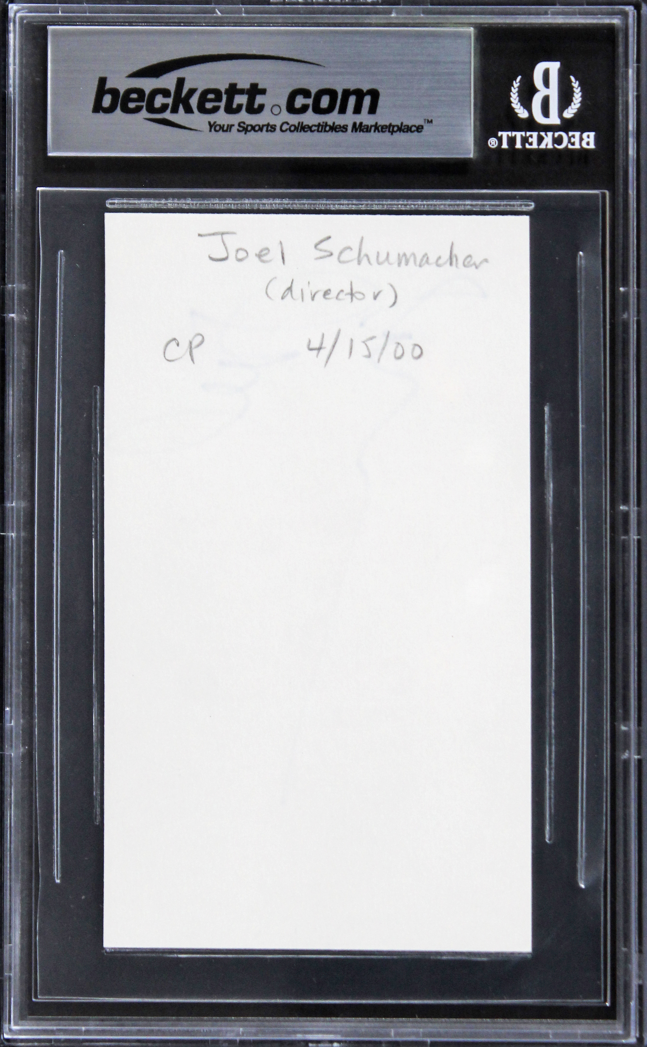 This Autographed 3x5 Index Card has been Personally Signed by Joel Schumacher of The Client. This item is 100% Authentic, it comes slabbed and authenticated by Beckett Authentication Services. The authenticity can be verified on Beckett Authentication Services website.