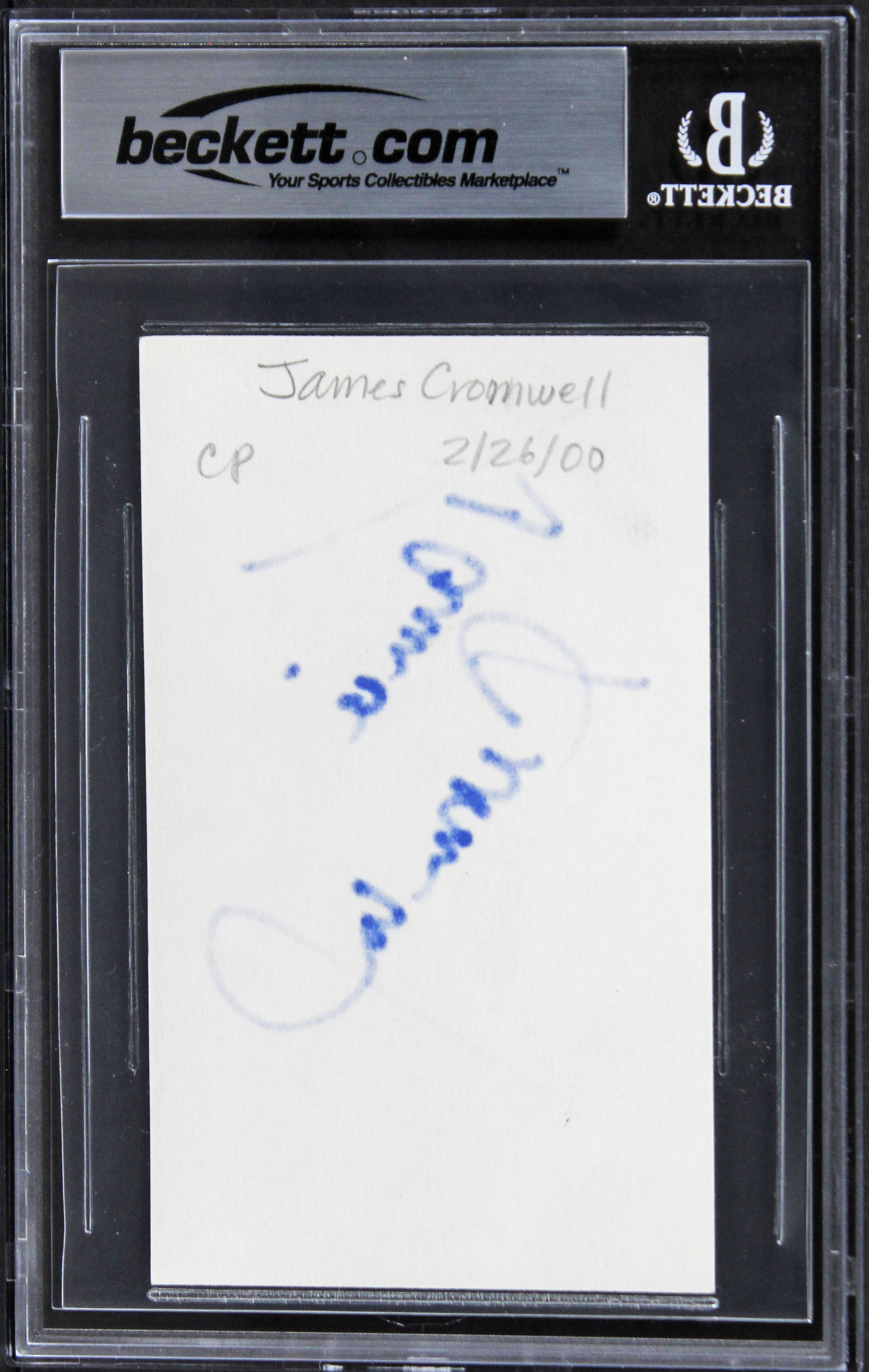 This Autographed 3x5 Index Card has been Personally Signed by James Cromwell of The Green Mile. This item is 100% Authentic, it comes slabbed and authenticated by Beckett Authentication Services. The authenticity can be verified on Beckett Authentication Services website.