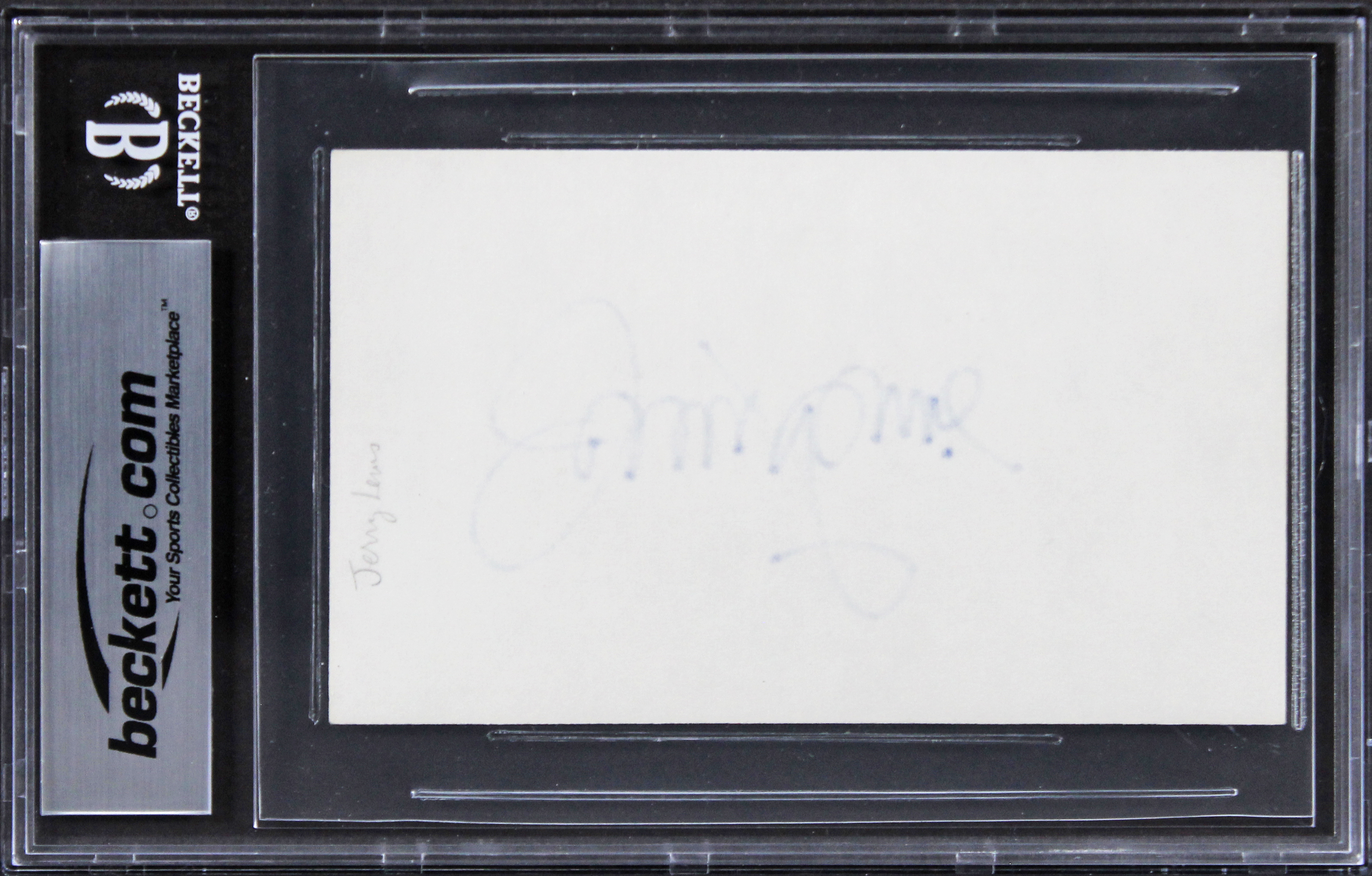 This Autographed 3x5 Index Card has been Personally Signed by Jerry Lewis of The Nutty Professor. This item is 100% Authentic, it comes slabbed and authenticated by Beckett Authentication Services. The authenticity can be verified on Beckett Authentication Services website.