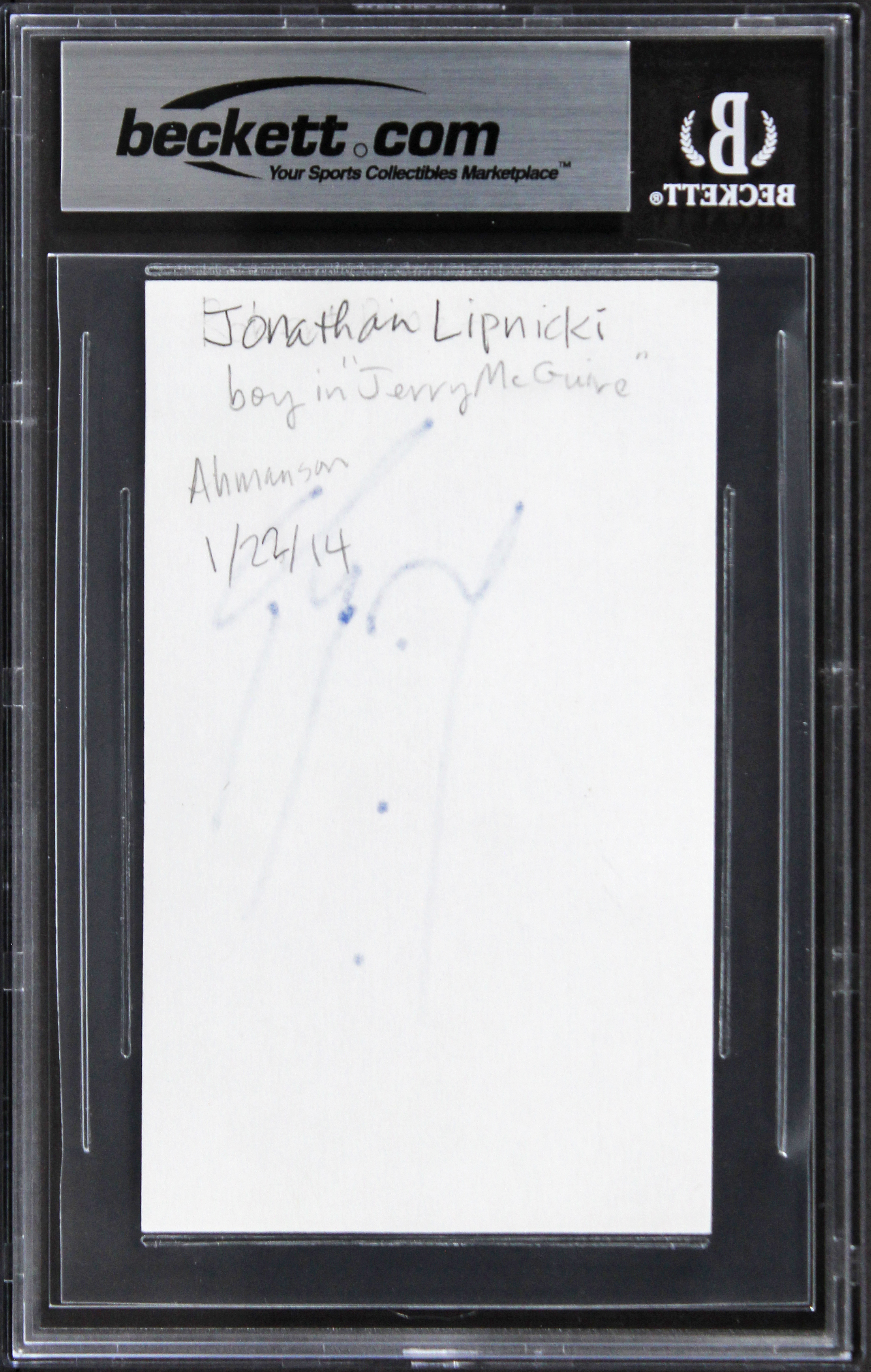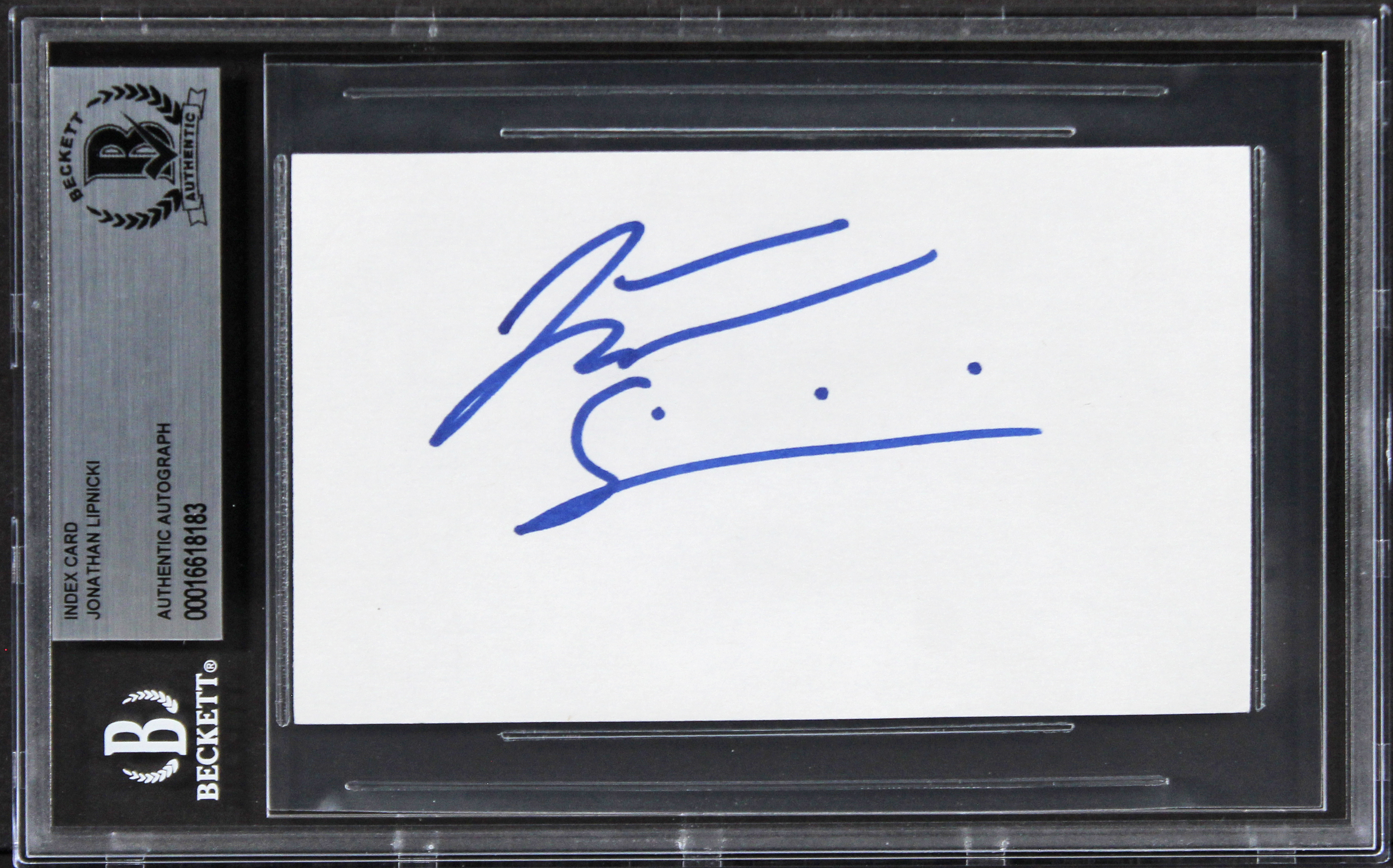 This Autographed 3x5 Index Card has been Personally Signed by Johnathan Lipnicki of Like Mike. This item is 100% Authentic, it comes slabbed and authenticated by Beckett Authentication Services. The authenticity can be verified on Beckett Authentication Services website.