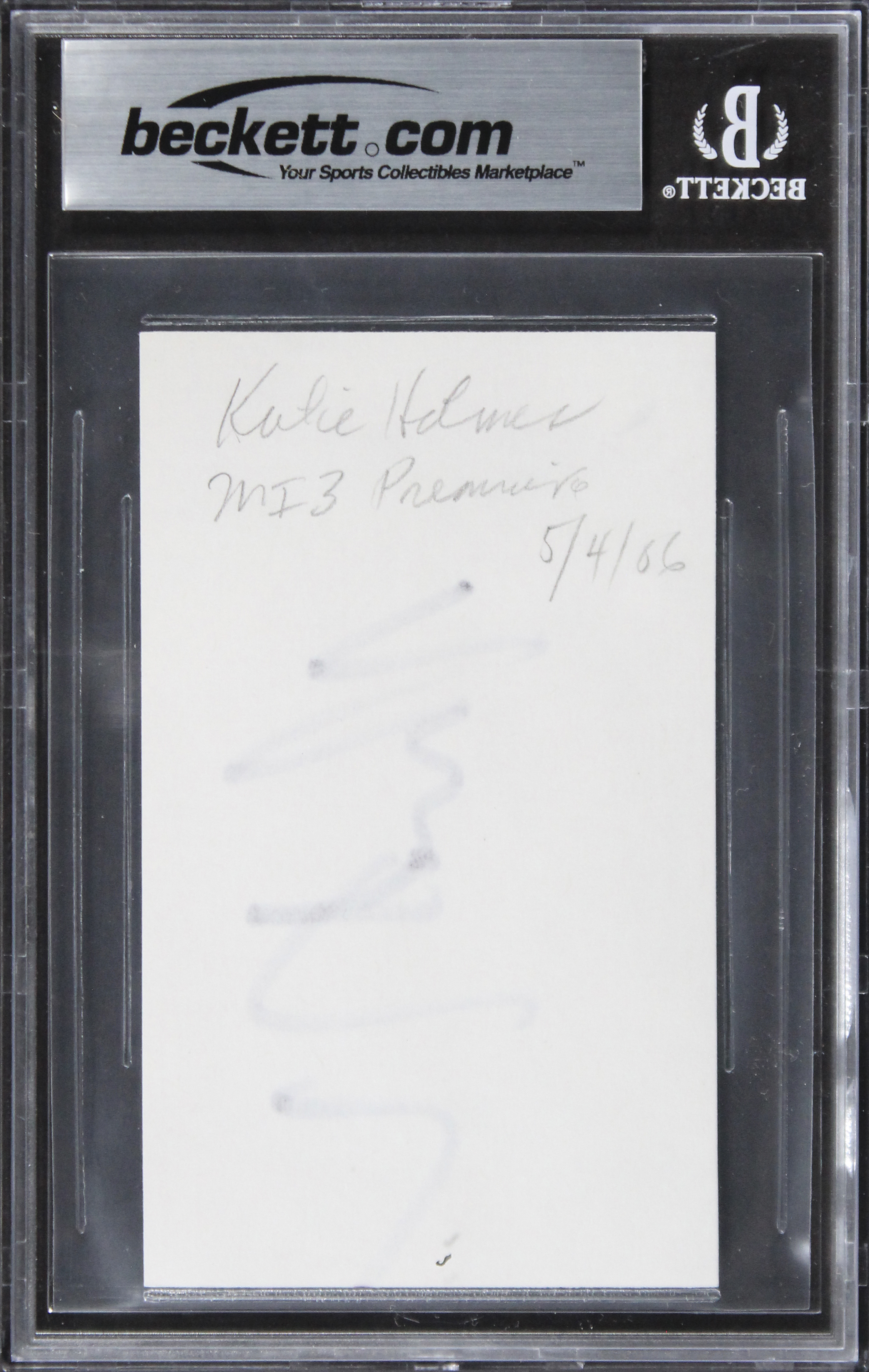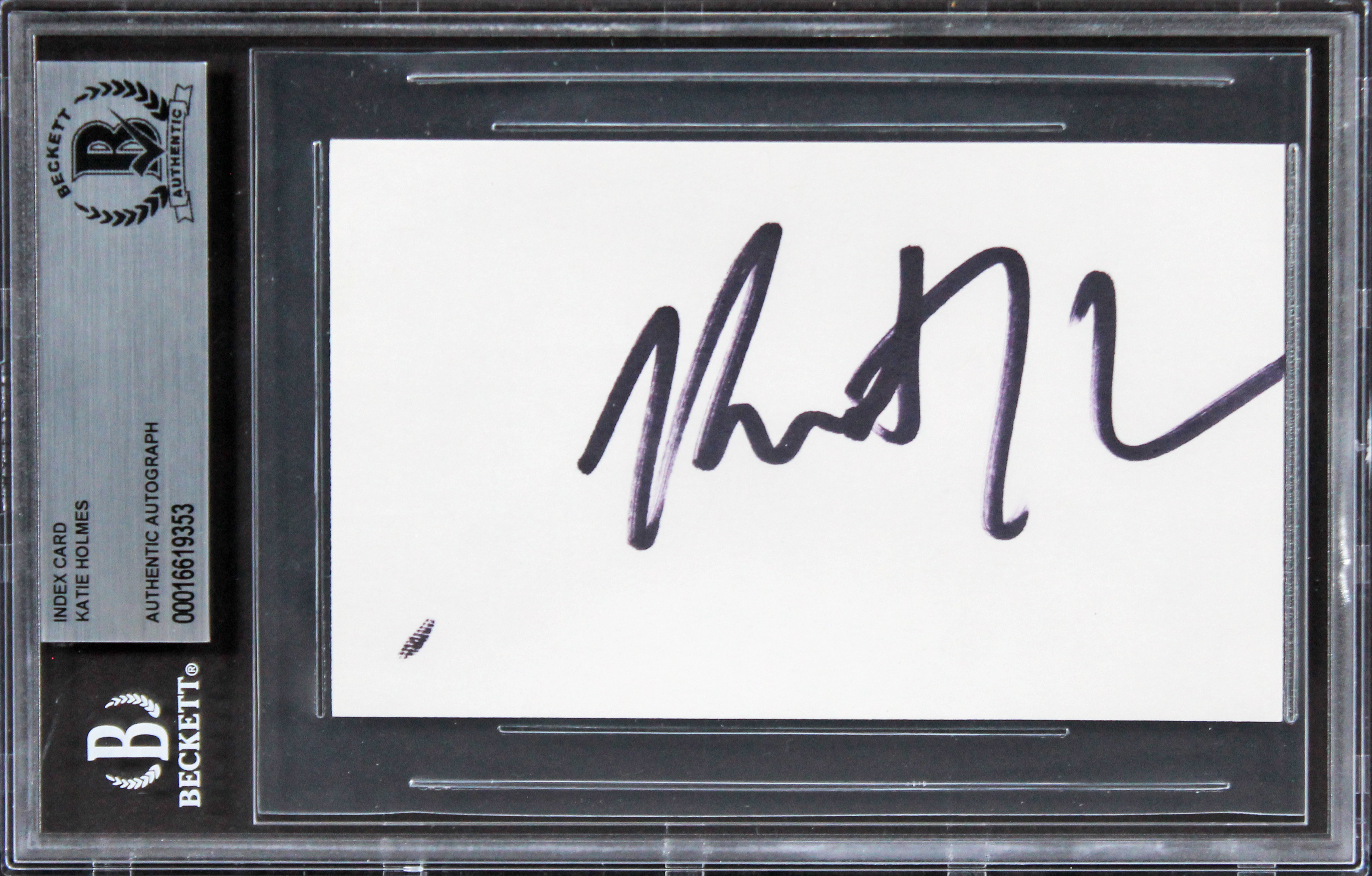 This Autographed 3x5 Index Card has been Personally Signed by Katie Holmes of Batman Begins. This item is 100% Authentic, it comes slabbed and authenticated by Beckett Authentication Services. The authenticity can be verified on Beckett Authentication Services website.