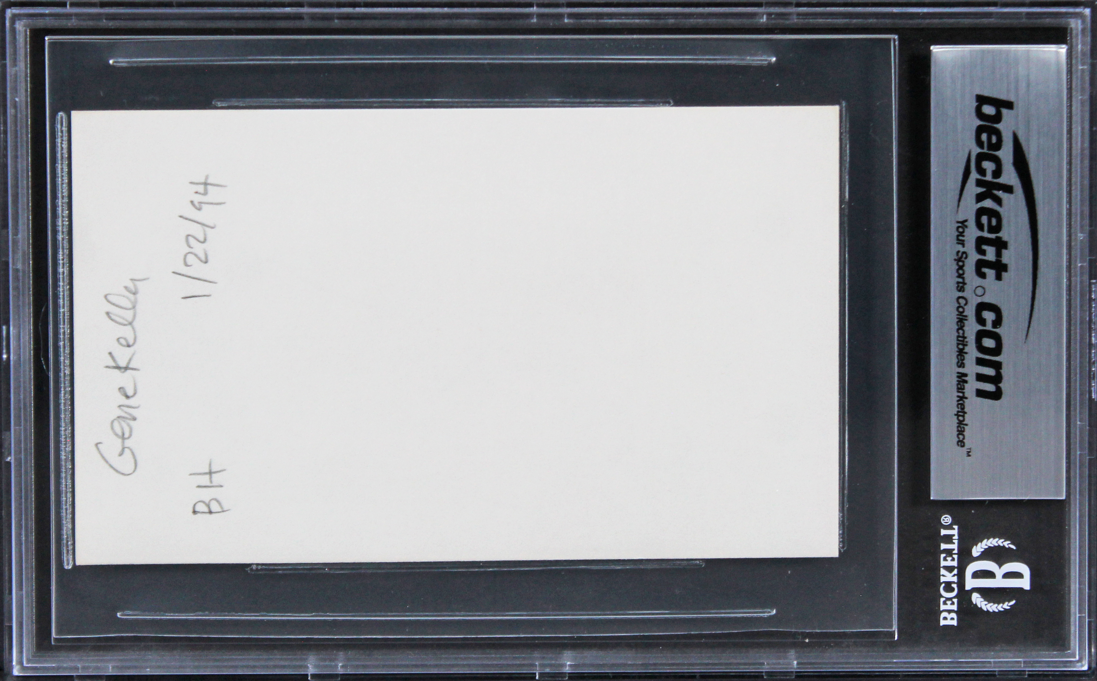 This Autographed 3x5 Index Card has been Personally Signed by Gene Kelly of Singin' in the Rain. This item is 100% Authentic, it comes slabbed and authenticated by Beckett Authentication Services. The authenticity can be verified on Beckett Authentication Services website.