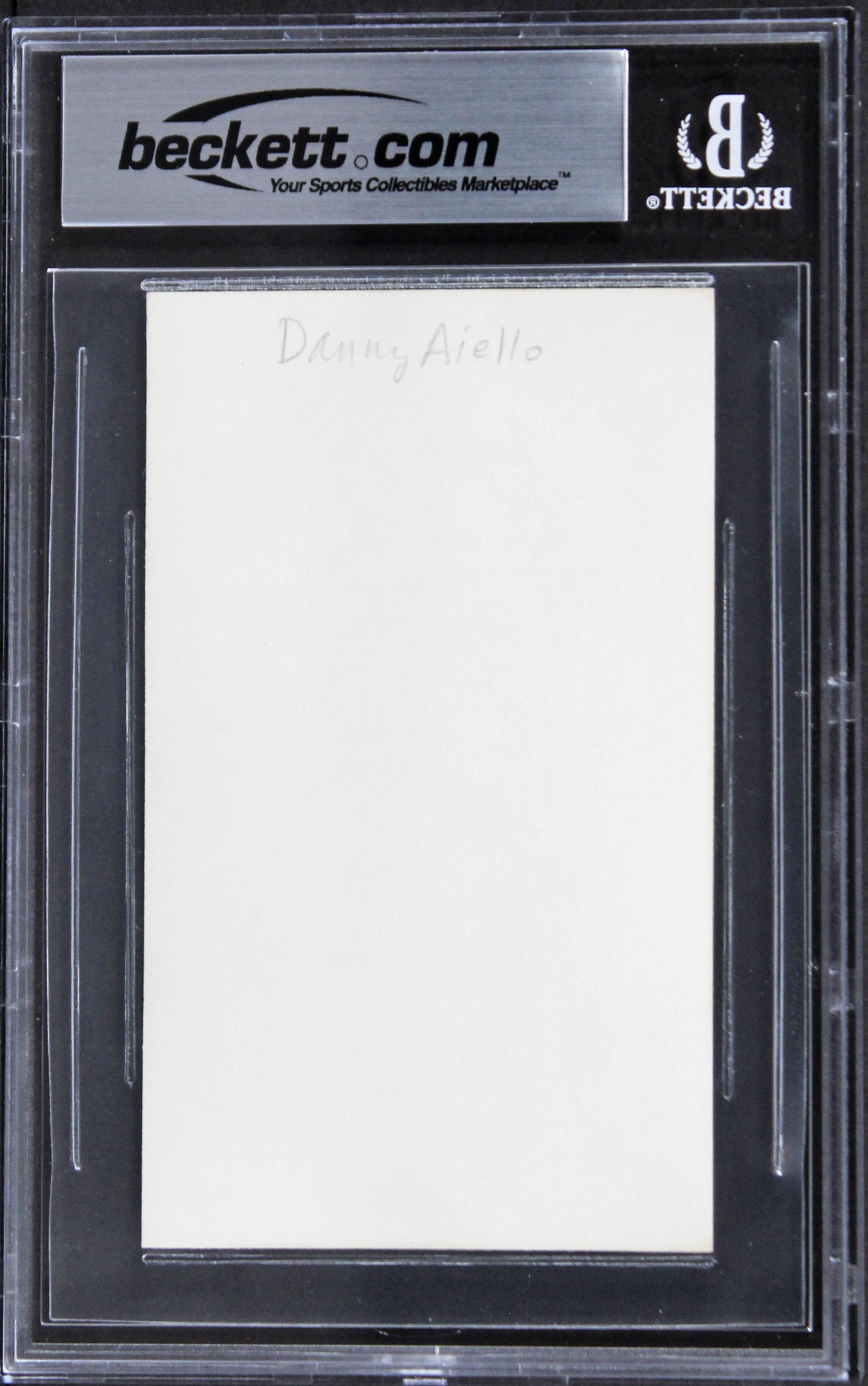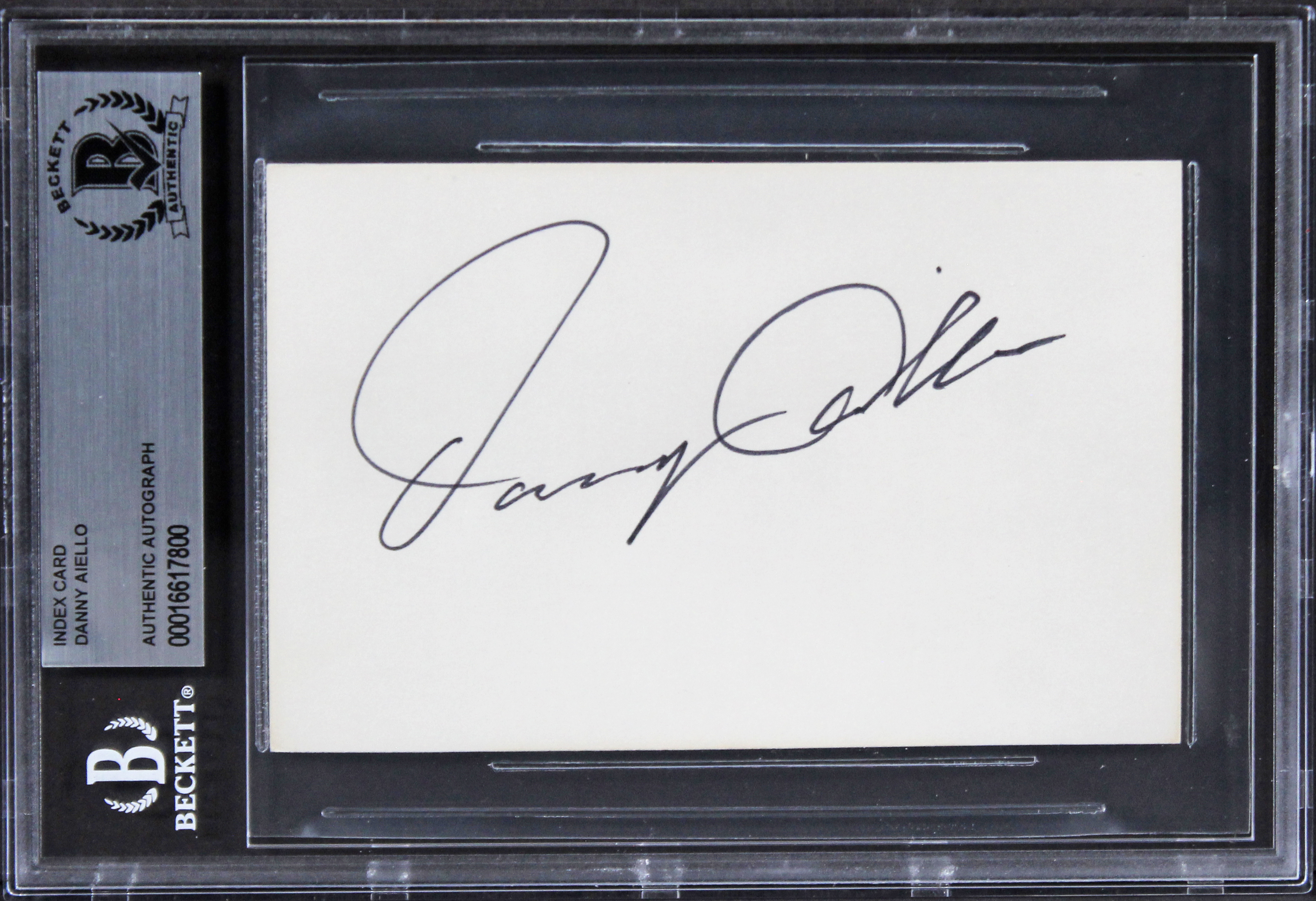 This Autographed 3x5 Index Card has been Personally Signed by Danny Aiello of Do the Right Thing. This item is 100% Authentic, it comes slabbed and authenticated by Beckett Authentication Services. The authenticity can be verified on Beckett Authentication Services website.