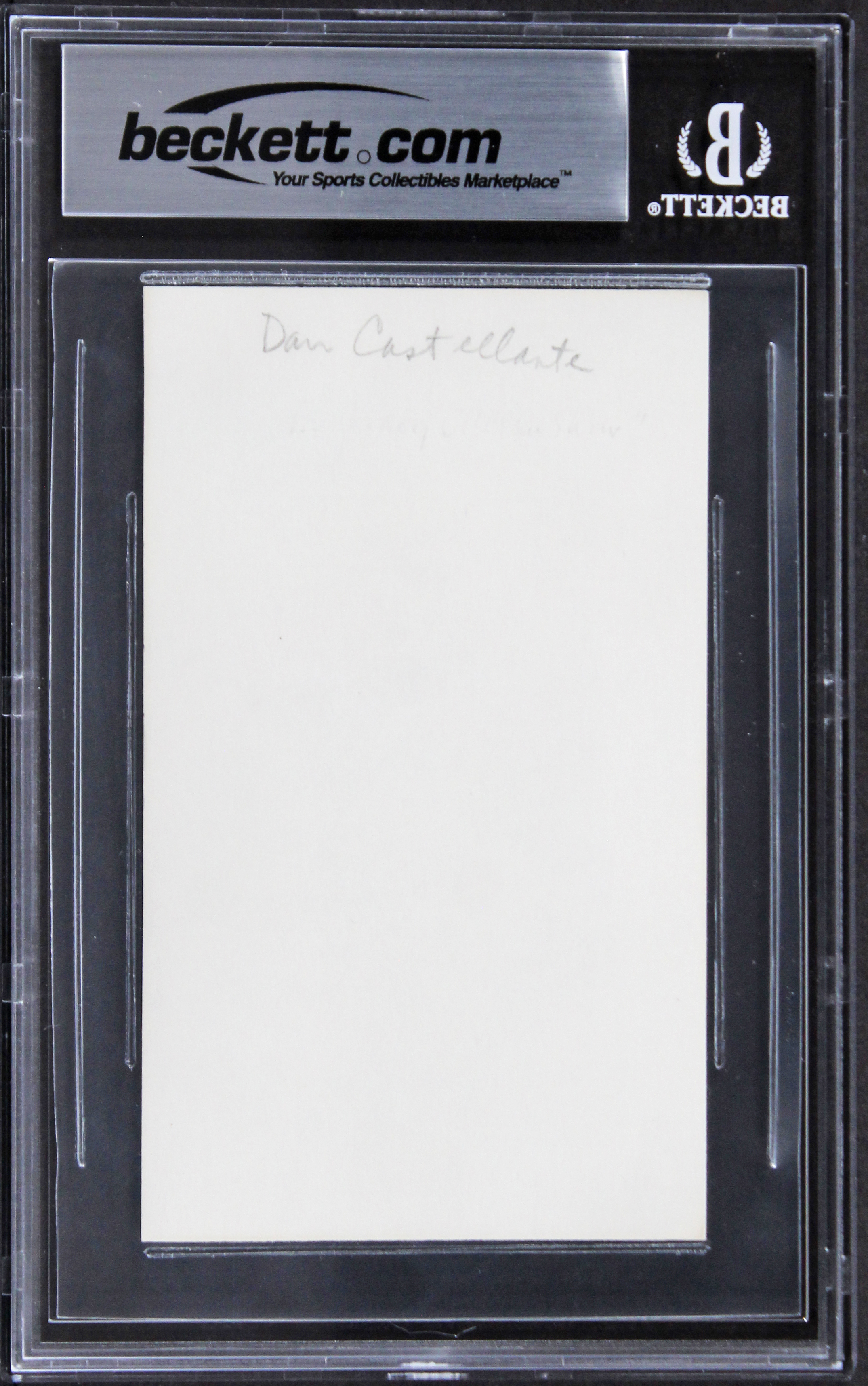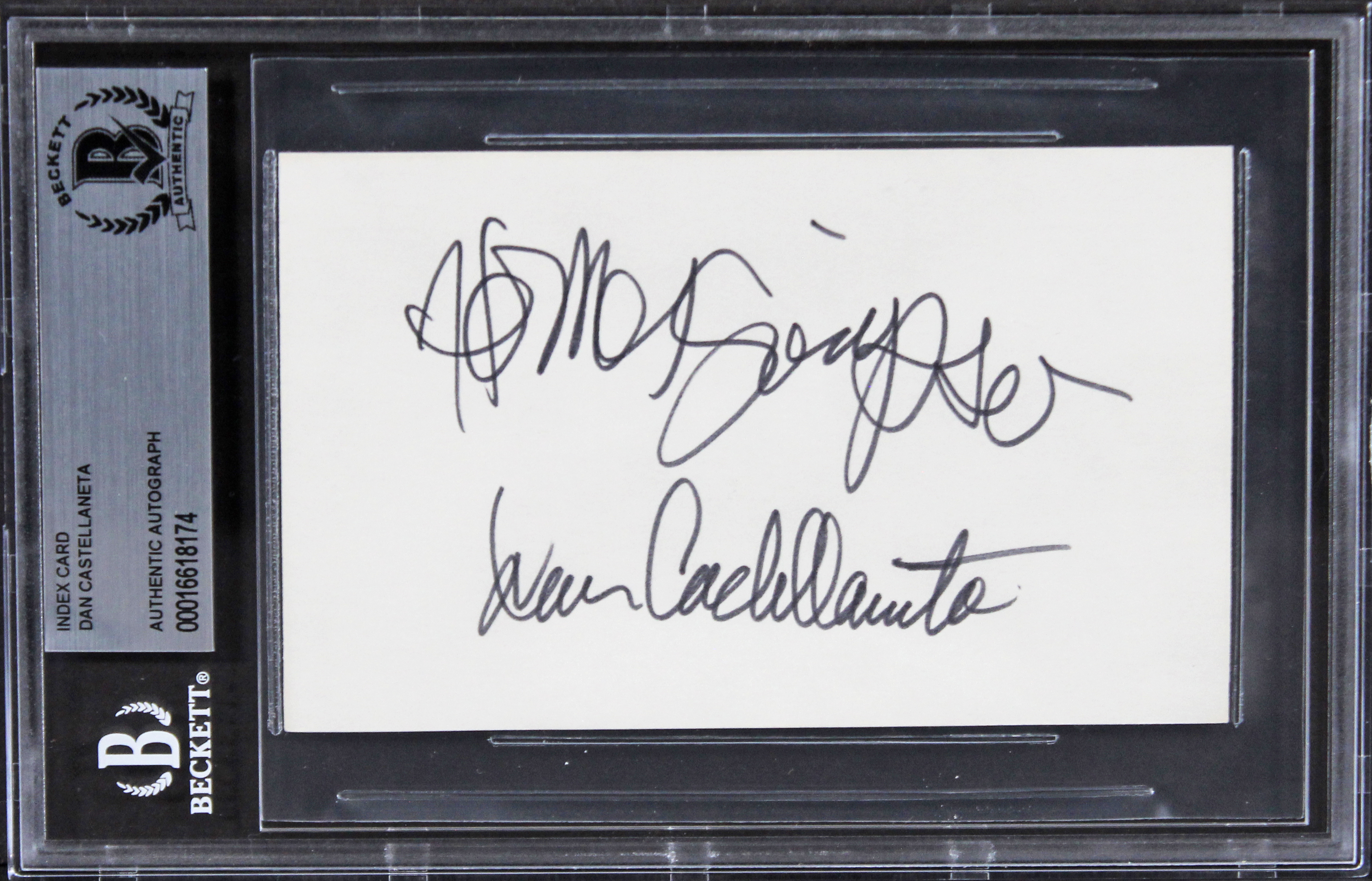 This Autographed 3x5 Index Card has been Personally Signed by Dan Castellaneta of The Simpsons. This item is 100% Authentic, it comes slabbed and authenticated by Beckett Authentication Services. The authenticity can be verified on Beckett Authentication Services website.