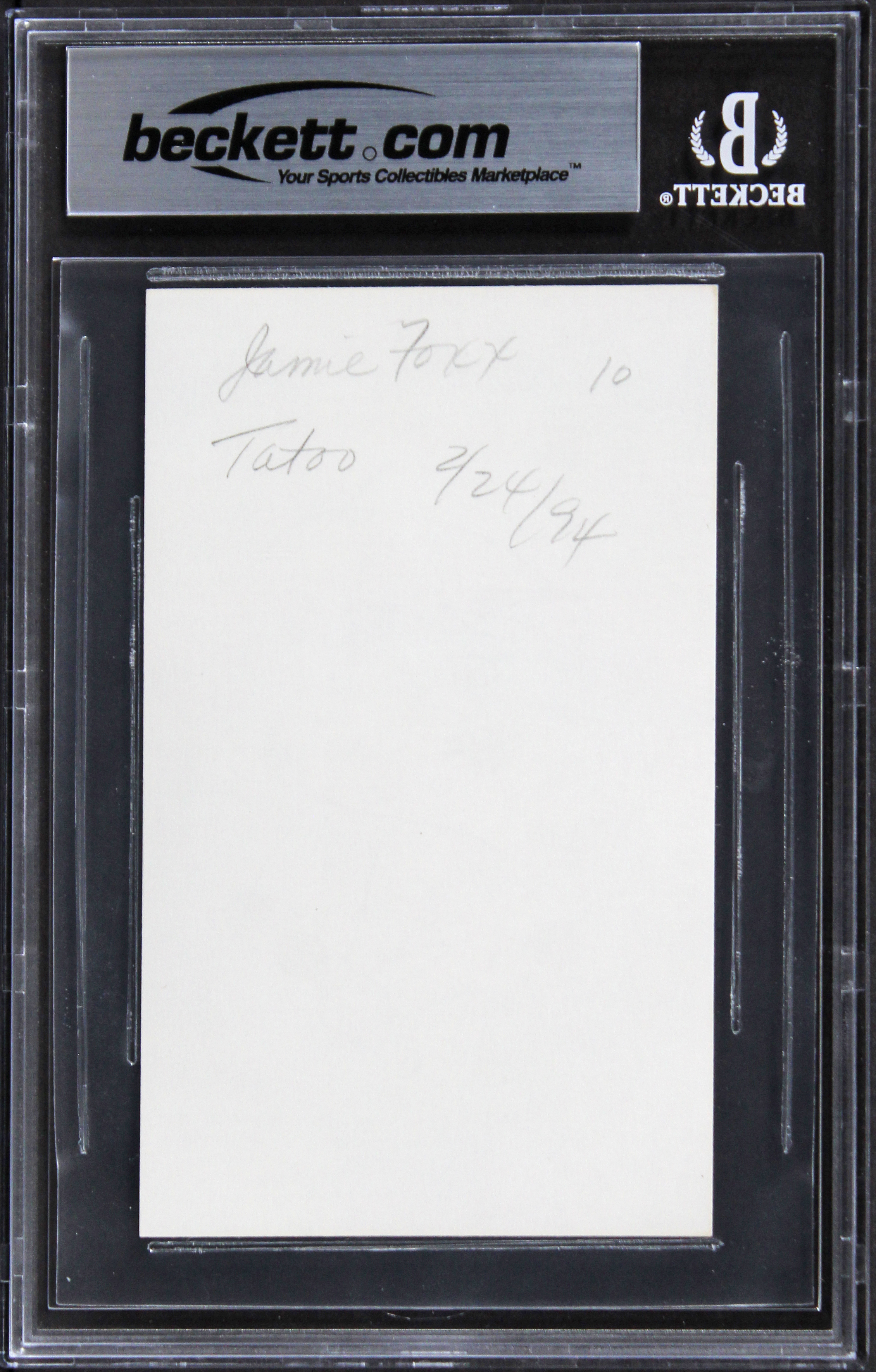 This Autographed 3x5 Index Card has been Personally Signed by Jamie Foxx of Ray. This item is 100% Authentic, it comes slabbed and authenticated by Beckett Authentication Services. We have multiples of this same item. While the photographs are representative of this item, the size, placement and strength of the signature may vary. Each item is hand signed, therefore, each autograph is unique.