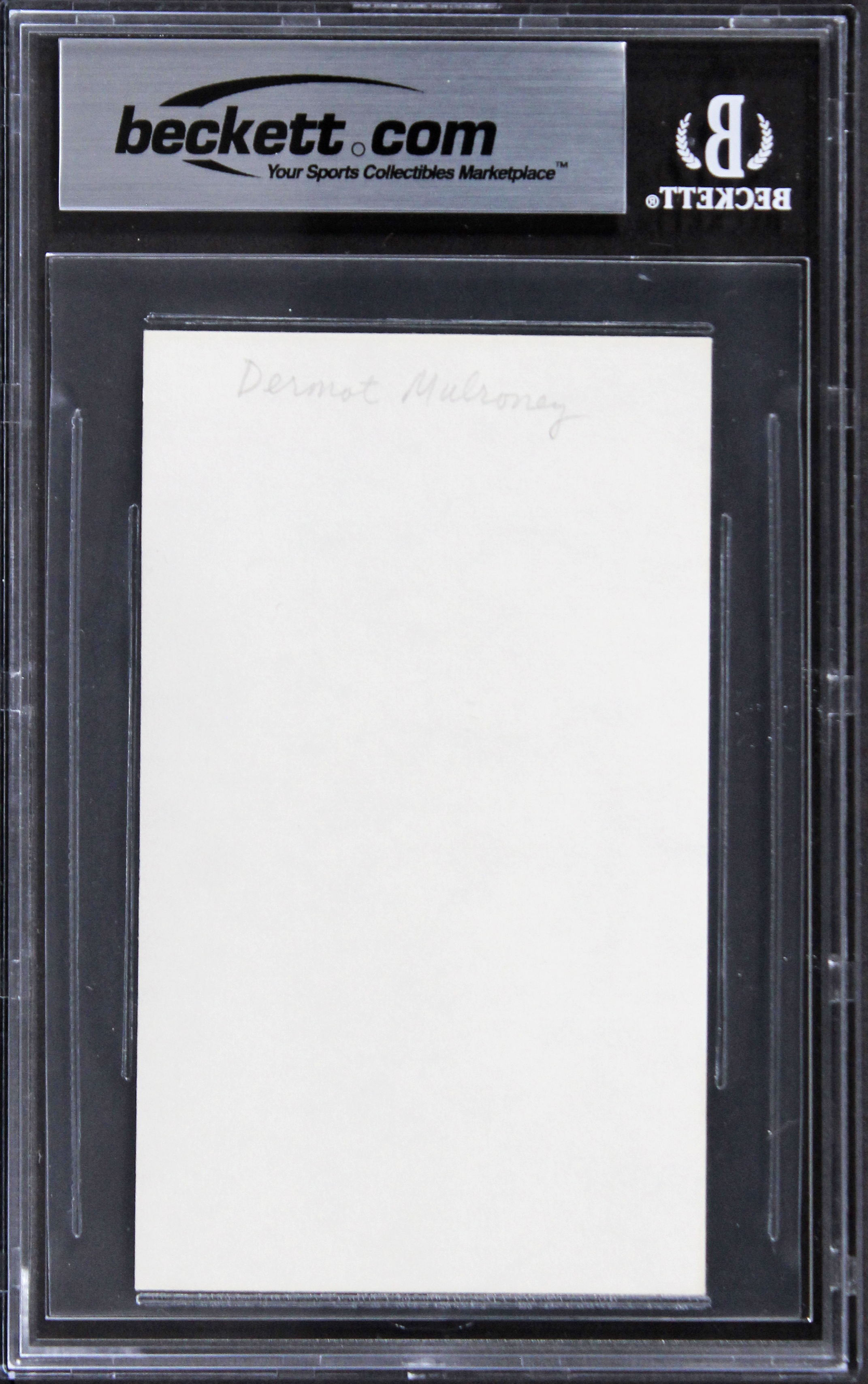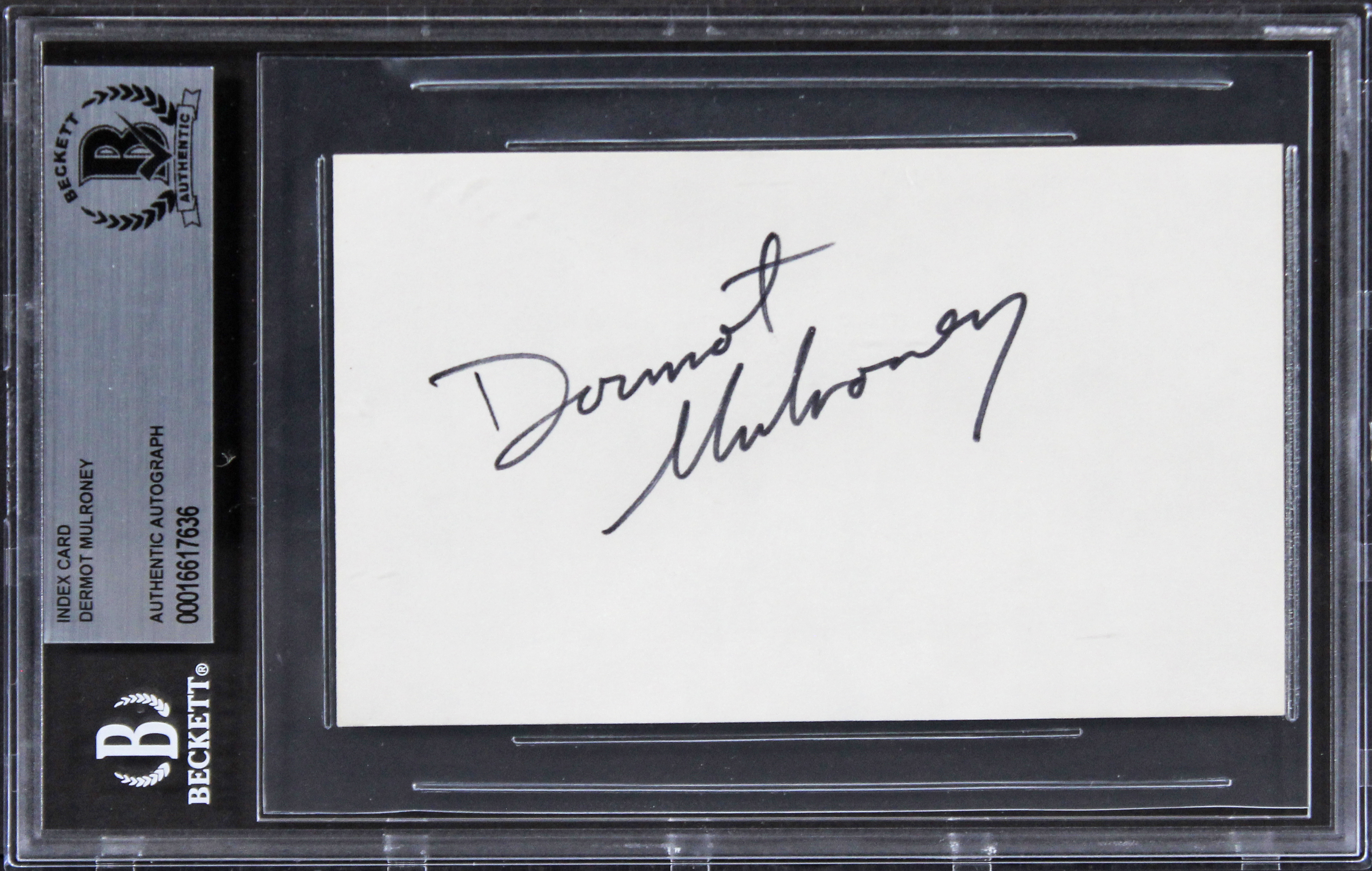 This Autographed 3x5 Index Card has been Personally Signed by Dermot Mulroney of My Best Friend's Wedding. This item is 100% Authentic, it comes slabbed and authenticated by Beckett Authentication Services. The authenticity can be verified on Beckett Authentication Services website.