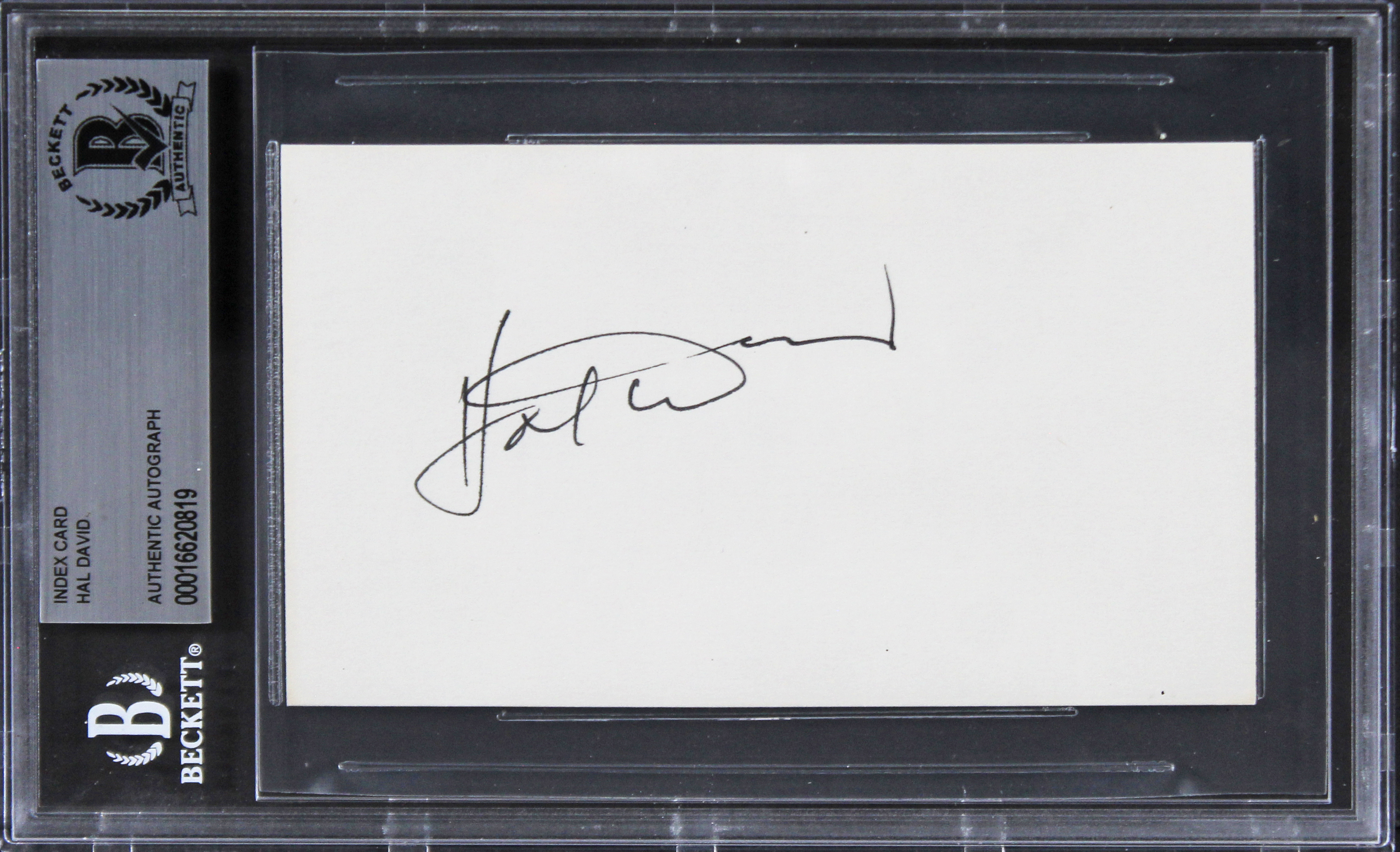 This Autographed 3x5 Index Card has been Personally Signed by Hal David of Musician. This item is 100% Authentic, it comes slabbed and authenticated by Beckett Authentication Services. The authenticity can be verified on Beckett Authentication Services website.