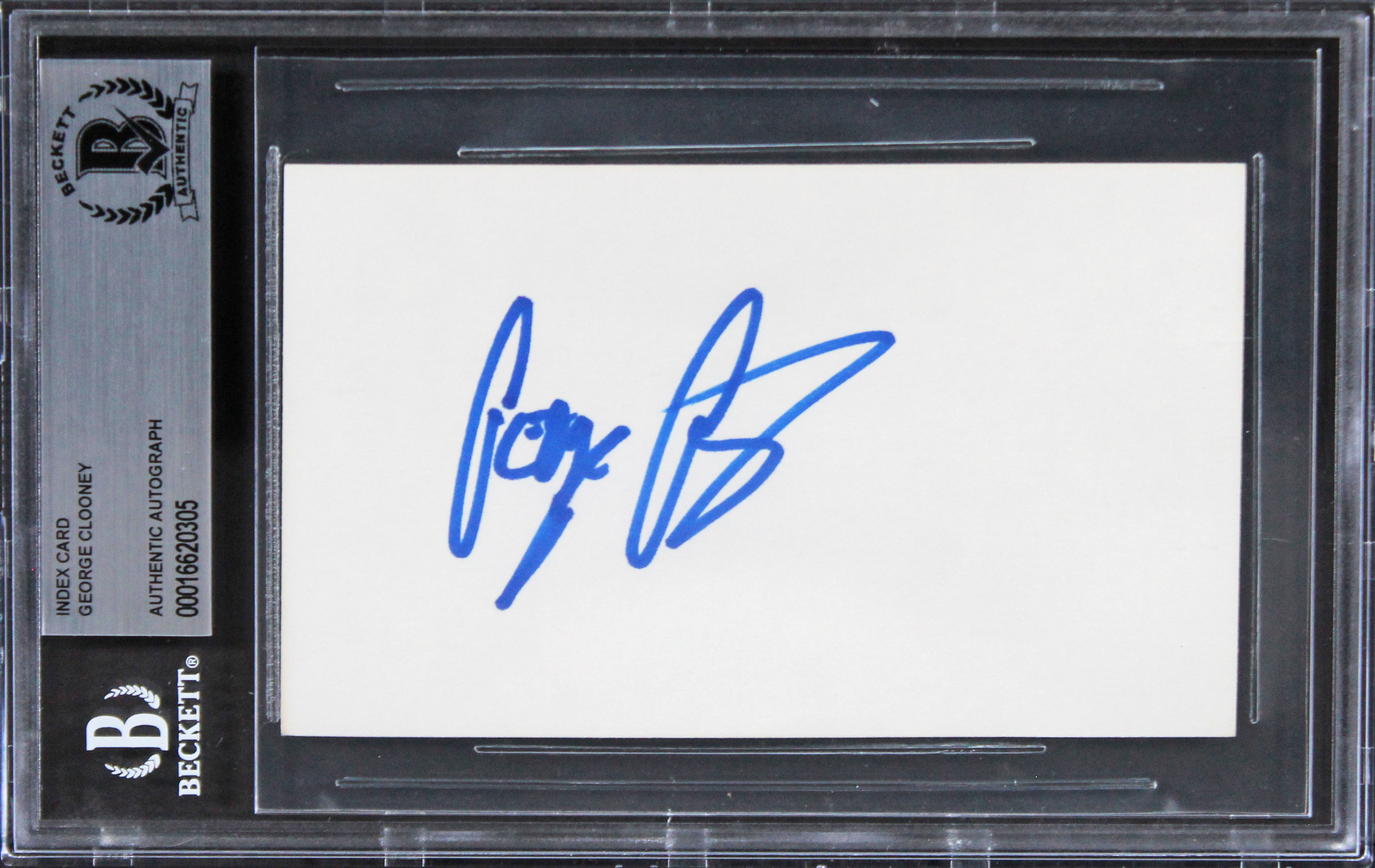 This Autographed 3x5 Index Card has been Personally Signed by George Clooney of From Dusk Till Dawn. This item is 100% Authentic, it comes slabbed and authenticated by Beckett Authentication Services. The authenticity can be verified on Beckett Authentication Services website.