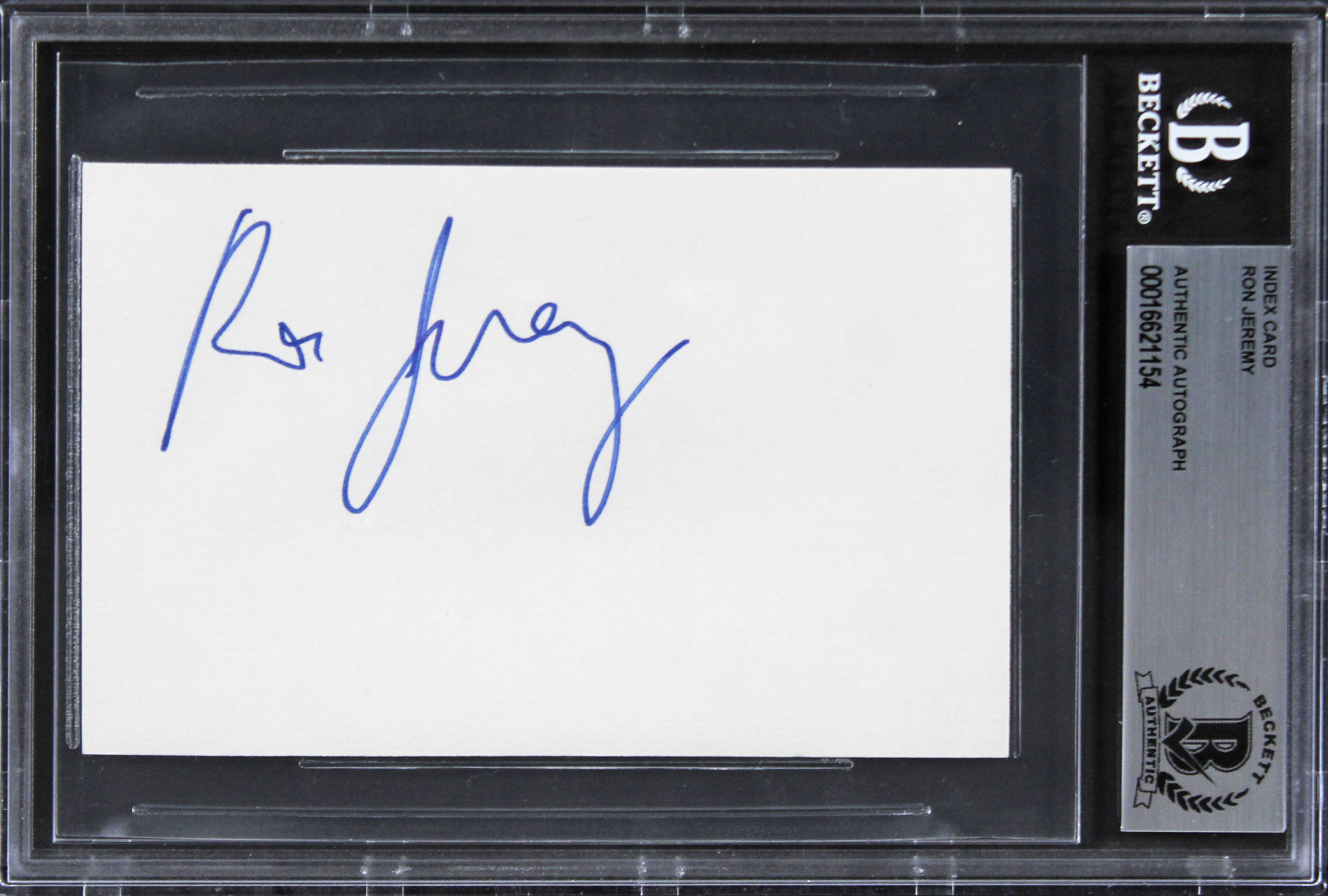 This Autographed 3x5 Index Card has been Personally Signed by Ron Jeremy of Adult Film Star. This item is 100% Authentic, it comes slabbed and authenticated by Beckett Authentication Services. The authenticity can be verified on Beckett Authentication Services website.