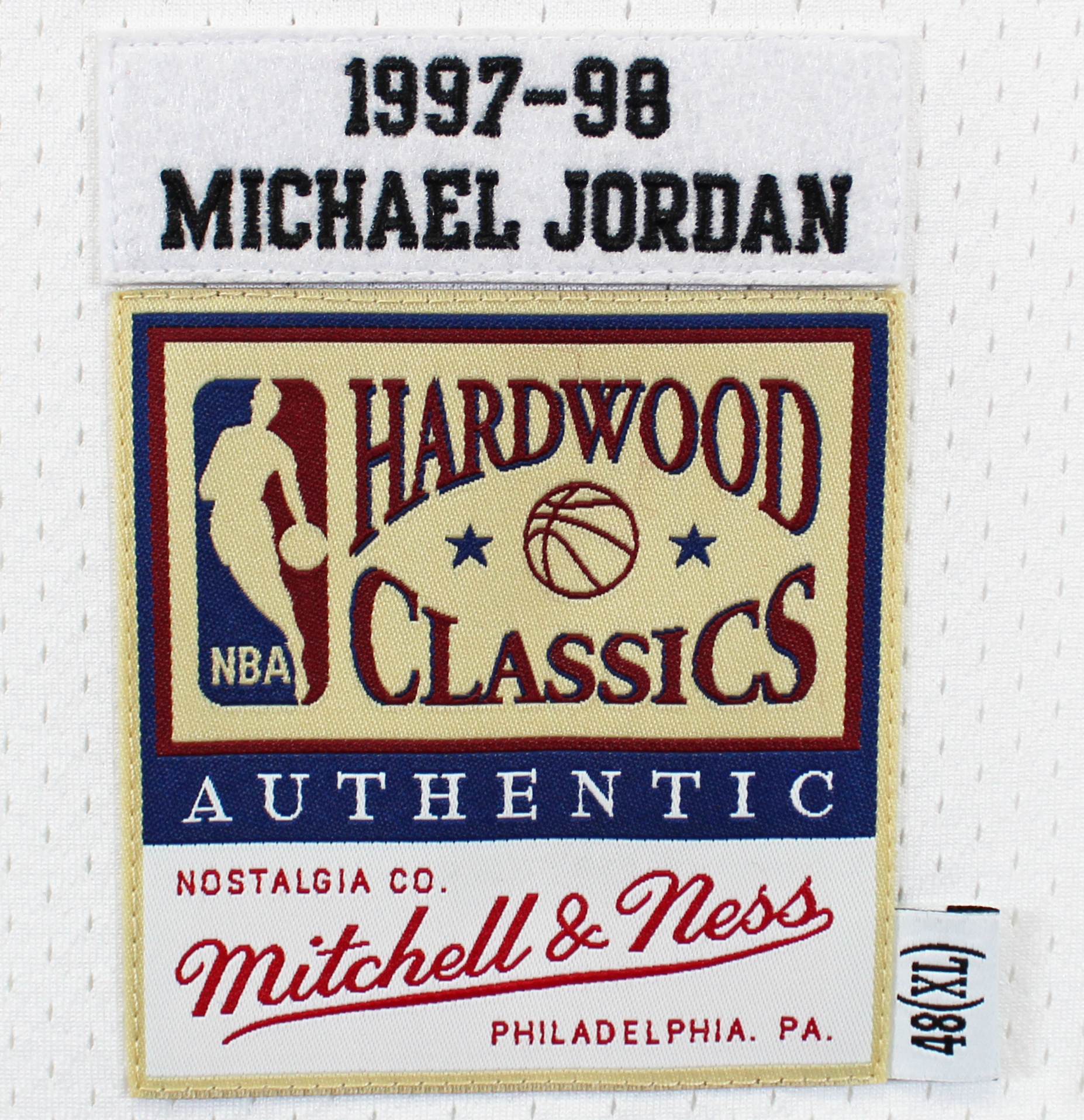 This Autographed White 1997-98 Mitchell & Ness Hardwood Classics Authentic Jersey has been Personally Signed by Michael Jordan of the Chicago Bulls. This item is 100% Authentic to include a Certificate of Authenticity (COA) / hologram by UDA. The authenticity can be verified on Upper Deck Authentic website. This is a X-Large sized Jersey.
