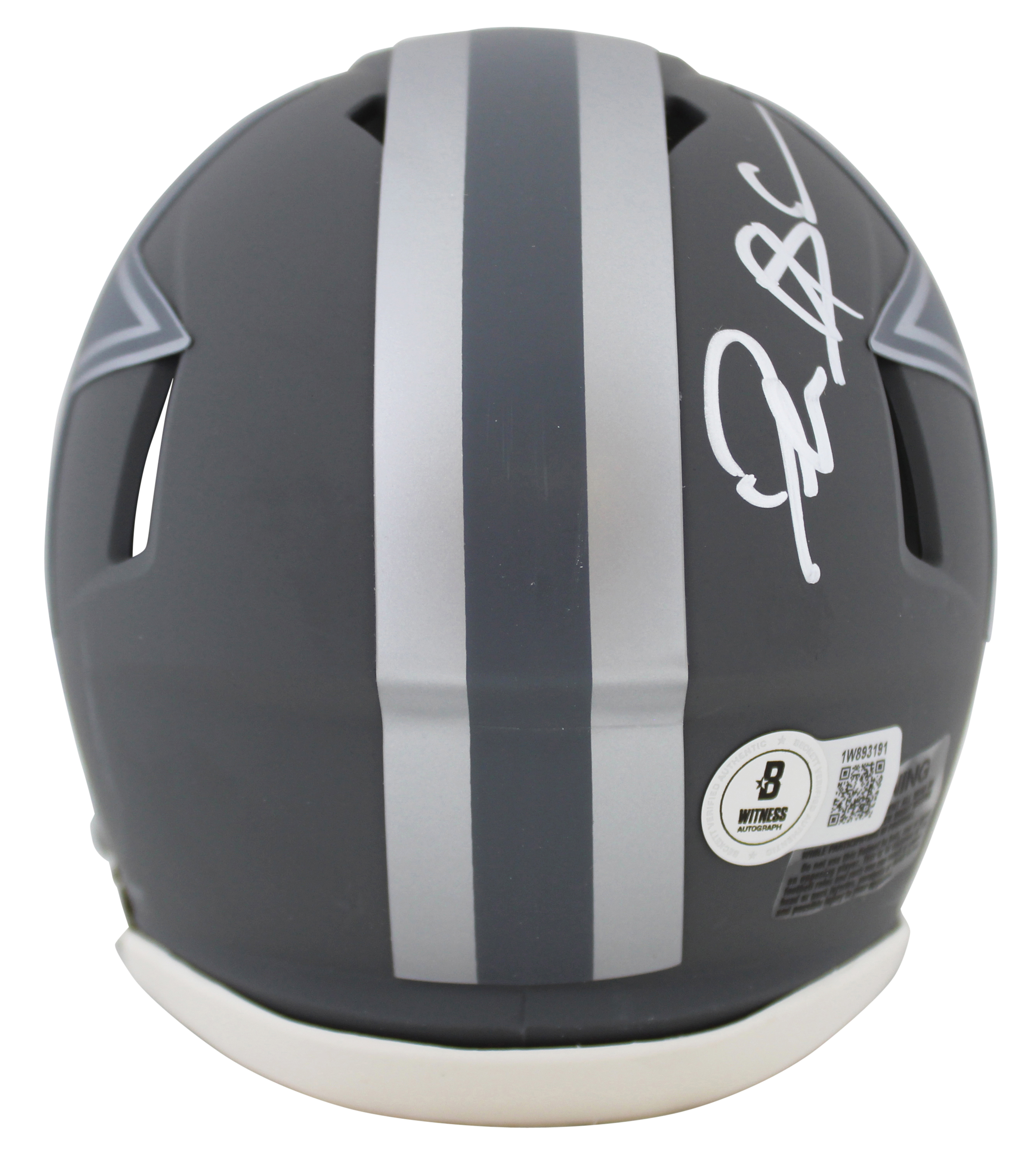 This Autographed Alternate Slate Speed Mini Helmet has been Personally Signed by Deion Sanders of the Dallas Cowboys. This item is 100% Authentic to include a hologram by Beckett Authentication Services. This item will come with an affixed Beckett Authentication Services (BAS) authentication sticker, which includes a scannable QR code to verify authenticity. Please note that Beckett no longer provides serial-numbered COA cards, and the attached BAS sticker will serve as the complete authentication for this item. This is a BAS Witnessed Protection Program item which means a Beckett Authentication Service representative was present when this item was being signed. We conducted an autograph signing with Deion Sanders where multiples of the same item were signed. While the photographs are representative of this item, the size, placement and strength of the signature may vary. Each item is hand signed, therefore, each autograph is unique. This item can be verified through BAS Witnessed.