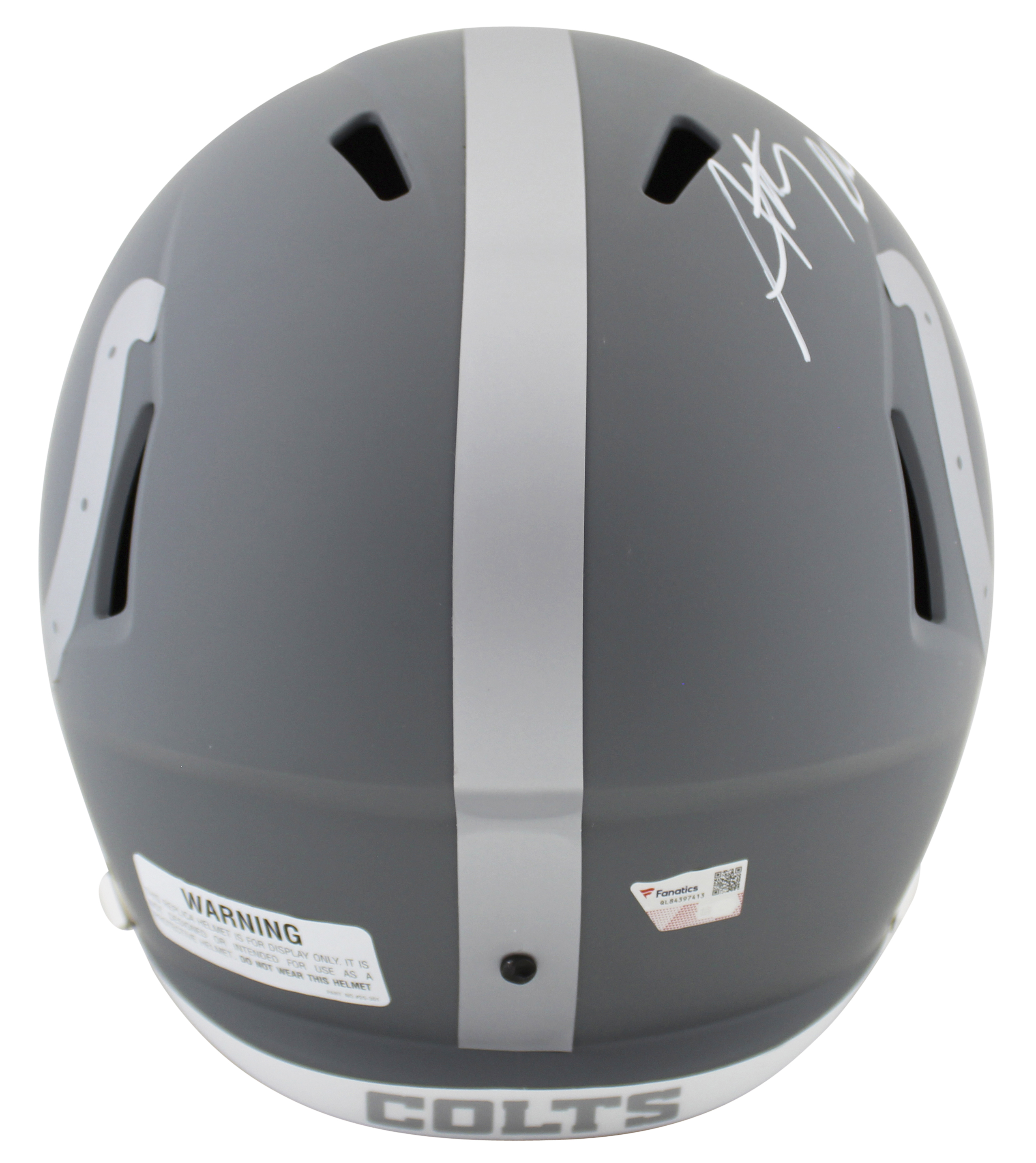 This Autographed Alternate Slate Riddell Full Size Speed Rep Helmet has been Personally Signed by Anthony Richardson of the Indianapolis Colts. This item is 100% Authentic to includes a numbered hologram by Fanatics. We conducted an autograph signing with Anthony Richardson where multiples of the same item were signed. While the photographs are representative of this item, the size, placement and strength of the signature may vary. Each item is hand signed, therefore, each autograph is unique. This item can be verified through Fanatics.