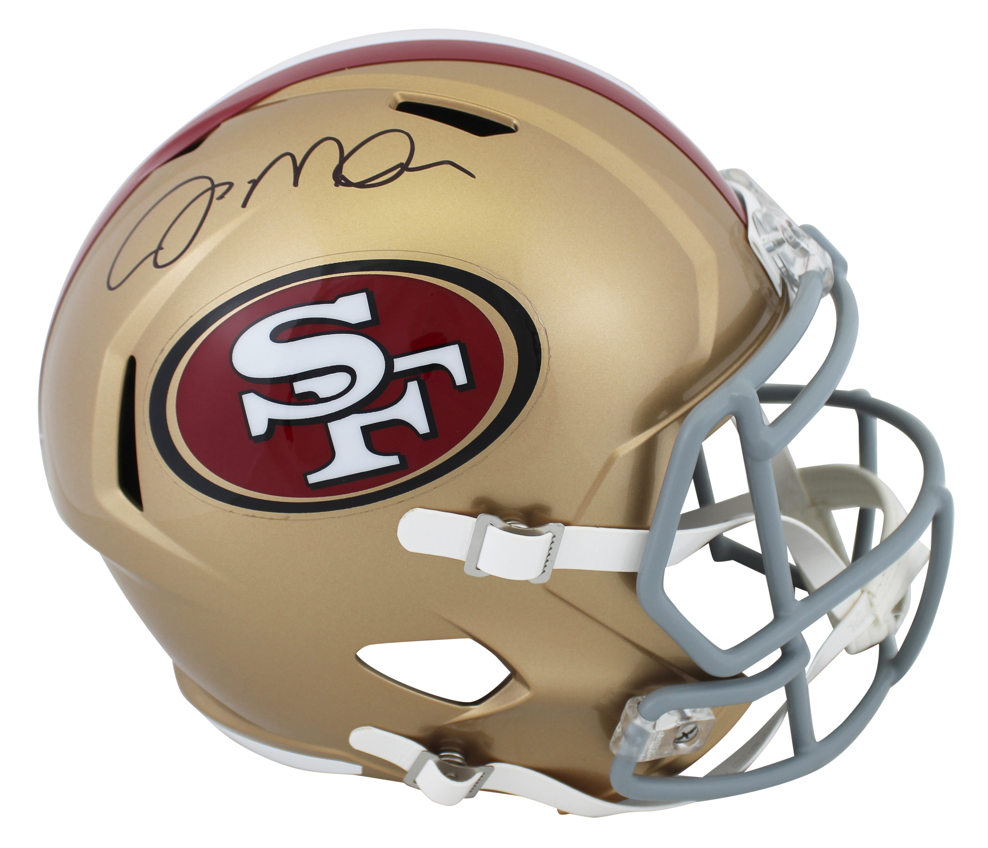This Autographed Riddell Full Size Speed Rep Helmet has been Personally Signed by Joe Montana of the San Francisco 49ers. This item is 100% Authentic to includes a numbered hologram by Fanatics. We conducted an autograph signing with Joe Montana where multiples of the same item were signed. While the photographs are representative of this item, the size, placement and strength of the signature may vary. Each item is hand signed, therefore, each autograph is unique. This item can be verified through Fanatics.