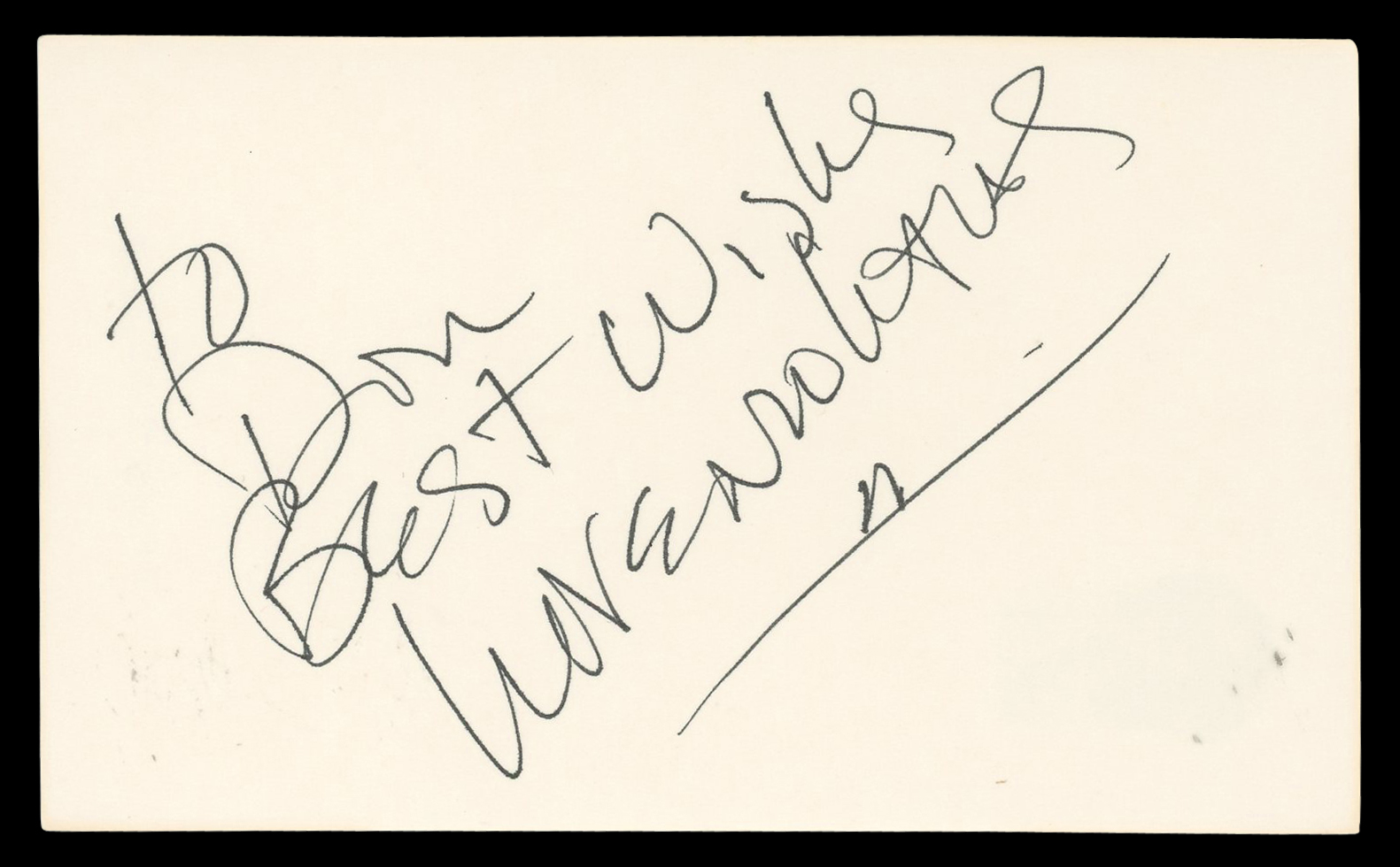 This Autographed 3x5 Index Card has been Personally Signed by Lorenzo Lamas of Falcon Crest. This item is 100% Authentic to include a hologram by Beckett Authentication Services. This item will come with an affixed Beckett Authentication Services (BAS) authentication sticker, which includes a scannable QR code to verify authenticity. Please note that Beckett no longer provides serial-numbered COA cards, and the attached BAS sticker will serve as the complete authentication for this item. The authenticity can be verified on Beckett Authentication Services website.