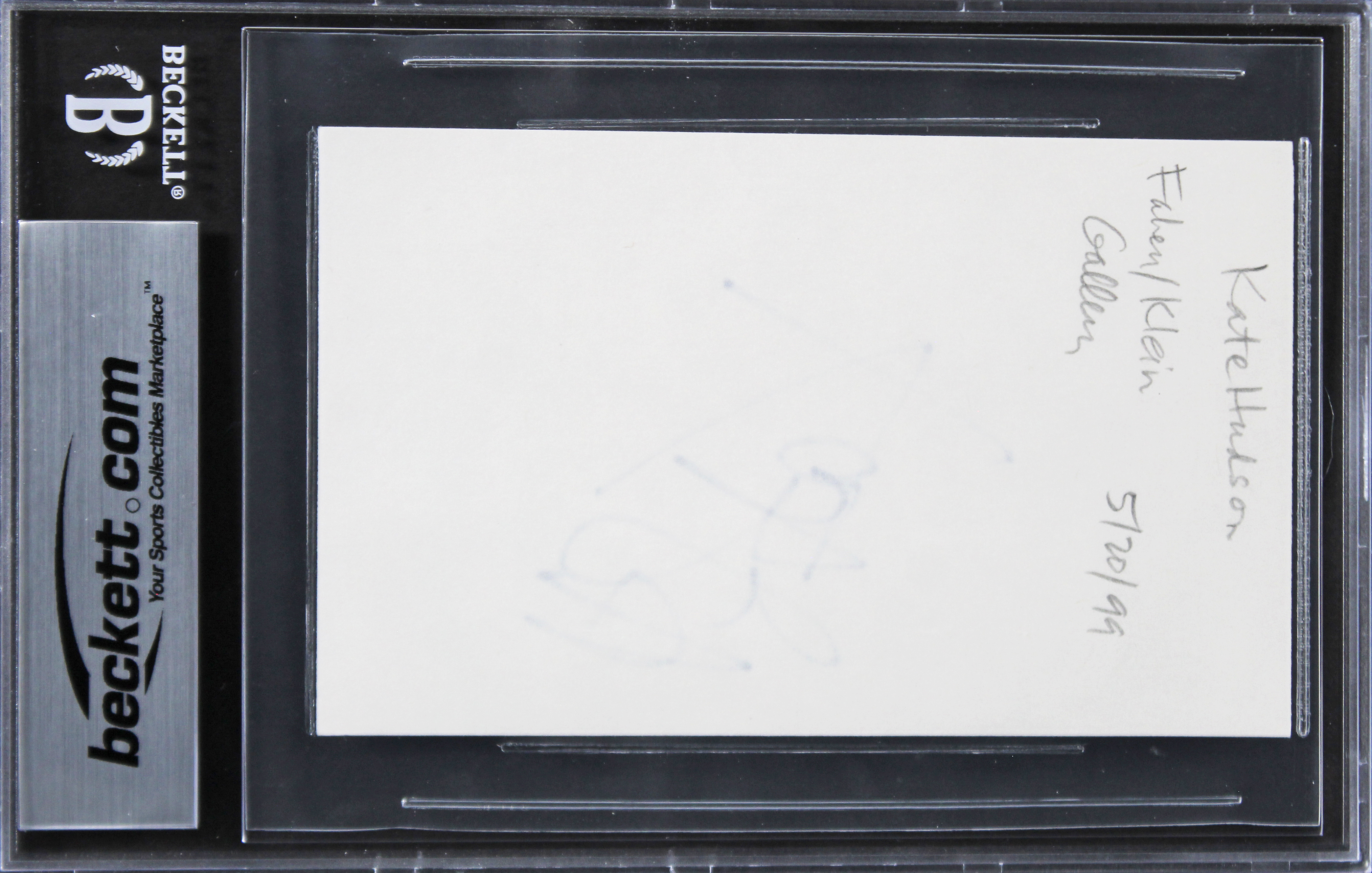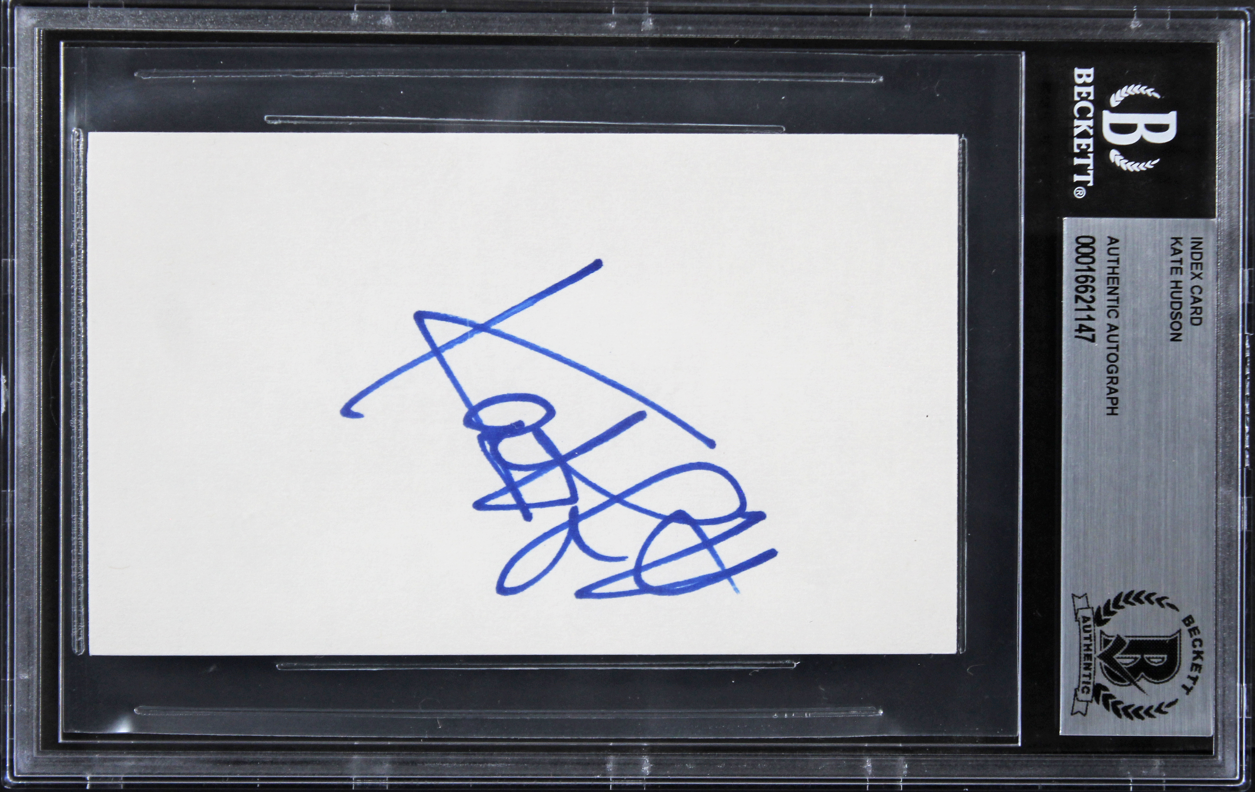 This Autographed 3x5 Index Card has been Personally Signed by Kate Hudson of Almost Famous. This item is 100% Authentic, it comes slabbed and authenticated by Beckett Authentication Services. We have multiples of this same item. While the photographs are representative of this item, the size, placement and strength of the signature may vary. Each item is hand signed, therefore, each autograph is unique.