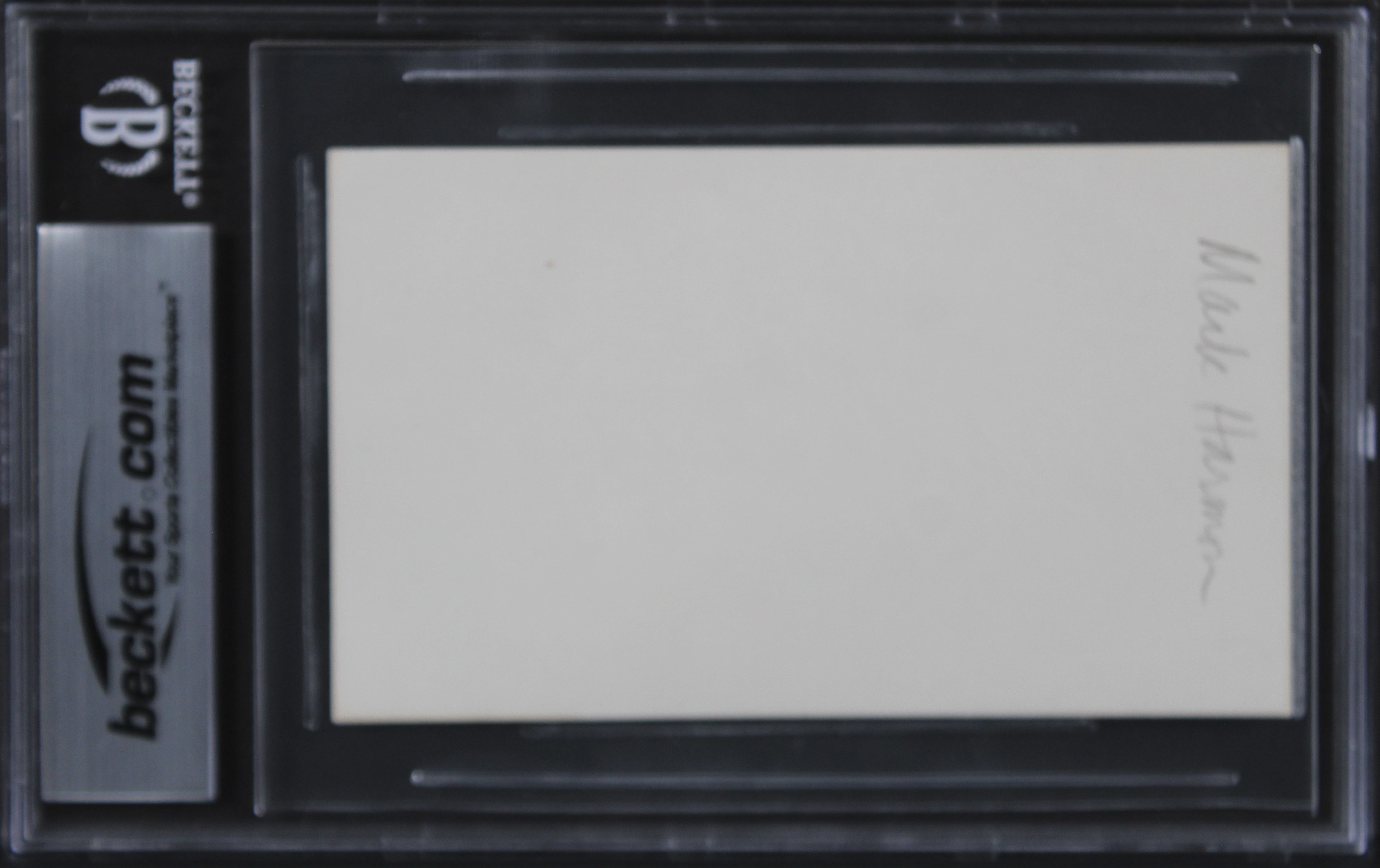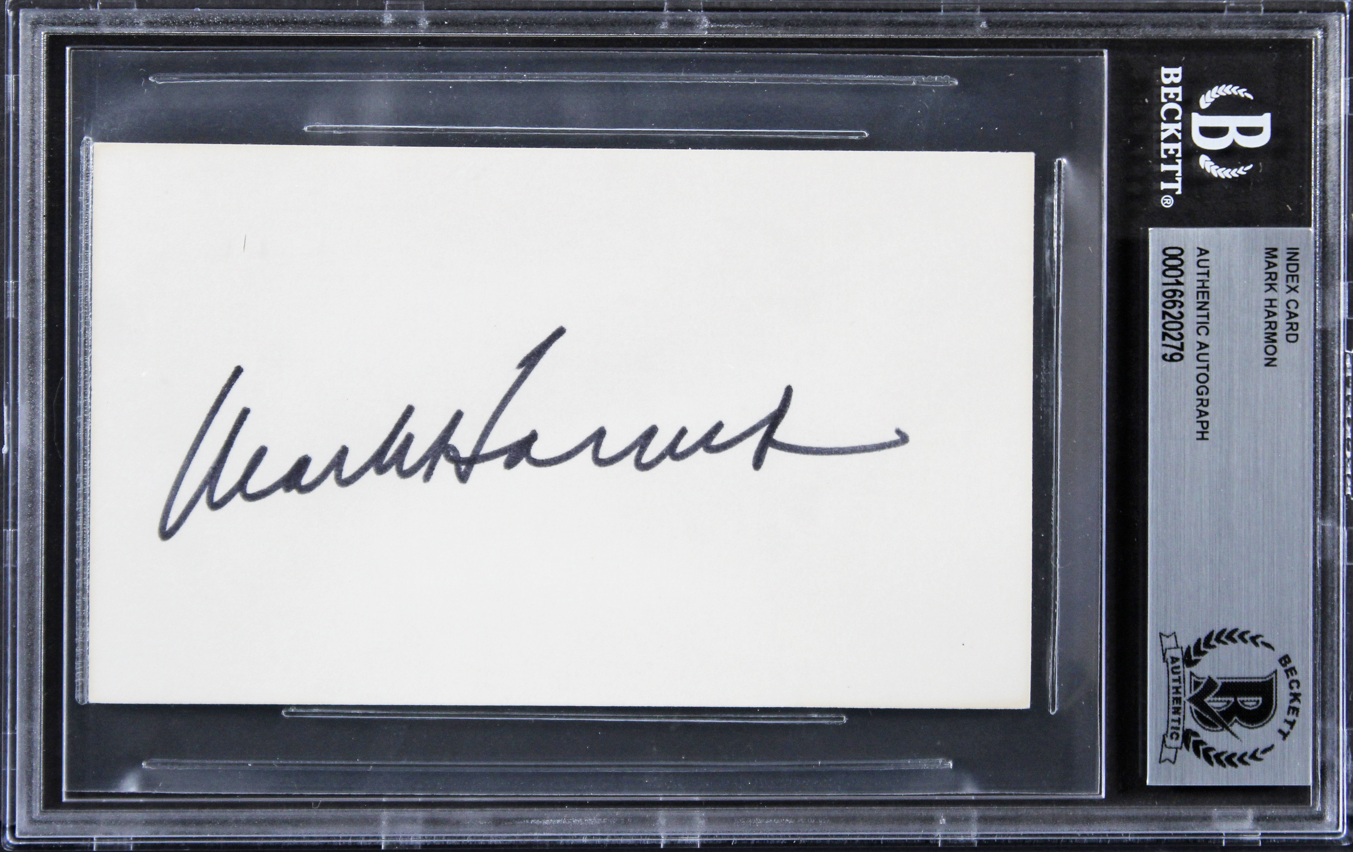 This Autographed w/ Black Signature 3x5 Index Card has been Personally Signed by Mark Harmon of NCIS. This item is 100% Authentic, it comes slabbed and authenticated by Beckett Authentication Services. We have multiples of this same item. While the photographs are representative of this item, the size, placement and strength of the signature may vary. Each item is hand signed, therefore, each autograph is unique.