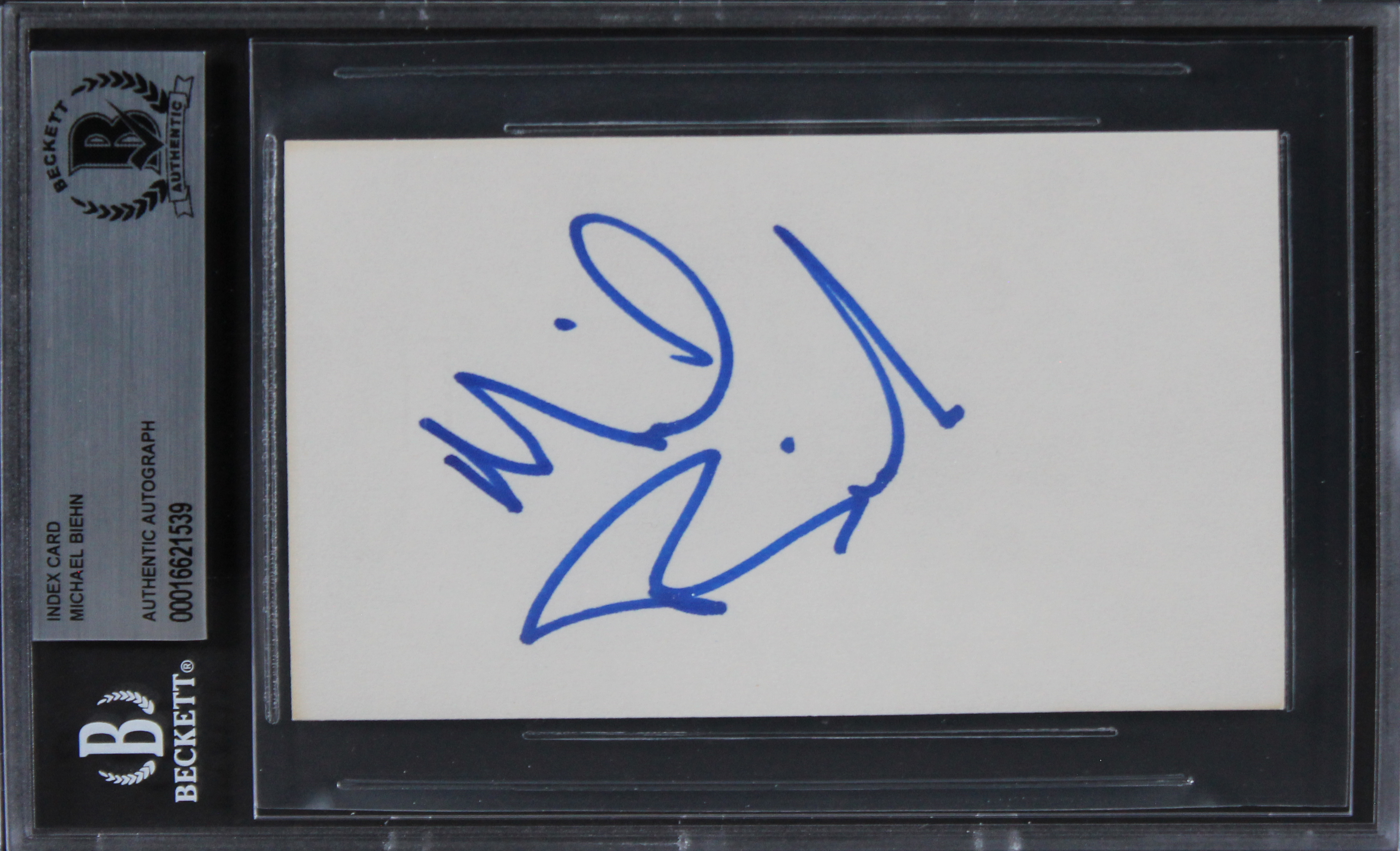 This Autographed 3x5 Index Card has been Personally Signed by Michael Biehn of Terminator. This item is 100% Authentic, it comes slabbed and authenticated by Beckett Authentication Services. We have multiples of this same item. While the photographs are representative of this item, the size, placement and strength of the signature may vary. Each item is hand signed, therefore, each autograph is unique.