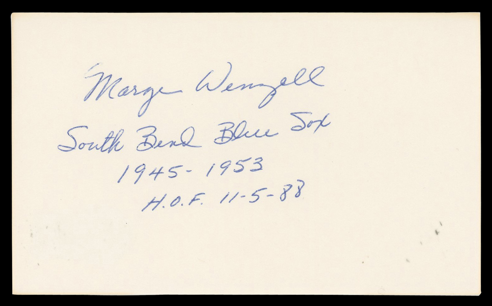 This Autographed 3x5 Index Card with the inscription of "South Bend Blue Sox 1945-1953 HOF 11-5-88" has been Personally Signed by Margaret Wenzell. This item is 100% Authentic to include a hologram by Beckett Authentication Services. This item will come with an affixed Beckett Authentication Services (BAS) authentication sticker, which includes a scannable QR code to verify authenticity. Please note that Beckett no longer provides serial-numbered COA cards, and the attached BAS sticker will serve as the complete authentication for this item. The authenticity can be verified on Beckett Authentication Services website.