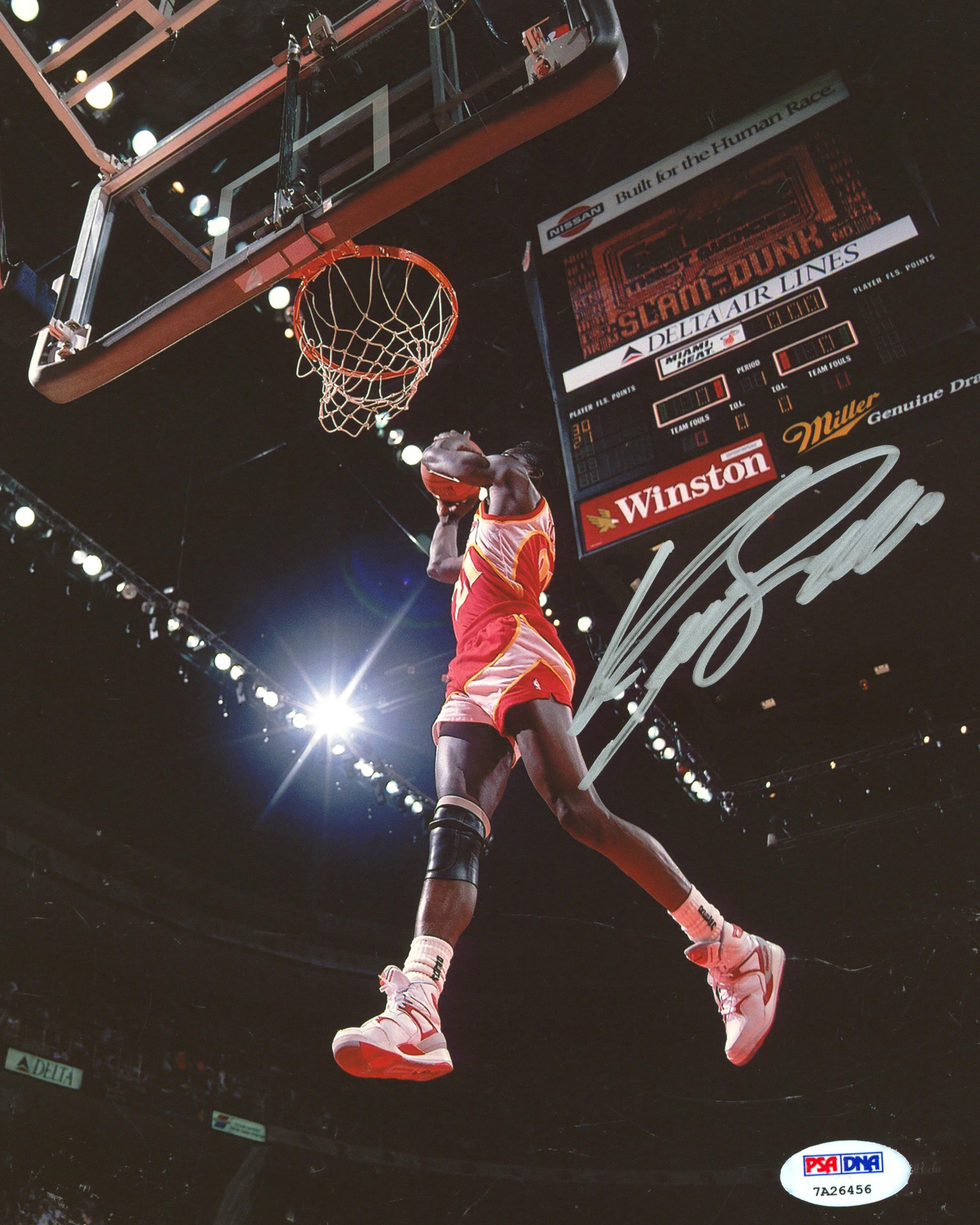 This Autographed 8x10 Photo has been Personally Signed by Dominique Wilkins of the Atlanta Hawks. This item is 100% Authentic and comes with a PSA/DNA Certification Card and a matching numbered Hologram. The authenticity can be verified on Professional Sports Authenticator website.